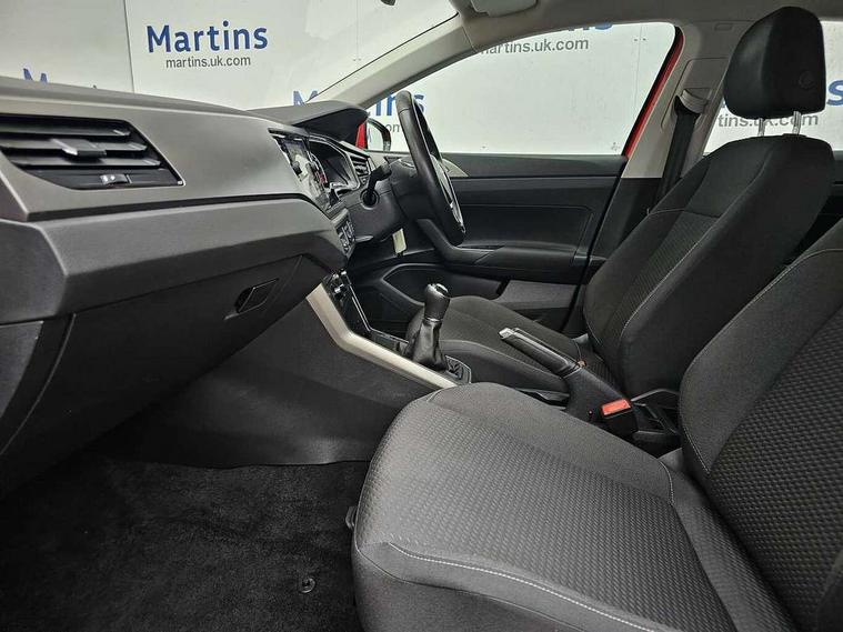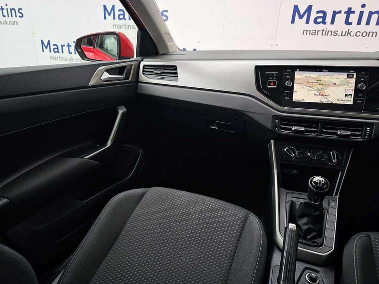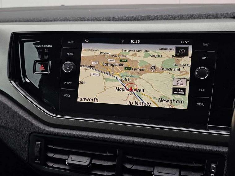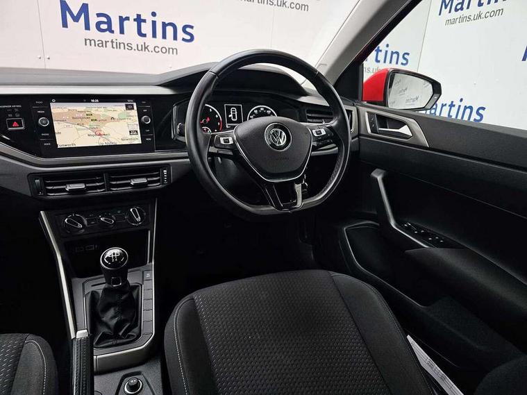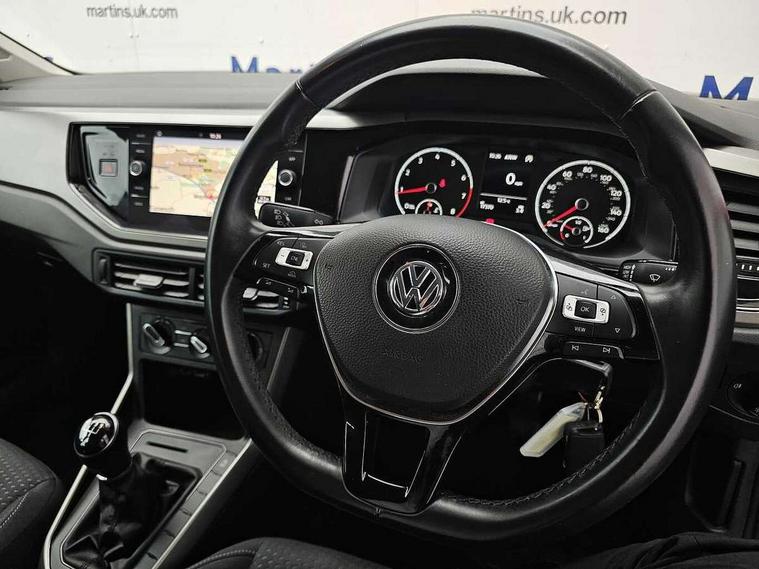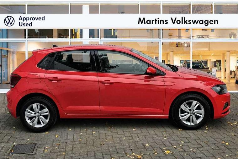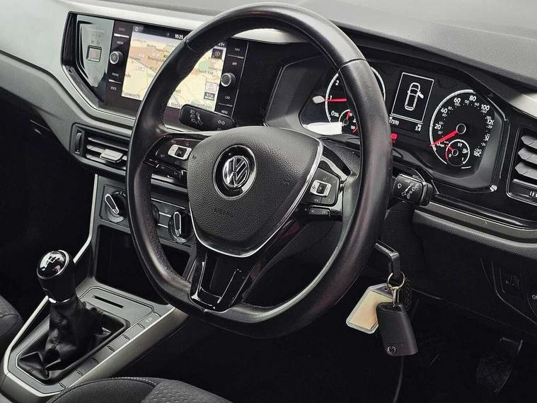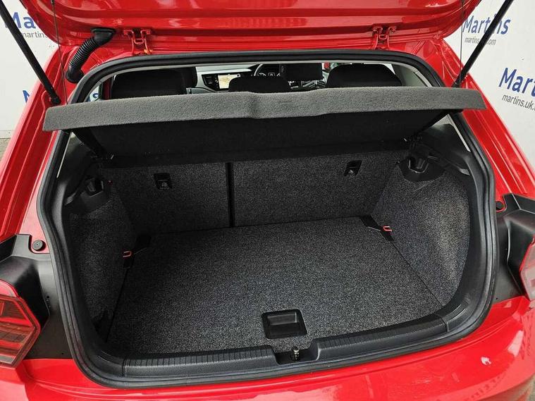 App-Connect, Bluetooth Telephone preparation, Discover navigation + European map data, Driver alert system, Multifunction colour display, PAS - speed related, Service interval indicator, Start/stop system, Trip computer, Warning buzzer and light for front seatbelts unfastened, Battery regeneration during braking, 6 speakers, Composition media system with radio, glovebox mounted CD, colour touch screen, SD card, aux-in, USB, multimedia interface, DAB Digital radio, Black grille with chrome surround, Black radiator grille with chrome insert, Body colour bumpers, Body colour door handles, Body colour rear spoiler, Body coloured side sills, Electric front windows, Front wash/wipe with interval delay, Fully galvanised body, Heat insulating tinted glass, Heated rear window with auto timer, High level 3rd brake light, LED daytime running lights, LED rear number plate lights, Rear electric windows, Rear windscreen washer and wiper with interval delay, 12V power socket in centre console, 2 bag hooks in luggage compartment, 2 cupholders, 3 rear head restraints, 3 spoke steering wheel, 4 grab handles, 60/40 split folding rear seat, Centre console storage, Chrome interior door handles, Chrome plated light switch, Driver/front passenger seat height adjustment + underseat drawers, Driver/passenger sunvisors with illuminated vanity mirrors, Dust/pollen filter, Front door pockets, Front seat backrest storage nets, Front/rear reading lights, Gear lever gaiter in high glass black trim surround, Glovebox, Handbrake grip button in chrome effect, Height/reach adjustable steering column, Instrument lighting, white adjustable panel illumination, Interior light with delay, Isofix Preparation 2 Rear child seats, Jack and tool kit, Luggage compartment cover, removable, Luggage compartment lighting, Multifunction leather steering wheel with leather gear knob/handbrake grip, Storage compartment in front doors, Storage compartment in rear doors, Storage compartment under front seats, Sunglasses holder, Variable boot floor, Variable Luggage compartment, Light and sight pack - Polo, 3 point height adj front seatbelts + pretensioners, 3x3 point rear seatbelts, ABS, Automatic post collision braking, Driver/front passenger airbag, Driver/Passenger whiplash optimised head restraints, ESP with EDL + ASR, Front and rear passengers curtain airbag system including front side airbags, Front disc brakes and rear drum brakes, Front passenger airbag deactivation, Hill hold control, Hydraulic Brake Assist (HBA), Two tone horn, Tyre pressure monitoring system, Alarm with remote central locking and interior protection, Electronic engine immobiliser, Air vents in High gloss black, Black high gloss trim, Full size spare wheel,