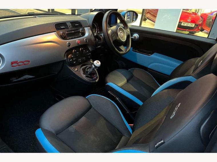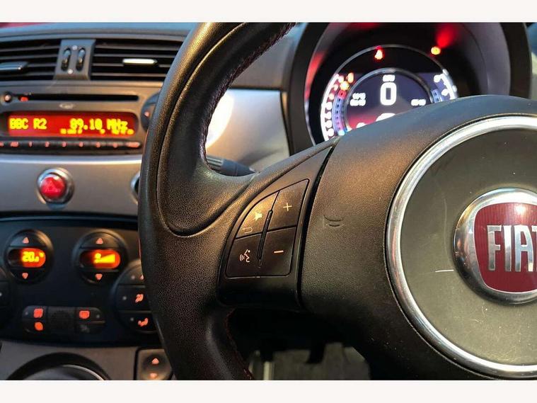 7" colour screen, Blue & Me with USB port, Bluetooth connectivity with voice recognition, Dualdrive PAS, External temperature gauge, Rear parking sensor, Service indicator, MP3 compatible radio/single CD player, Body colour bumpers, Dark tinted rear windows, Electric adjustable heated door mirrors, Electric front windows, Front fog lights, Heat insulated glass, Heated rear windows with wash wipe, Satin effect door handles, 1 passenger grab handle, Auto climate control, Auxilliary 12V power socket, Front headrests, Front passenger seat memory, Front passenger underseat box, Height adjustable drivers seat, Height adjustable steering wheel, Isofix child seat preparation, Seatback pockets, Split folding rear seat with headrests, Sport steering wheel with audio controls, Sports kit - 500 S, ABS/EBD, Driver and passenger airbags, Drivers knee airbag, ESP + ASR/MSR + HBA + Hill holder, Side airbags, Tyre pressure monitoring system, Window airbags, Locking fuel filler cap, Locking wheel nuts, Remote central locking, Space saver spare wheel,