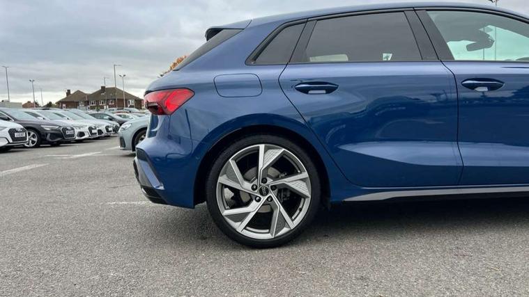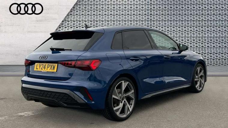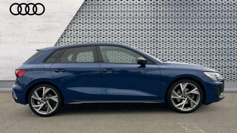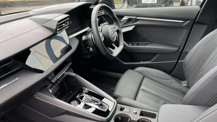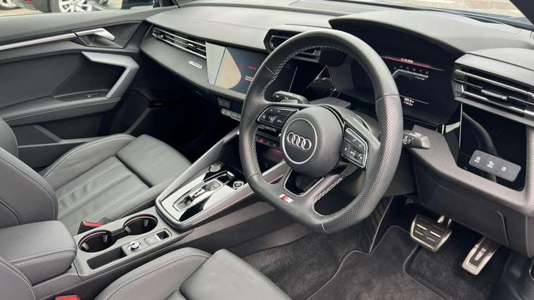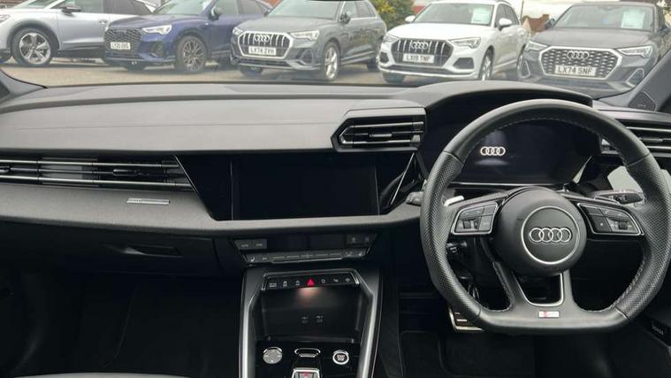 Adjustable speed limiter, Audi drive select, Audi smartphone interface with app store includes wireless Apple carplay, Android auto and Amazon alexa integration, Audi virtual cockpit plus - 12.3" full HD resolution dynamic digital instrument cluster, Automatic start/stop system with recuperation, Bluetooth interface, Camera based traffic sign recognition, Collision avoidance assistant, Cruise control, Distraction and Fatigue warning, e-Call (emergency call), Electromechanical power speed sensitive steering, Lane departure warning system, MMI Navigation Plus with high resolution 10.1" colour touch screen display, Park Assist with parking system Plus, Service indicator, Tailgate, Trip computer, Voice control system with natural language interaction, Sports suspension, Audi Phonebox light with wireless charging, Audi sound system - 10 loudspeakers including centre loudspeaker and subwoofer, DAB Digital radio, USB ports with charging function in the rear, Acoustic glass windscreen, Anthracite grey Audi rings (front and rear), Audi beam uses LEDs to project the Audi logo onto the ground as you exit your A3, Auto dimming frameless rear view mirror, Black accents front and rear bumpers, Black accents in the area of the Audi single frame grille, Black accents window trims strips, Electrically adjustable/heated/folding/auto dimming door mirrors with integrated LED indications + kerb view function for passenger side, Exterior model badging, Front electric windows, Heat insulating glass windscreen, Illuminated door sills with aluminium inserts at the front with S logo, LED 3rd brake light, LED daytime running lights, LED headlights with LED rear lights and dynamic rear indicators, Light and rain sensors, Privacy glass - dark tinted rear window, rear door and side windows, Rear electric windows, Rear side wing doors, Rear wiper, S roof spoiler, 12V socket and storage compartment in front centre console, 3 seat bench in 2nd row, 3 spoke flat bottomed leather multifunction sport steering wheel with gear shift paddles, 3-zone deluxe automatic air conditioning, 4 way electrically adjustable lumbar support for driver and front passenger, 40/20/40 split folding rear seat bench, Black cloth headlining, Front and rear centre armrest in artificial leather, Front and rear headrests, Front/rear floor mats, Heated front seats, Height and reach adjustable steering wheel, Manual boot compartment lid, Manually adjustable front seats, S badging on the steering wheel, Seat side bolsters, Single front passenger seat, Stainless steel pedals and front footrest in black, Twin leather upholstery with front sports seats S embossed logo, Aluminium interior elements pack - A3 Sportback, Multi-coloured LED interior lighting package - A3 Black Edition, 3x3 point rear seat belts, Driver and front passenger airbag with passenger airbag deactivation, Electronic Stabilisation Control (ESC) including ABS, ASR and EDL, First aid kit with warning triangle and 2 safety vests, Front side airbags with head airbags and interaction airbag, Hill hold assist, Pre-sense front with pedestrian and cyclist detection, Seatbelt monitoring, Tyre pressure loss indicator, Anti theft alarm, Anti-theft wheel bolts, Electronically operated child locks, Immobiliser, Remote control central locking, Inlays in black Impressum woven textile,