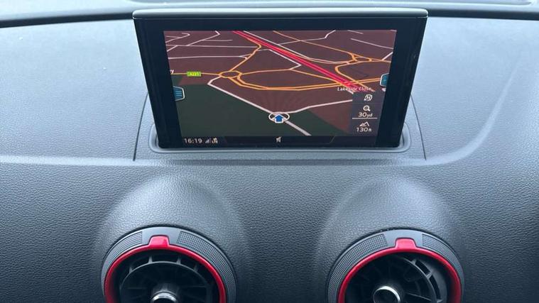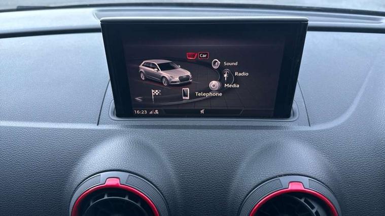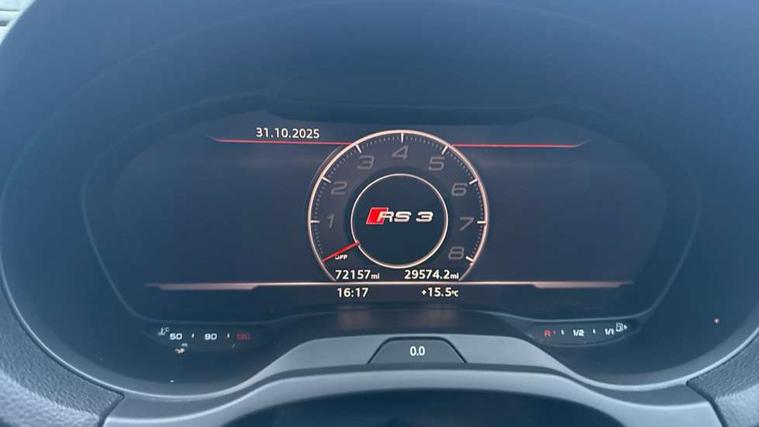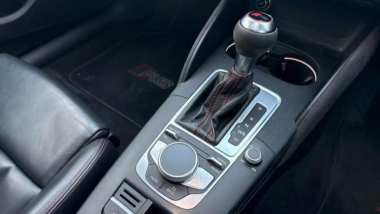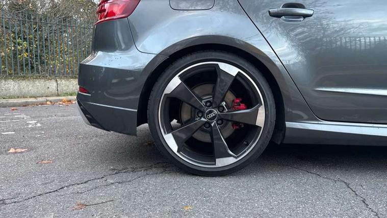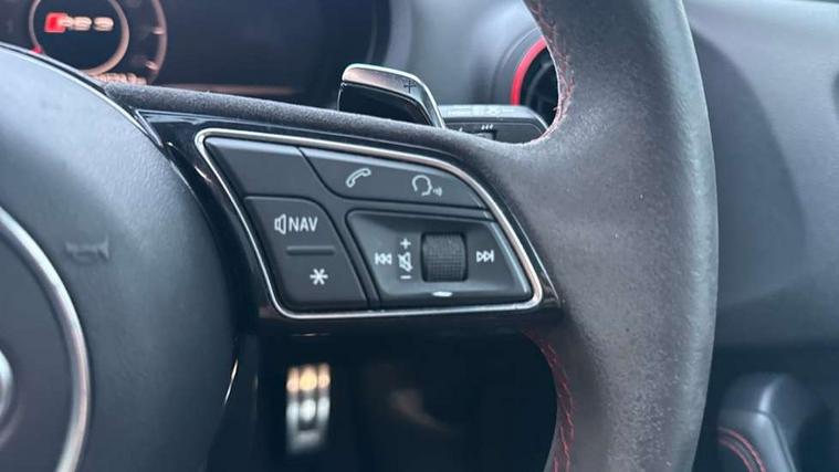 Audi connect, Audi drive select, Audi smartphone interface, Audi virtual cockpit - 12.3" high-resolution LCD display with fully customisable instrument cluster, MMI navigation plus with MMI touch, Mobile telephone preparation - bluetooth interface, Progressive power assisted steering, Service interval indicator, Speed limit display, Voice control system, RS sports suspension, 2 USB ports, Audi music interface, Auxiliary input socket, DAB Digital radio, Audi Beam uses LEDs to project the Audi Sport logo, Auto dimming rear view mirror with light and rain sensors, Black high gloss front air inlet, Body coloured side sills, Electric front windows, Electric operated/heated door mirrors, Electric rear windows, Headlight washers, Heated windscreen washer jets, High gloss black rear diffuser, LED daytime running lights, Rear wiper, RS design body styling, 3 adjustable rear headrests, 3 spoke flat bottomed sports multifunctional leather steering wheel with aluminium look gearshift paddles, 4 lashing points to secure luggage, 60/40 split folding rear seat, Adjustable front armrest, Dual zone electronic climate control, Front and rear interior lights with delay, Heated front seats, Height/depth adjustable steering column, ISOFIX child seat preparation+airbag deactivation, Jack and tool kit, Stainless steel pedals, Storage compartment in centre console, Storage compartment under front seats, Storage compartments in doors, Black Styling pack - RS3, LED interior light pack - A3/RS3, Non smoking pack - RS3, Storage and luggage pack - A3/RS3, 3 point seatbelts on all seats, ABS/EBD, Active bonnet, Active front headrests, ASR, Curtain airbags, Driver and passenger side airbags, Driver/Front Passenger airbags, Drivers knee airbag, EDL, Electromechanical parking brake, ESC - Electronic Stability Control + traction control, Manual rear child locks, Multi-Collision braking, Seatbelt warning, Warning triangle and first aid kit, Anti theft alarm, Anti-theft wheel bolts, Remote control central locking, Thatcham category 1 alarm + immobiliser, Aluminium trim elements, Tyre repair kit,