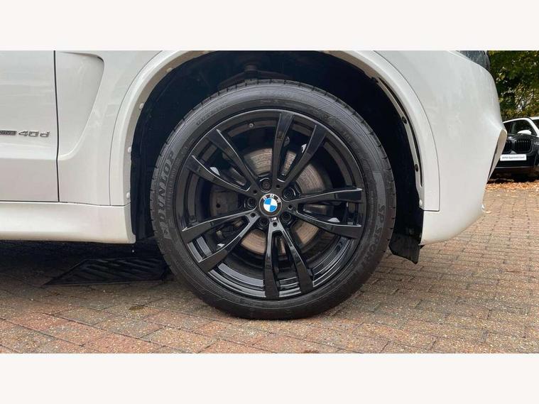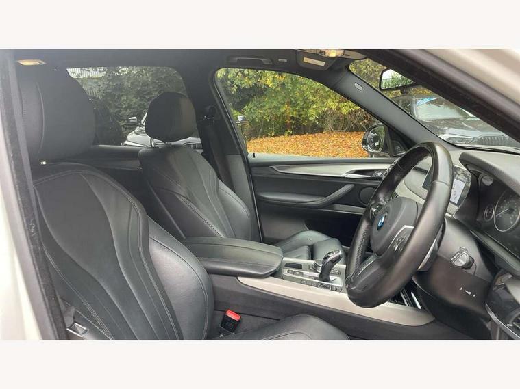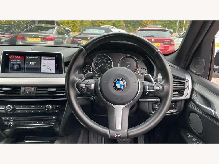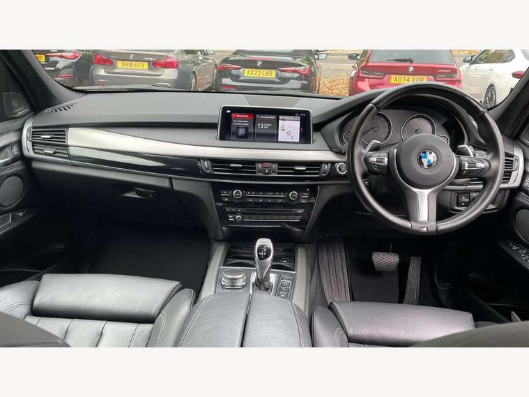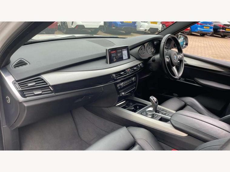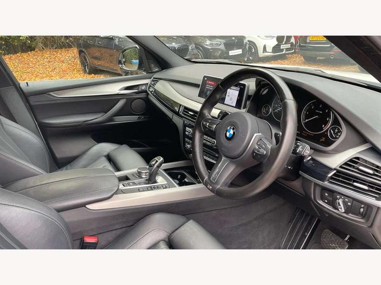 20GB Hard drive, 6.5" colour display screen, BMW online + Apps interface, BMW remote services, BMW Teleservices, Brake force display, Check control system, iDrive controller and display with 10.2" colour display monitor, Lights on warning, On board computer, Outside temperature gauge, Park distance control, Professional multimedia navigation system, Real time traffic information, Remote tailgate release, Service interval indicator, Servotronic PAS, Stop/start button, Voice control system, Adaptive M suspension, Diesel particulate filter, Sport automatic transmission, Auxiliary point for auxiliary devices, BMW professional twin tuner radio with single CD player and MP3 CD playback facility, DAB Digital radio, Auto dimming rear view mirror, Auto upper tailgate release, Body colour bumpers, Body colour door handles, Body colour door mirrors, Chrome exhaust tailpipes, Clear indicator lenses, Door mirror integrated indicators, Double kidney grille with chrome surround and black slats, Downlights in exterior door handles, Electric folding/heated door mirrors + electrochromic on drivers side, Electric front/rear windows with anti-trap, Electric headlight adjustment, Follow me home headlights, Green tinted glass, Headlight washer jets, Heat insulated glass, Heated washer nozzles, Individual door sill finishers, Intermittent rear wash/wipe, M aerodynamic body kit, Rain sensor with auto light activation system, Two piece tailgate, 12V accessory power point in centre console, 12V socket in luggage compartment, 2 x 12V socket in rear centre console, 40:20:40 split folding rear seats, Ambient interior lighting, Anthracite Velour floor mats, Boot lashing points, Electric front seats + driver memory, Front and rear cupholders, Front armrest with storage bin, Front/rear courtesy lights with soft on/off dimming, Front/rear reading lights, Gearshift paddles on steering wheel, Heated front seats, Height adj rear head restraints, Illuminated glovebox with lock, Isofix child seat preparation, LED footwell lights, Luggage compartment cover, M leather steering wheel, Reach + rake adjustable steering column, Securing rings in luggage compartment, Storage bins on all doors, Sunvisors with illuminated vanity mirrors, Tilt/height adjustable front head restraints, Toolkit located in luggage compartment, Extended storage pack - X5, 3 rear 3 point seatbelts, ABS, ADB - Automatic Differential Brake, Automatic Stability Control (ASC), BMW emergency call, Child locks on rear doors, Cornering brake control (CBC), Crash Sensor - activates hazard/interior lighting + unlocks doors, Driver/Front Passenger airbags, DSC - Dynamic Stability Control, Dynamic brake control, Dynamic Traction Control - DTC, Electronic brake force distribution, Electronic parking brake, Front and rear head airbags, Front passenger airbag deactivation, Front passenger seat occupancy sensor, Front side airbags, Height adjustable front seatbelts, Hill start assist, Pyrotechnically pre-tensioned front seatbelts, Tyre pressure monitor, Warning triangle and first aid kit, Locking wheel nuts, Remote central locking, Thatcham cat 1 remote alarm/immobiliser, Run flat tyres,