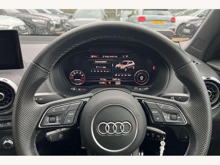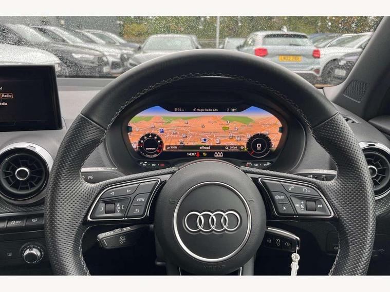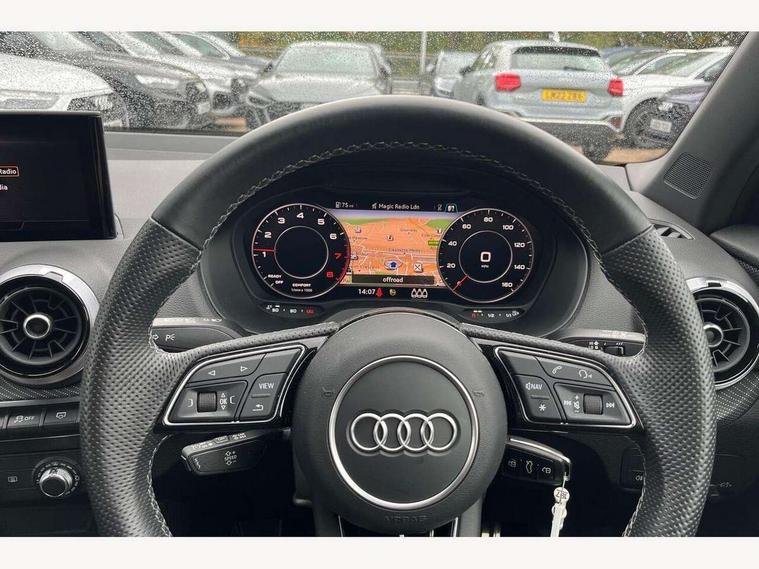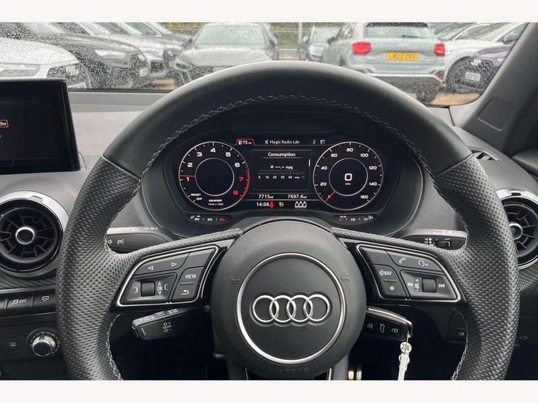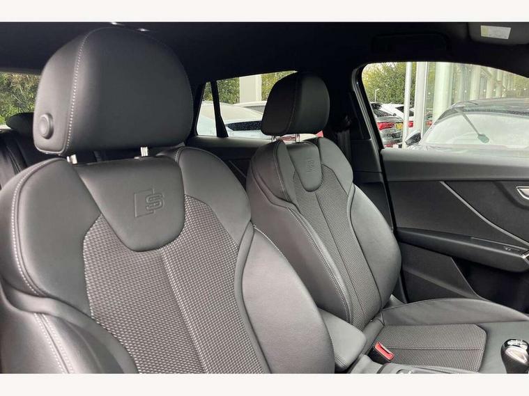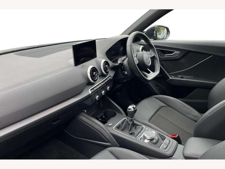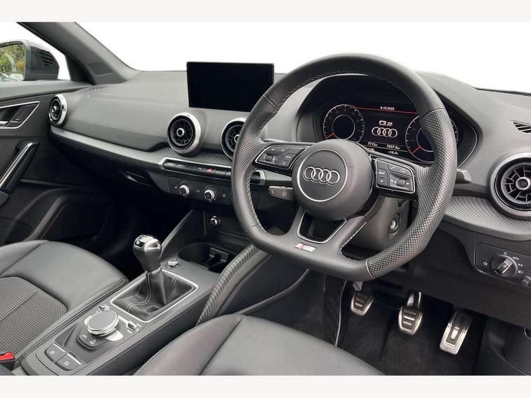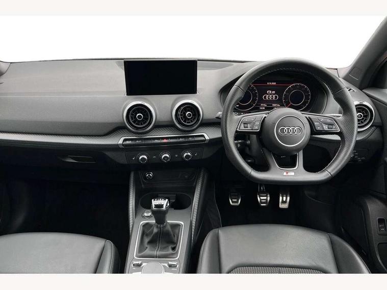 3D map display, Audi connect navigation and infotainment includes innovative services, Audi connect remote and control connects your vehicle to your smartphone, Audi drive select: power steering assistance + engine (modes: comfort, auto, dynamic, efficiency, individual), Audi smartphone interface - Apple carplay/Android Auto, USB connect, 2xSDXC card readers, voice control for navi, telephone, music and 3rd party apps, Audi virtual cockpit, Automatic start/stop system with recuperation, Bluetooth interface includes bluetooth audio streaming, Cruise control, E-call, Jukebox hard drive memory for music (10GB), MMI navigation plus with 8.3" colour MMI screen and MMI touch, Natural voice recognition, Power operated tailgate, Progressive steering, Rear parking sensors, Sport suspension, 6 passive loudspeakers, DAB Digital radio, Audi beam, Auto dimming rear view mirror, Black window trims, Bumper in full body colour paint finish, Electrically adjustable, folding, auto dimming and heated door mirrors with integrated LED side indicators, Front windscreen with grey tinted sunband, LED daytime running lights, LED headlights with dipped beam, high beam, position lights, indicators, LED rear lights, LED third brake light, Privacy glass - dark tinted rear and rear side windows from B-pillar backwards, Rear side wing doors, Rear wiper, Variable front intermittent wipers, Wheel arch trims in manhattan grey, 12v socket in front, 3 seat bench in 2nd row, 3 spoke flat bottomed multi-function leather sport steering wheel, 4-way electric lumbar support for front seats including manual seat height adjustment for both front seats, 60/40 split folding rear seat bench, Black carpets, Black cloth headlining, Front and rear head restraints, Front centre armrest, Front sport seats, Front/rear floor mats, Height/reach adjust steering wheel, Illuminated door sill trims with S logo, ISOFIX child seat mounting in front passenger and rear outer seats, Manual air conditioning, Single front passenger seat, Stainless steel pedals, Black styling pack - Q2, 3x3 point rear seatbelts, 6 airbags - Front, curtain and front side airbags, Electromechanical parking brake, Electronic stabilisation control including ABS, ASR and EDL, Front passenger airbag deactivation, Hill hold assist, Pre-sense front with pedestrian recognition, Seatbelt monitoring, Tyre pressure warning light with visual and acoustic warning, Warning triangle and first aid kit, Anti theft alarm, Anti theft wheel bolts, Electronically operated child locks, Remote central door locking, Aluminium interior element, Black dashboard, Matt brushed aluminium trim inlays, Tool kit,