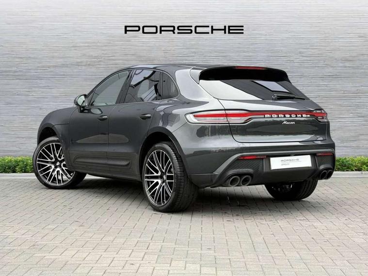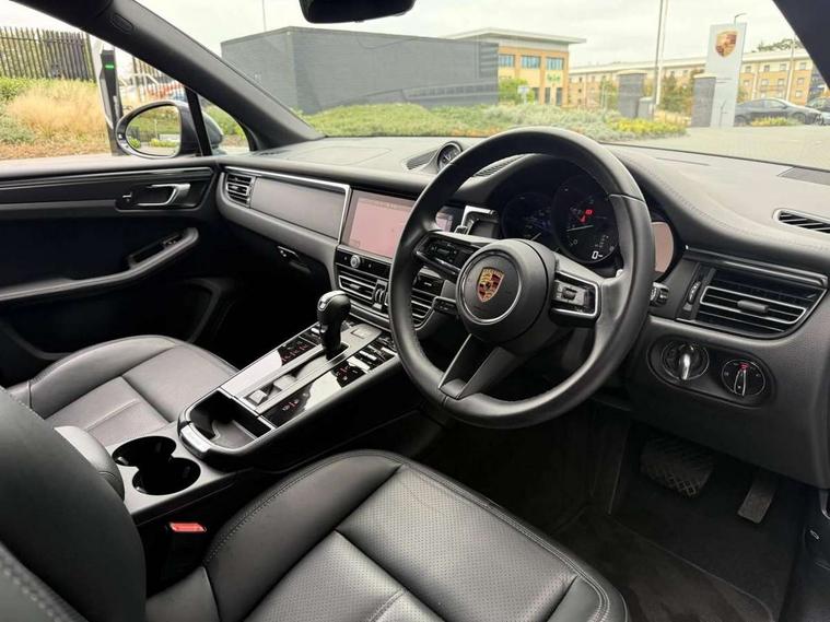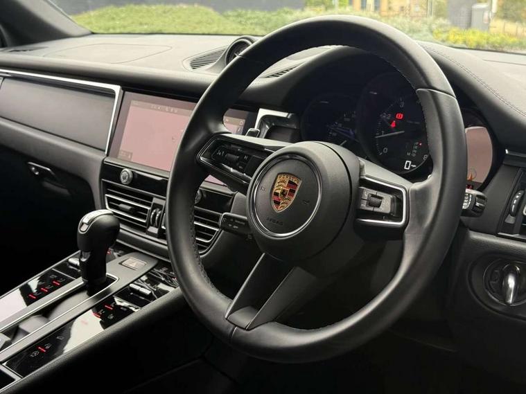 Analogue clock on dashboard, Automatic start/stop system, Automatic tailgate, eCall emergency call system, Instrument cluster with high resolution 4.8-inch TFT display, gear indicator for PDK, service interval display, external temperature indicator, fuel gauge, Off-road button, On board computer, Porsche Communication Management (PCM) including online navigation module, mobile phone preparation, audio interfaces and voice control system, Sports button in centre console, 7-Speed Porsche Doppelkupplung (PDK) with automatic mode and manual controls (gearshift paddles) on steering wheel, Direct fuel injection (DFI), Gasoline particulate filter, VarioCam camshaft control for inlet and exhaust valves, 2 USB sockets in rear centre console, Apple CarPlay with Siri voice recognition, Connect Plus including online navigation, LTE communication module with SIM card reader, wireless internet access, Porsche Car Connect services, DAB Digital radio, Porsche Vehicle Traking System Plus (PVTS Plus), Smartphone compartment with wireless charging, Two USB C charging and connectivity ports in the front centre console storage compartment, Active radiator grille shutters, Automatic headlight activation including welcome home lighting, Bumper system with high strength cross members and two deformation elements + One threaded fixture point for towing eye contained in onboard tool kit, Dynamic cornering lights, speed-sensitive headlight and dynamic range control, adverse weather function, four-point LED daytime running lights, Electric front and rear windows with remote closing function + anti trap + one touch, Electrically folding and heated exterior mirrors, Front light modules with LED position lights and direction indicators, Front windscreen wipers with two speeds, intermittent wipe and rain sensor, Front with integrated cooling air intakes, Fully galvanised body, Heated rear window with automatic switch off, High level 3rd LED brake light integrated into roof spoiler, Loading edge protection in aluminium, Rear side wing doors, Rear window wiper with intermittent function and washer jet, Roof spoiler in high gloss black, Towbar preparation, 3 adjustable rear headrests, 3 rear seats, 3 zone auto climate control separate temperature setting+air recirculation include quality sensor, airflow regulation+AC MAX button+humidity sensor, 4 way adjustable front head restraints, 40:20:40 split folding rear bench seat, Cloth hook b-pillar, Fold up centre console armrest with fore/aft adjustment, Front and rear bottle holders in door panels, Front passenger seat, Glove compartment, Isofix fastening system for child seats on outer rear seats, Luggage compartment cover, Particle/pollen filter with active carbon filter, Rear armrest with 2 cupholders, Storage bin in centre console, Storage compartment in side of luggage compartment and storage compartment in spare wheel recess, Storage pocket in front and rear doors, Two integrated cup holders in front with variable diameter, Two socket 12V power outlets in front console and luggage compartment, Uncovered storage compartment in centre console, Ambient comfort lighting pack - Macan, Lower exterior trim package in black - Macan, 3-point automatic seatbelts with front and outer rear seats pretensioners and force limiter + manually height adjustable seatbelt + reminder warning, Auto hold function, Black painted brake calipers, Child locks on rear doors, Curtain airbags along entire roof frame and side windows from A pillar to the C pillar, Electronic parking brake, Front passenger airbag deactivation facility for installation of child seats indicator in overhead console, Front side airbags integrated into seat, Full size driver and passenger airbags, Internally vented brake discs with diameter of 350mm at front and 330mm at rear, Multi-Collision braking, Porsche hill control (PHC), PTM(Porsche Traction Management) and All-wheel drive with map-controlled multi-plate clutch, Roll over sensor for curtain airbag and seatbelt pretensioners, Side impact protection in doors, Tyre pressure monitoring system, Vehicle stability system, Porsche stability management (PSM) including ABS, ASR, ABD, MSR and trailer stability management, Vented discs brake with 4 piston aluminium monobloc fixed caliper at front, Vented discs brake with combination floating calipers at rear, Alarm system with ultrasonic interior surveillance, Dashcam prep, Engine immobiliser with key transponder, Remote control central locking, Accent trims with silver coloured finish,