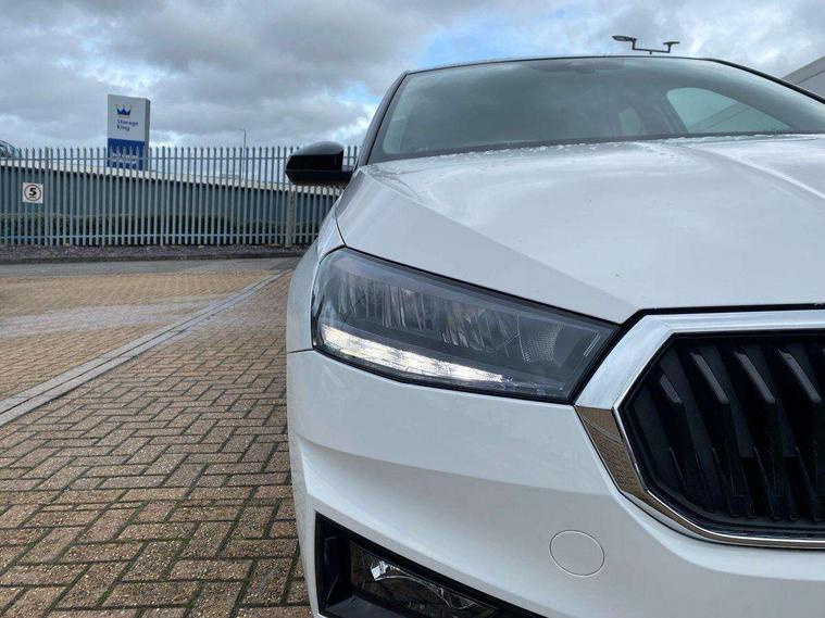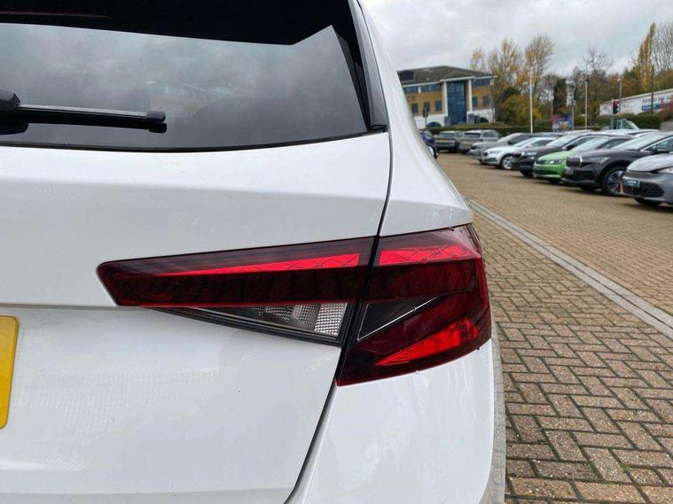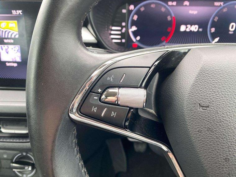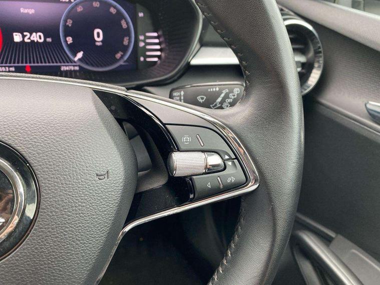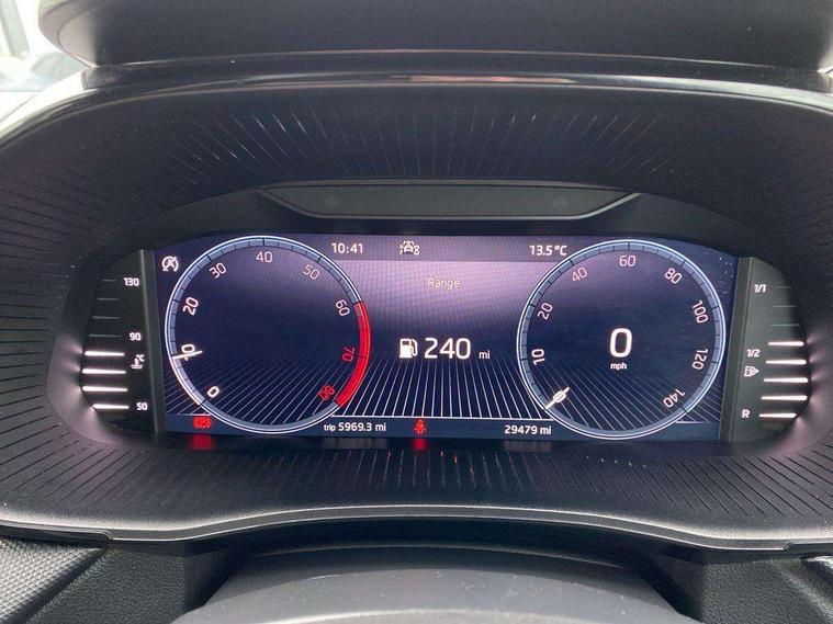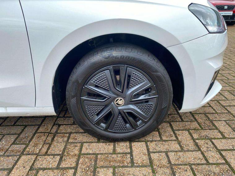 Bluetooth connection, Driver alert system - DAS, Electromechanical power steering, Exterior temperature gauge, Lane assist including road edge detection, Service interval indicator, Virtual cockpit with 10.25" colour display, 2x USB-C in the front (for data transmission and charging), 6 Speakers (4 in front and 2 in rear), Auxiliary socket for external MP3 player, Bolero radio with 8" colour display, DAB digital radio reception, Basic rear lights, Body coloured bumpers, Dimming rear view mirror with black frame, Door mirror integrated indicators, Electrically adjustable and heated door mirrors, Electrically adjustable front windows with function auto up/down, Front window wiper intermittent control, Headlight range control - Automatic, Ice scraper in fuel cap, LED daytime running lights with coming and leaving home feature, Mechanical adjustable rear windows, Privacy glass, Rear LED fog light, Rear side wing doors, Rear window wiper with washing nozzles, Roof mounted spoiler, SKODA tailgate lettering in chrome, Third brake light, 3 rear headrests, Backrest split and folding, Central console with fixed cup holder and storage box, Chrome handbrake release button, Fabric upholstery, Gearshift knob/handle in leather, Grain satin black interior door handles, Hand brake lever handle in leather, Height adjustable front headrests, Height adjustable steering wheel, ISOFIX and TopTether anchorage points to the outer rear seats, ISOFIX and TopTether on the front passenger seat, Luggage compartment lighting, Pollen filter, Rear seat bench unsplit, Single front passenger seat, Storm grey headlining, Sun visors with mirror and airbag label on passenger side, Ticket holder, Umbrella in drivers door, 3-point height adjustable front seats belts with pretensioner and force limiter, Automatic warning lights in case of crash, Driver and passengers airbag with switch off function, e-Call+, ESC including ABS, MSR, ASR, EDS, HBA and XDS, Front and rear seat belt warning, FRONT ASSIST (AEB City and AEB Inter Urban), Front side airbags, Head airbags, One tone horn, Pedestrian protection, Three rear 3-points safety seat belts with pretensioner and force limiter including stop function for outer rear seat belts, Tyre pressure monitoring system, Anti-theft alarm system including immobiliser, interior monitoring, backup horn, and towing protection, Anodized cross line upper decorative trim, Colour Edition air vents, Grain satin black central console cover, Grain satin black lower decorative trim, Satin black door and side trim panel in front, Anti-theft wheel bolts protection, Super-low rolling resistance tyres,