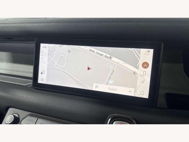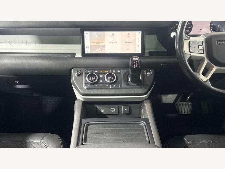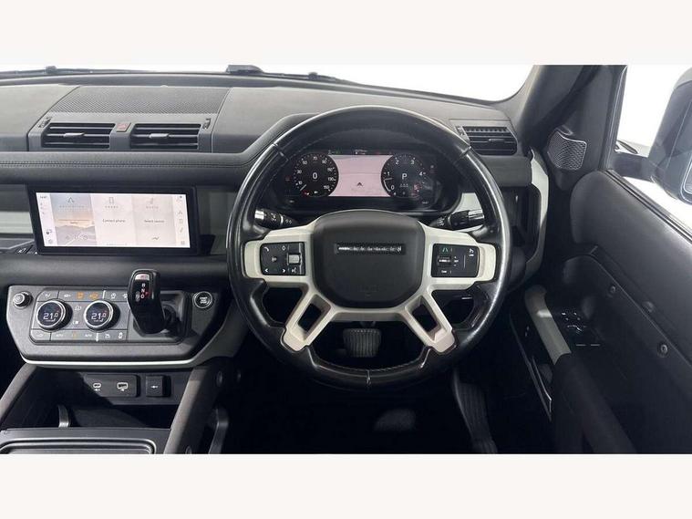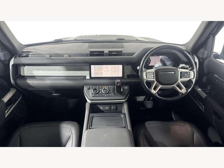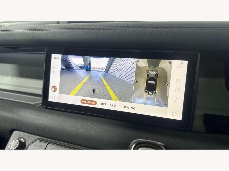 360 degree parking aid, 3D Surround Camera with 360 View, 180 Rear View, Front Traffic Detection, Forward Vehicle Guidance, Tow Hitch Assist and clear sight Ground View, Android Auto, Apple CarPlay, Assisted tailgate with soft close, Blind spot assist, Bluetooth system, Brake pad wear indicator, Clear exit monitor, Click and go integrated base unit, Connected navigation pro, Driver condition monitor, Electric power assisted steering (EPAS), Interactive driver display, Lane keep assist, Push button start, Rear traffic monitor, Traffic sign recognition with adaptive speed limiter, Trip computer, Wade Sensing, DAB Radio (Digital Audio Broadcasting), Meridian 400w sound audio system with 11 speakers and subwoofer, Pivi pro connected, Automatic headlight levelling, Automatic headlights, Centre high mounted stop light, Electric heated/power fold door mirrors with approach lights and auto dimming driver side, Electric windows with one touch open/close and anti-trap, Follow me home lighting, Front fog lights, Heated rear window with timer, Heated windscreen, LED tail lights, Matrix LED headlights with signature DRL, Puddle lights, Rain sensing windscreen wipers, Rear fog lights, Rear wiper, Standard treadplates, Trailer stability assist, 12V power socket in loadspace, 3 seat bench in 2nd row, Cabin lighting, Carpet mats, Durable rubber cabin flooring, Durable rubber loadspace flooring, Electric reach + rake adjustable steering column, Footwell lights, Loadspace cover, Loadspace Hook, Multifunction steering wheel, Overhead stowage for sunglasses, Rear headrests, Rear ISOFIX, Rear reading lights, Single front passenger seat, Storage glovebox, Sunvisors with illuminated vanity mirrors, Online pack with data plan - Defender, 5 x 3 point seatbelts, ABS, Brake hold function, Cornering brake control (CBC), Customer configurable autolock, Driver and passenger airbags, DSC - Dynamic Stability Control, EBD - Electronic brakeforce distribution, Electric parking brake (EPB), Emergency braking, ESP + traction control, Front airbags with passenger seat occupant detector, HDC - Hill descent control, Hill launch assist, Low traction launch, Remote for (e-Call, Optimised assistance call, InControl app, Climate, beep and flash and door), RSC - Roll stability control, Seat belt reminder, TPMS (Tyre pressure monitoring system), Alarm, Immobiliser, Intrusion sensor, Keyless entry and go, Locking wheel nuts,