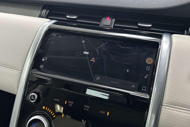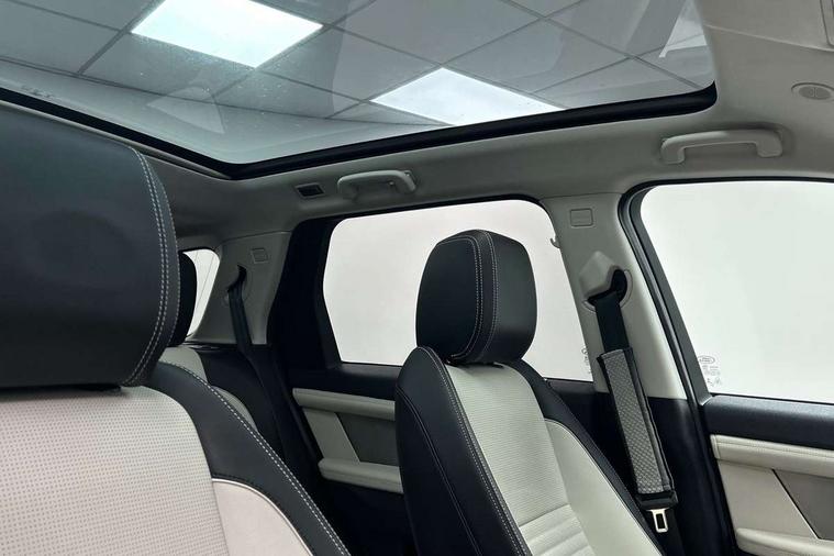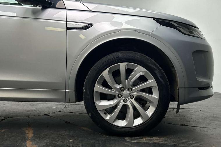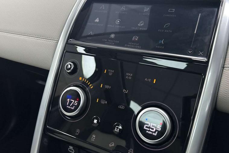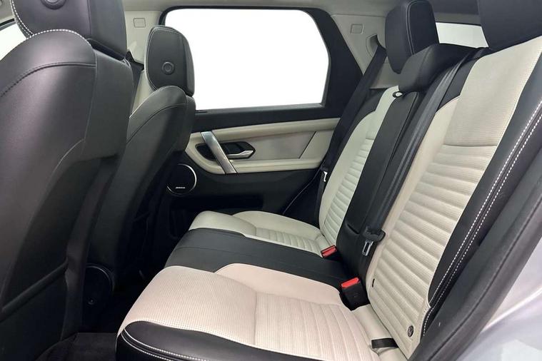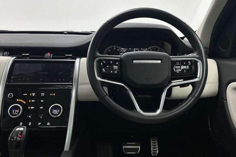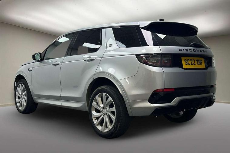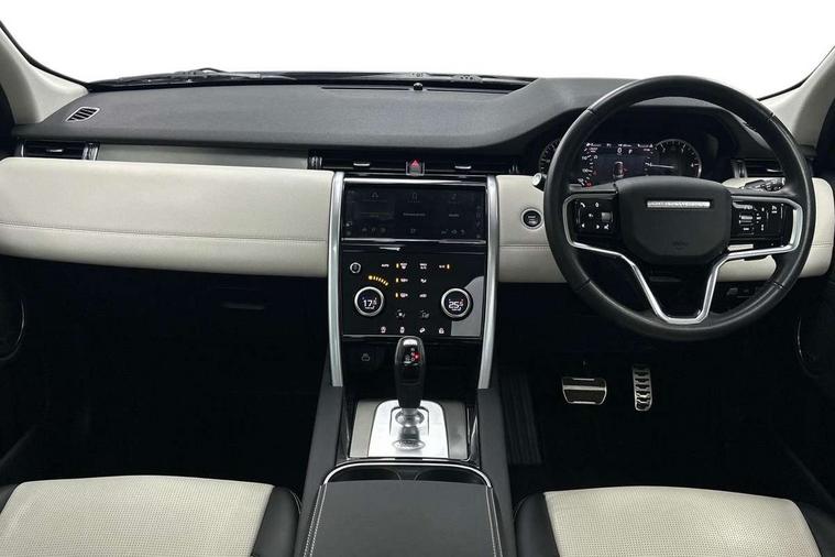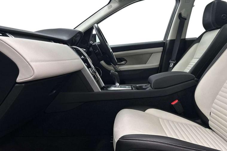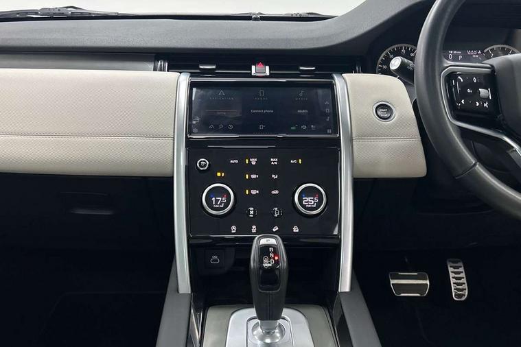 10" touch screen, Adaptive cruise control, Android Auto, Apple CarPlay, Driver condition monitor, eCall emergency call system, Front and rear parking aid, InControl remote premium, Lane keep assist, Locking fuel flap, PAS, Pivi Pro connected navigation system with upgraded Infotainment, Powered tailgate/boot lid, Push button start, Rear collision monitor, Service interval indicator, Traffic sign recognition with adaptive speed limiter, Trip computer, Wade Sensing, All terrain progress control, Coil suspension system, Diesel particulate filter, Dynamic stability control, Terrain Response 2, Bluetooth connectivity including audio streaming, Digital Audio Broadcast radio-DAB, Steering wheel mounted audio controls, 3rd brake light, Automatic headlights, ClearSight interior rear view mirror, Electric front/rear windows, Electric heated/power fold door mirrors with approach lights and auto dimming driver side, Fixed panoramic sunroof with powered sunblind, Front and rear recovery eyes, Heated rear window, Heated windscreen including heated washer jets, No badges, R Dynamic badge, Rain sensing windscreen wipers, Rear fog lights, Rear side wing doors, Rear wing door, Rear wiper, 5 seats, Bright metal pedals, Centre console with armrest, Footwell lights, Front and rear grab handles, Front passenger isofix child seat attachment, Loadspace cover, Loadspace light, Overhead lighting console, Overhead stowage for sunglasses, Rear headrests, Satin chrome gearshift paddles, Sunvisors with illuminated vanity mirrors, Tilt/reach adjustable steering wheel, Black exterior pack - Discovery sport, Online pack with data plan - Discovery, 3 point seatbelts on all seats, ABS, Brake hold function, Child locks on rear doors, Collision mitigation braking system, Cornering brake control (CBC), Driver/Front Passenger airbags, Drivers knee airbag, Electronic brake force distribution, Electronic parking brake, Emergency brake assist, ESP + traction control, Hill descent control, Hill launch assist, Pedestrian airbag system, Rear seat ISOFIX, Roll stability control, Side and curtain airbags for front and 2nd row seats, Trailer stability control, Tyre pressure monitoring system, Battery Back Up System (BBUS) with tilt sensor, Global lock and unlock switch on driver door, Intrusion sensor, Keyless entry, Locking wheel nuts, Centre stack rails in noble chrome,