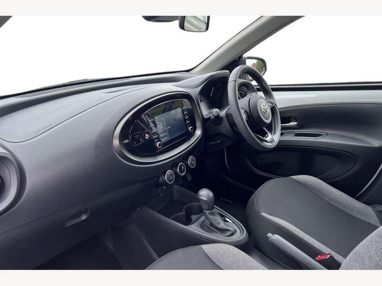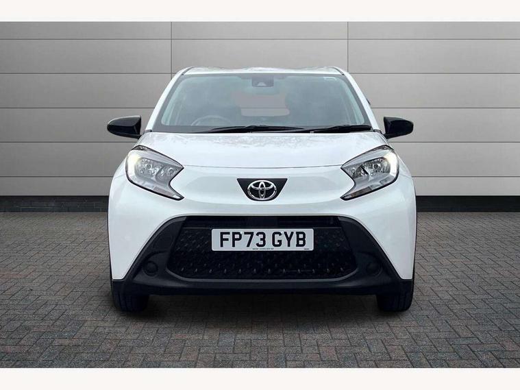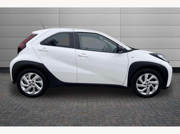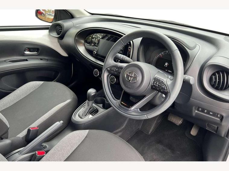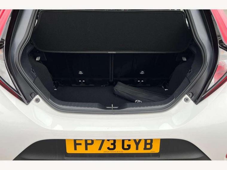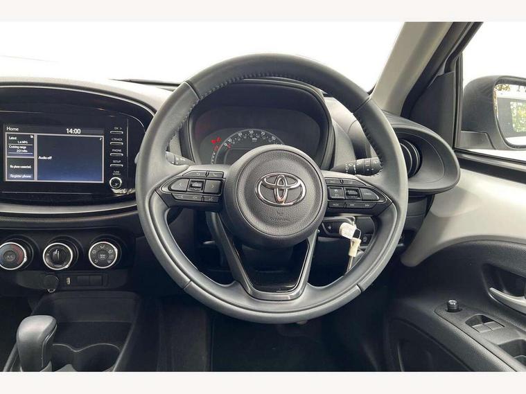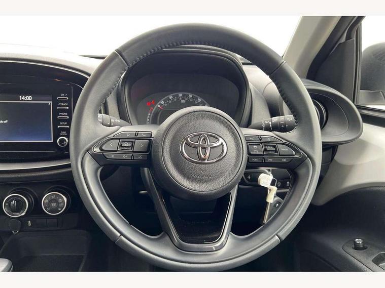 4.2" TFT colour screen, Adjustable speed limiter, Analogue speedometer, Bluetooth connectivity, Digital tachograph, Driver attention alert system, eCall emergency call system, ECO-driving indicator, Electric power steering, Intersection turn assist, Key reminder warning, Noise reduction kit, Pre collision system with emergency steering assist, Reversing camera with static guide lines, Smart phone integration with Apple car play/Android Auto, Speed limit display, Start and stop, Vehicle Stability Control (VSC), 4 speakers, 9" HD multimedia display touch screen with Toyota smart connect, DAB digital audio broadcast, USB connector, Auto headlights, Automatic headlights cut-off, Bicycle towing hook, Black lower front grille, Black rear bumper, Black side protection mouldings, Black upper front grille, Black wheel arch mouldings, Body colour door handles, Body coloured front bumper, Boot door scuff plate, Electric heated door mirrors, Follow me home headlights, Front power windows, Gloss black door mirrors, Headlight cut-off reminder, LED daytime running lights, LED front light guide, LED High mounted stop lamp, Manual day/night rear view mirror, Manual headlight levelling, Pagoda roof, Power adjustable door mirrors, Power back door, Projector halogen headlights, Rain sensor, Rear combination lights LED bulb type, Rear side wing doors, Rear windscreen defogger, Rear windscreen wiper, Short antenna, Variable intermittent windscreen wipers, 12v power outlet - front, 2 seat bench in 2nd row, 3 spoke leather steering wheel, 50/50 split folding rear seat, Adhesive roof headlining, Adjustable speed limiter switch on steering wheel, Audio and telephone switches on steering wheel, Black insert on steering wheel, Boot light, Centre room light, Chrome interior door handles, Chrome surround on air conditioning buttons, Clean air filter, Fabric upholstery, Floor mats, Front and rear cup holders, Front head rest deco art, Front head restraints, Gear shift indicator, Height adjustable driver seat, Intelligent adaptive cruise control switch on steering wheel, ISOFIX child restraint system on rear seats, Lane departure alert switch on steering wheel, Leather gearshift knob, Light grey roof lining, Manual air conditioning, Manual tilt steering wheel, Manually reclining and sliding driver seat, Manually reclining and sliding front passenger seat, Multimedia switches on steering wheel, Pollen filter, Rear door pockets, Rear head restraints, Resin console box storage, Satin silver insert on gear shift knob, Silver stitching on gear shift knob, Single compartment glovebox with lights, Single front passenger seat, Soft tonneau cover, Sun visors with mirror on driver and passenger side, Voice recognition switch on steering wheel, Toyota safety sense pack - Aygo X, Anti lock braking system + Electronic brake force distribution, Child safety door lock, Emergency brake light signal (EBS), Hill start assist control (HAC), Passenger airbag on/off switch, Seat belt reminder for front and rear seats, Supplement restraints system (SRS) - 6 airbags, Traction control, Tyre pressure warning system, Immobiliser, Remote power door locks, Black air vent surround, Black wheel centre caps, Tyre repair kit,