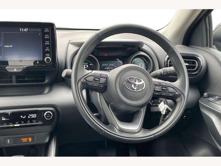 Adaptive cruise control, Adjustable speed limit with speed warning, Bluetooth connectivity, Colour binocular inspired displays with digital speedometer, E-call, Electric power steering, Hybrid energy display, Multi information display switches on steering wheel, Reversing camera, Smartphone integration with Apple CarPlay and Android auto, Tailgate, Voice recognition, Vehicle Stability Control (VSC), 4 speakers, 8" Multimedia display touch screen, USB connection, Acoustic windscreen glass, Auto windscreen wipers, Automatic headlights, Body coloured door mirrors, Electric adjustable heated door mirrors, Follow me home headlights, Front auto power windows with anti jam protection, Full LED rear lights, LED daytime running lights, LED front fog lights, LED front light guide, LED Headlights, LED High mounted stop lamp, LED Indicators, LED rear light guide, Manual headlight levelling, Painted chequered front grille, Rain sensor, Rear auto power windows with anti jam protection, Rear privacy glass, Rear side wing doors, Rear spoiler, Rear wiper, Shark fin antenna, Turning signal integrated indicators in door mirrors, Variable front intermittent wipers, 3 adjustable rear headrests, 3 spoke leather steering wheel, 60/40 split folding rear seat, Active headrests, Adjustable boot height, Auto air conditioning, Coat hooks in rear grab handles, Cup holders (2 front & door), Data Communication Module (DCM) connected services, Fabric upholstery, Front armrest, Glovebox, Grey roof lining, Height adjustable driver's seat, Isofix seat fixing, Leather gearshift, Pollen filter, Shopping bag hooks, Single front passenger seat, Tilt/telescopic steering column, 3 point seatbelts on all rear seats, ABS+EBD+Brake assist, Electronic parking brake, Emergency brake light system (EBS), Front passenger airbag on/off switch, Front seatbelt reminder, Hill start assist control (HAC), Rear child proof door locks, Rear seat belt reminder, Supplemental Restraint System (SRS) 8 airbags: Driver & passenger's airbags, dual side curtain airbags, side impact airbags, front centre airbag, Toyota Safety Sense 2, Precollison + Night time Pedestrian & Cyclist Detection, Lane Trace Assist, Auto High Beam, Intelligent ACC & Road Sign Assist, Tyre pressure warning system, 2x Master key, Alarm/immobiliser, Remote powered central double locking doors, Soft touch instrument panel, Space saver spare wheel,