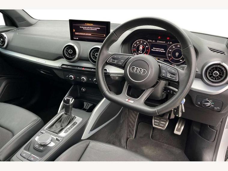 Audi connect navigation and infotainment includes innovative services, Audi connect remote and control connects your vehicle to your smartphone, Audi drive select, Audi drive select - Power steering assistance + engine + gearshift, Audi drive select with efficiency, Audi smartphone interface, Audi virtual cockpit, Automatic start/stop system with recuperation, Bluetooth interface includes bluetooth audio streaming, Cruise control, E-call, MMI navigation plus with MMI touch, Power operated tailgate, Progressive steering, Rear parking sensors, 2 x SDXC card reader, 8 passive loudspeakers, DAB Digital radio, DVD Drive, Auto dimming rear view mirror, Black window trims, Bumper in full body colour paint finish, Electrically adjustable, folding, auto dimming and heated door mirrors with integrated LED side indicators, Front windscreen with grey tinted sunband, LED daytime running lights, LED headlights with LED rear lights, LED third brake light, Privacy glass - dark tinted rear and rear side windows from B-pillar backwards, Rear side wing doors, Rear wiper, Variable front intermittent wipers, Wheel arch trims in manhattan grey, 12v socket in front, 3 seat bench in 2nd row, 3 spoke flat bottomed multi-function leather sport steering wheel with gear shift paddles, 4-way electric lumbar support for front seats including seat height adjustment for both front seat, 60/40 split folding rear seat bench, Black cloth headlining, Front and rear head restraints, Front centre armrest, Front/rear floor mats, Height/reach adjust steering wheel, Illuminated door sill trims with S logo, ISOFIX child seat mounting for front passenger with airbag deactivation and outer rear seat including top tether attachment point for outer rear seats, Single front passenger seat, Stainless steel pedals, Black styling pack - Q2, 3x3 point rear seatbelts, 6 airbags - Front, curtain and front side airbags, Electromechanical parking brake, Electronic stabilisation control including ABS, ASR and EDL, Hill hold assist, Pre-sense front with pedestrian recognition, Seatbelt monitoring, Tyre pressure warning light, Warning triangle and first aid kit, Anti theft alarm, Anti theft wheel bolts, Electronically operated child locks, Remote central door locking, Aluminium interior element, Matt brushed aluminium trim inlays, Tool kit,