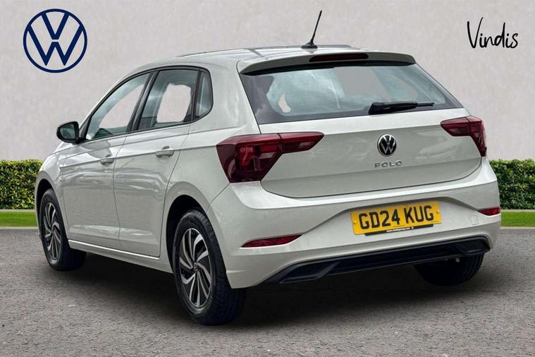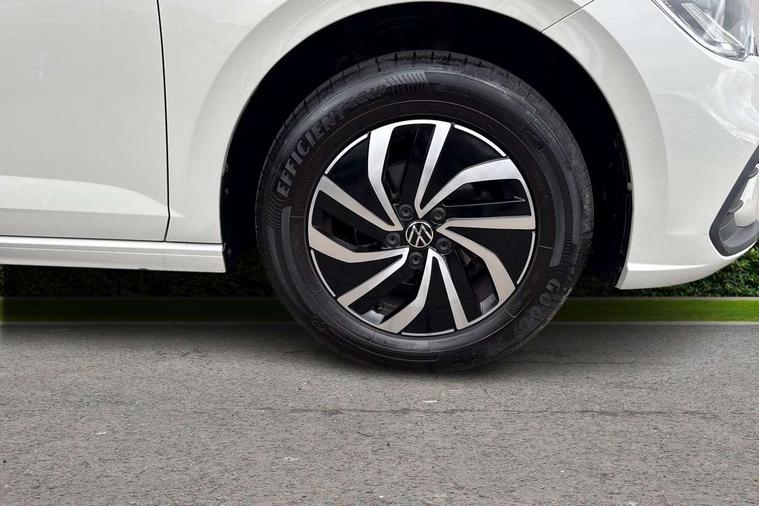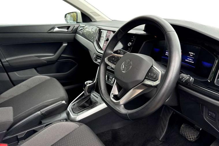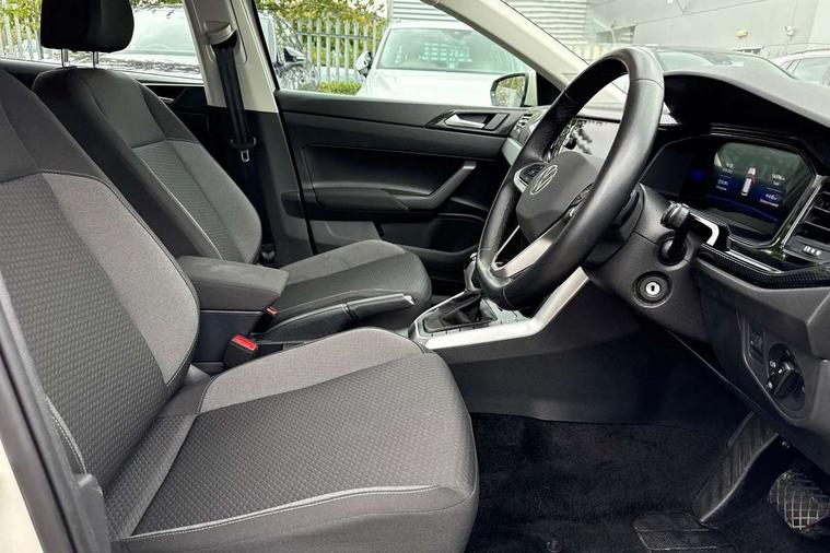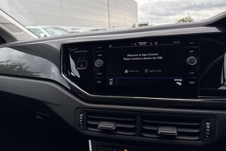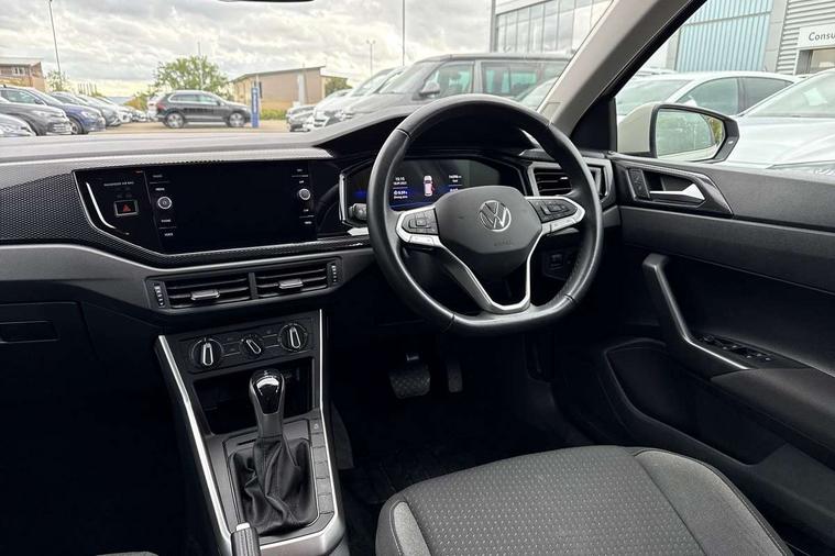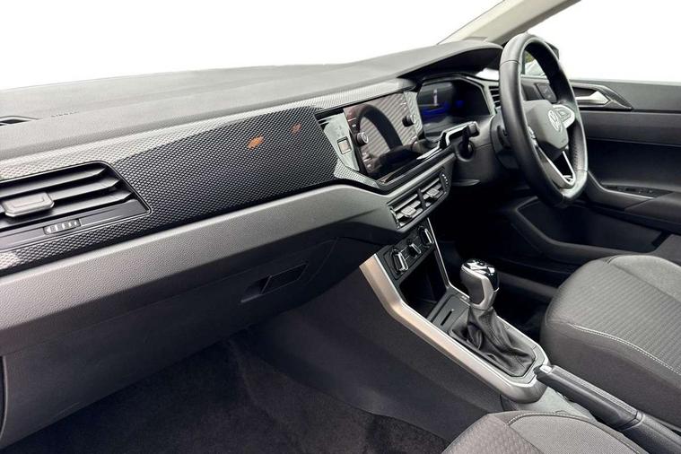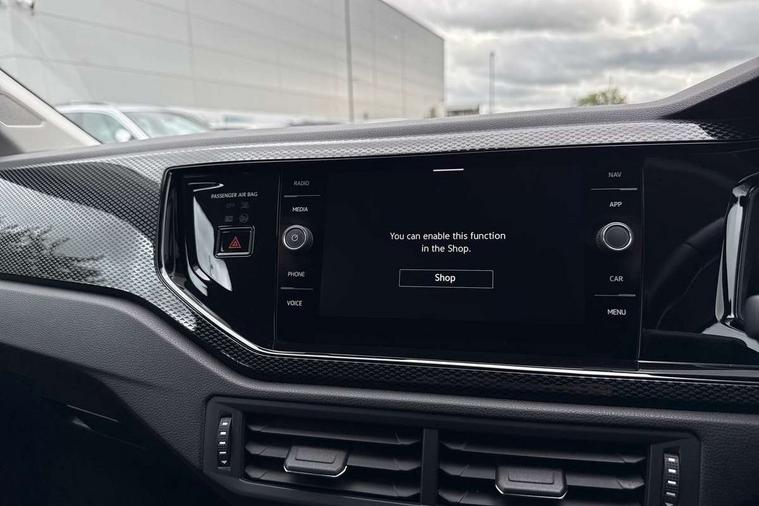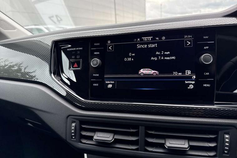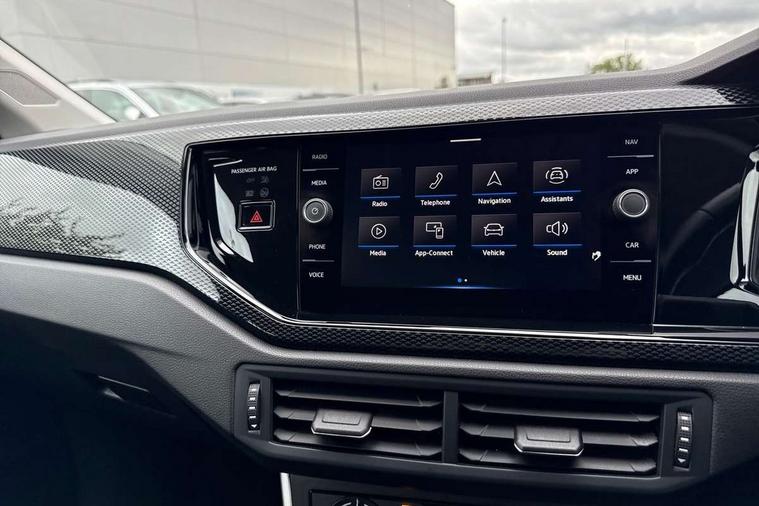 Adaptive cruise control with follow-to-stop and speed limiter, Advanced driver attention and drowsiness monitor, Bluetooth mobile phone interface, Dynamic road sign display, Emergency call service, Power assisted speed sensitive steering, Preparation for navigation system with media and internet package, Preparation for We connect and We connect plus, Speedo and rev counter, electronic odometer, trip, service interval display and exterior temperature gauge, Standard rear axle, Travel Assist - Lane keeping system and traffic jam assist, Travel assist including emergency assist, Trip computer, Warning signal and warning light for front and rear seatbelts not fastened, Washer fluid level indicator, Wireless app connect, Front wheel drive, Rear shock absorpion, Start-stop system with battery regeneration (recuperation - energy recovery during braking), DAB Digital radio, Diversity antenna for FM reception, Automatic dimming interior rear view mirror, Automatic headlight control with LED separate daytime running lights with coming/leaving home function, Body colour bumpers with chrome inserts, Body colour door handles, Body colour door mirrors, Electric front windows, Engine badge deletion, Headlight range adjustment, Heat insulating and laminated safety glass windshield, Heat insulating darkened glass in side and rear windows, Heat insulating glass windscreen, LED Headlights, LED rear combination lamps, Power folding adjustable/heated exterior mirrors and front passenger exterior mirror lowering function, Rain sensor, Rear electric windows, Rear fog light, Rear side wing doors, Rear windscreen washer and wiper with interval delay, Third brake light, 12V power socket in centre console, 2 front and 2 rear reading lights with switch off delay and dimmer, 2 USB-C ports in the front, 2 USB-C charging sockets on the center console in the rear, 3 rear head restraints, 60/40 split folding rear seat and rear seat bench not split, Ceramique roof lining, Chrome plated radiator grille inserts, air vent surrounds and light switch surrounds, Door and side trim panel, Driver and front passenger seat height adjustment, Driver/passenger sunvisors with illuminated vanity mirrors, Front centre armrest, Front seat backrest storage pockets, Front standard seats, Handbrake lever handle in leather, Hartley/Thomas cloth upholstery, Headliner in recycled material, Isofix child seat preparation easy-fit (for two outer rear seats, and front passenger seat) compatible with I-size, Leather trimmed gear knob, Luggage compartment cover, Luggage compartment lighting, Removable luggage compartment floor, Single front passenger seat, Standard climatic zones, Standard pedal cluster, Three spoke leather wrapped multifunction steering wheel with shifting paddles, Light and vision pack - Polo, 3 point height adj front seatbelts + pretensioners, 3x3 point rear seatbelts, ABS, Driver and front passenger airbag with front passenger airbag deactivation, Drivers and front passengers safety optimised head restraints, ESC (Electronic stability control) + EDL (Electronic Differntial lock) and ASR (Traction control), Extended and predictive pedestrian/ cyclist protection, Front assist with autonomous emergency braking (for Adaptive Cruise Control ACC up to 130 mph), Front curtain and side airbags with center airbag, Front disc brakes, Hill hold control, Manual child lock in rear doors, Rear drum brakes, Single tone horn, Tyre pressure loss indicator, Alarm with interior protection, Anti-theft alarm system with interior monitoring, backup horn, and towing protection, Anti-theft wheel bolts, Electronic engine immobiliser, Lava stone black gloss/matt decorative inserts in dash and front door panels, Low rolling resistance tyres,