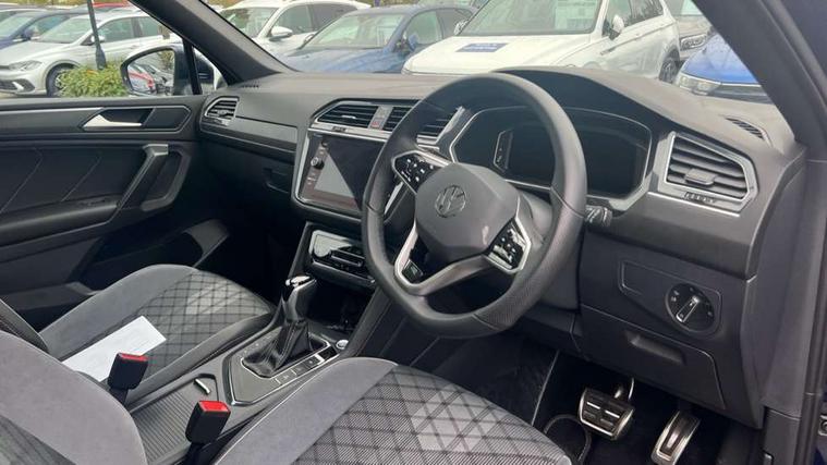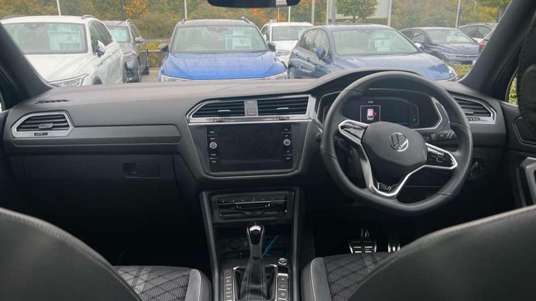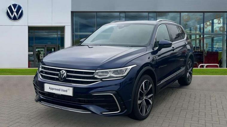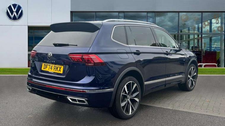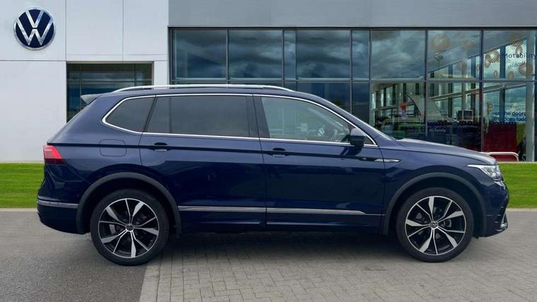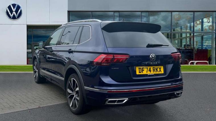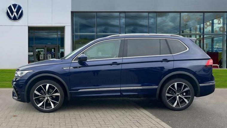 Adaptive cruise control, Advanced driver attention and drowsiness monitor, App-Connect, Digital cockpit pro, Driver profile selection, eCall emergency call service, Electric boot lid, Lane change assist, Lane keeping system Lane Assist, Mobile phone interface comfort with inductive charging feature, Multifunction front facing camera, Progressive steering, Speedo and rev counter, electronic odometer, trip, service interval display and exterior temperature gauge, Diesel particulate filter, Front wheel drive, Start-stop system with battery regeneration (recuperation - energy recovery during braking), 2 USB-C ports in the front, 1 USB-C charging socket on the center console in the rear, DAB Digital radio, Diversity antenna for FM reception, Auto dimming interior rear view mirror, Automatic headlight control system, Chrome mouldings on side window, Coming/leaving home lighting function, Exterior badge deletion, Rain sensor, Rear fog light, Rear side wing doors, Rear spoiler in R style, Rear wiper, Silver roof rails, Third brake light, 12-volt outlet in centre console rear and luggage compartment, 12V socket in centre console, 3 head restraints in rear, 3 individual folding 2nd row seats, 3rd row 2 individual seats, Air Care Climatronic 3 zone automatic climate control with enhanced air filter and controls in the rear, Black roof lining, Door and side trim panel with leatherette insert, Drawers under front seats, Driver + front passenger lumbar support, Driver and front passenger seat height adjustment, Foldable front passenger seat backrest, Front + rear carpet mats, Front centre armrest, Front footwell illumination, Illuminated scuff plates, ISOFIX anchorage points for mounting 2 child seats on rear seats and i-Size child seats, Leather gearshift handle, Leather wrapped multi function sports steering wheel with touch control and shifting paddles, LED interior light with switch off delay/dimmer and 2 front/rear LED reading lights, Stainless steel pedals, Sun visors with illuminated vanity mirrors, Top comfort sports seats in front with 'R' Logo, Ambience pack - Tiguan Allspace R Line, Driver assistance plus package - Tiguan Allspace, Park assist pack - Tiguan Allspace, 3 point seat belt for centre rear seat, 3 rear three point seatbelts, ABS+EBD+Brake assist, Driver and front passenger safety-optimised head restraints, Driver's and front passenger's airbag with front passenger's airbag deactivation switch, Electronic parking brake, Electronic Stability Control (ESC) inc EDL (Electronic Differential Lock) and ASR (Traction Control), Height adjustable front 3 point seatbelts + pretensioners, Manual rear child locks, Pedestrian monitoring, Rear disc brakes, Side airbag in front and rear with curtain airbag, Two tone horn, Warning buzzer for seatbelts if unfastened, Anti theft alarm system with interior monitoring, backup horn and towing protection, Anti-theft wheel bolts, Remote central locking with 2 remote folding keys,