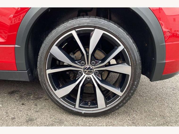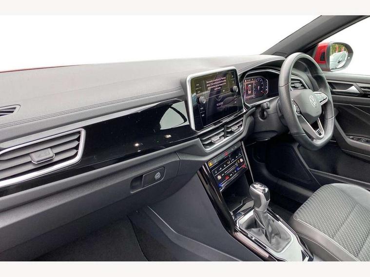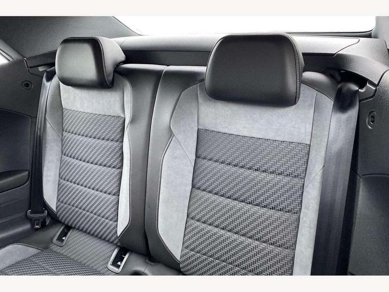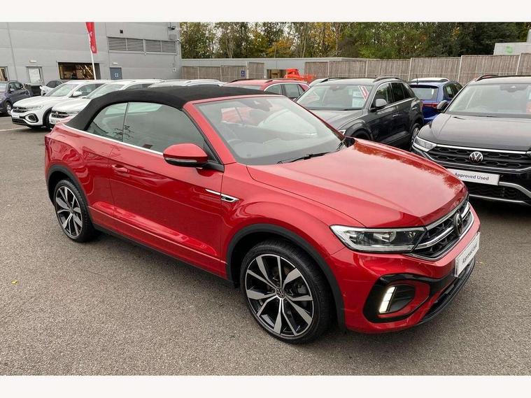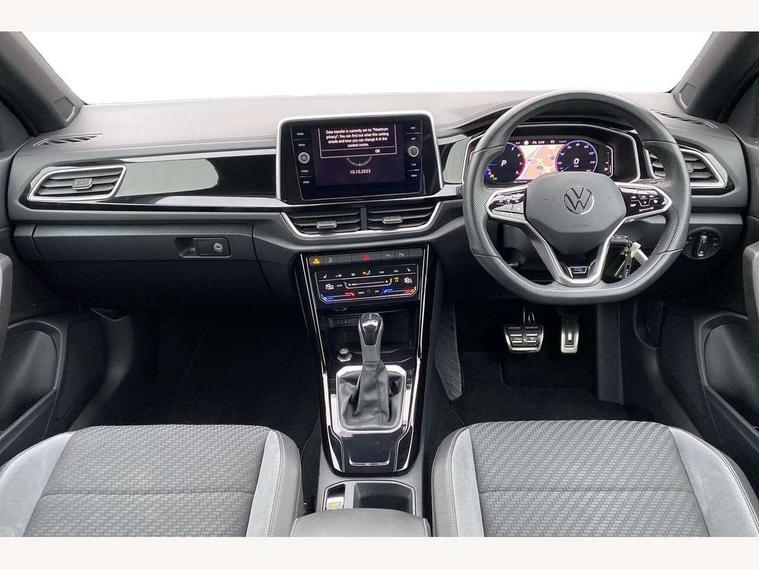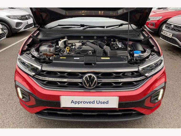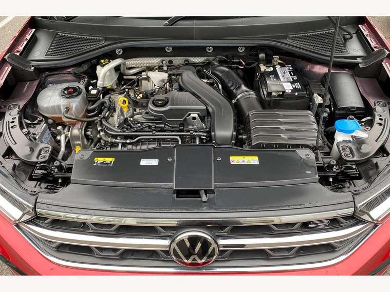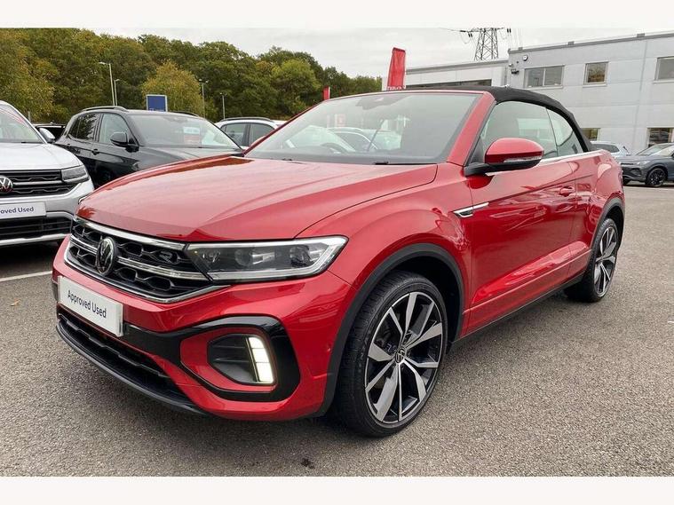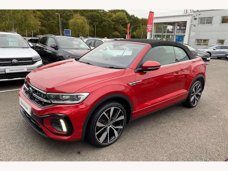 Adaptive cruise control and speed limiter, Bluetooth mobile phone interface, Brake pad wear indicator, Car information display, Digital Cockpit Pro with 10.25" Display, Driver alert system with fatigue detection, Driver tips and journey analysis, Emergency call service, Modified key software - reduce switch off time for key status change to Long no motion, Multifunction computer with visual gear change recommendation for fuel consumption, Multifunction front facing camera, Park assist including front and rear parking sensors, Speedo and rev counter, electronic odometer, trip, service interval display and exterior temperature gauge, Start/stop system with brake energy recovery, Tailgate/trunk lid release from outside, Warning sound and light for front seatbelts unfastened, Diversity antenna for FM reception, Music playback - MP3, WMA and AAC files, SMS functionality - read, compose and send SMS messages using touch-screen display, Title and cover art display, USB-C Interface and USB charging socket, We Connect and We Connect Plus functionality, Ambient lighting with logo projection, Auto dimming interior rear view mirror, Automatic hazard lights activation under emergency braking, Automatic headlight control with LED separate daytime running lights with coming/leaving home function, Black roof, Body colour door handles, Body colour rear spoiler, Chrome effect left and right trapezoid exhaust tailpipe fascia surround, Chrome trim on upper and lower radiator grille, Dark red rear combination lamps in LED technology, Dusk sensor, Exterior mirrors aspherical on driver side, convex on front passenger side, Heat insulating glass windscreen, High level 3rd brake light, LED performance matrix headlights - dynamic range control, dynamic cornering light and turn signal + light mode for rain/fog/snow, LED rear number plate lights, Power operated canvas convertible top, Power windows with comfort operation and circuit breaker, R-Line design body coloured bumpers, Rain sensor, Rear boot, Rear exhaust tailpipe, Rear fog light on one side and reversing lights on both sides, Remote electrically foldable door mirrors, puddle lights and reverse activated passenger door mirror, Volkswagen roundel, Windscreen wiper with intermittent wipe light, Without exterior ambient lighting, 12V socket in centre console storage area, 2 LED front reading lights, 2 seat bench in 2nd row, 50:50 Split folding rear seat backrests with fixed rear seat bench, Air care climatronic air conditoning system with active combination filter and 2-zone temperature control, Black door lower parts with chrome trim, Chrome plated surround to light, mirror and window switch, Door and side trim panel with leatherette insert, Easy entry backrest release, Front and rear carpet mats with black stitching, Front centre armrest, Front cupholders x 2, Front door pockets, Front seat back storage pockets, Front sports comfort seats with manual height adjustment, Heated leather wrapped multi function sports steering wheel with tiptronic, Height/reach adjust steering wheel, Inserts of front seats and outer rear seats in ArtVelours titan black, Instrument lighting, white adjustable panel illumination, Interior light delay, Interior light in footwell, Interior lighting with switch off delay and contact switches on all doors, Interior white ambient lighting and surround lighting, Isofix child seat preparation, Lockable glove compartment with light, Luggage compartment lighting, Power adjustable lumbar support in front, Rear head restraints, Single front passenger seat, Stainless steel pedals, Sun visors with illuminated vanity mirrors, Unique R Line door sill protectors, Driver assistance pack without proactive passenger protection - T-Roc Cabriolet DSG, 2 x 3-point seatbelts/outer rear seats with ECE label, Driver and front passenger airbag with front passenger airbag deactivation, Driver and front passenger safety-optimised head restraints, Drivers seatbelt reminder, Electronic parking brake, Electronic Stability Control (ESC) including ABS, ASR and EDL, Front and rear disc brakes, Front assist with autonomous emergency braking, Pedestrian monitoring, Predictive pedestrian protection, Rigid safety cell with front and rear crumple zones, Side airbag/thorax airbag system, for front passengers, Single tone horn, Three point height adjust front seatbelts + pretensioners, Tyre pressure loss indicator, Volkswagen roadside assistance, Anti-theft alarm system with interior protection and central locking system with SAFELOCK, radio remote control and 2 remote control folding keys, Electronic engine immobiliser, Trims for alloy wheels,