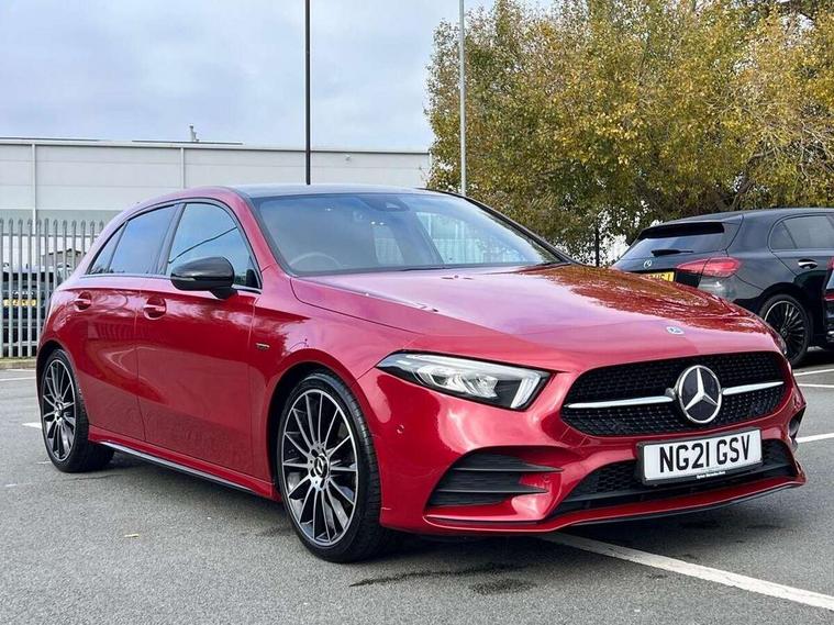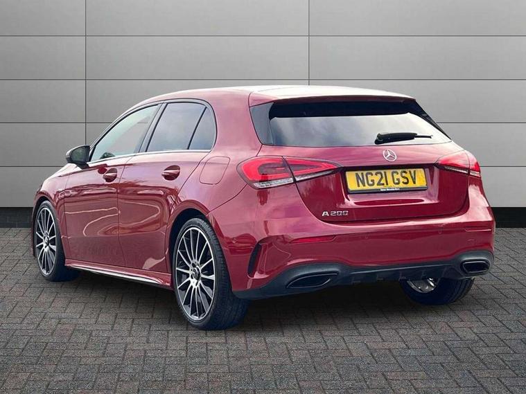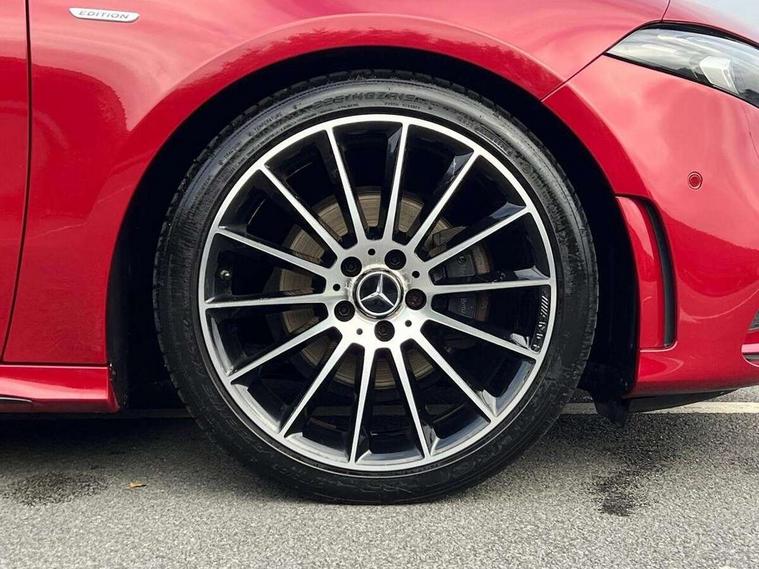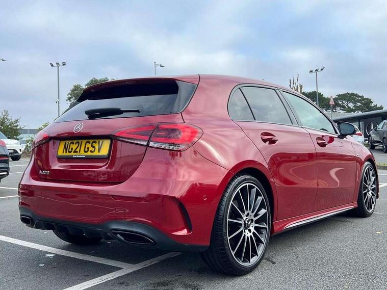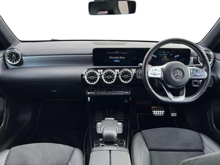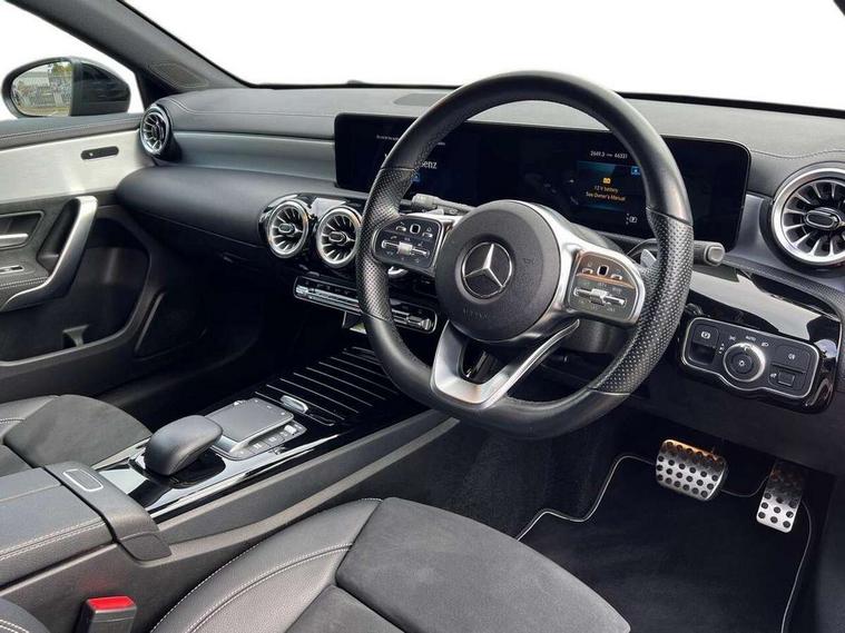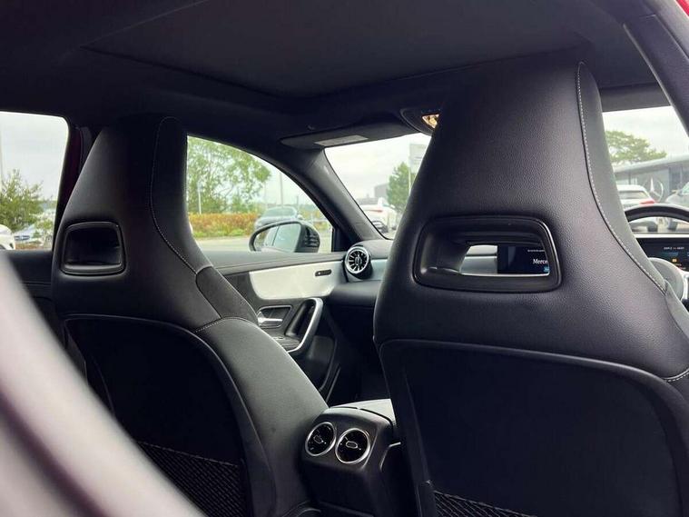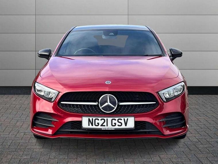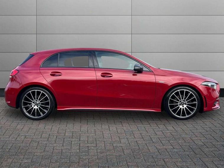 10.25" Digital instrument cluster display screen, 10.25" media display, 180 degree rear view camera with parking guidelines, Active parking assist with visual and audible warning of detected obstacles, Attention assist, Brake pad wear indicator warning light, Car wash mode, Cruise control + speed limiter, Direct steering, Dual bluetooth interfaces, DYNAMIC SELECT with a choice of driving modes (ECO, Comfort, Sport and Individual), ECO start/stop function, Fluid level warning indicator for fuel, oil, coolant and washer fluid, Hard-disk navigation, Hey Mercedes Voice activation, Lamp failure indicator, Mercedes me connect including emergency call system, accident recovery, breakdown and maintenance management, Mercedes me remote services, Outside temperature gauge, Owners manual in English, Pre-installation for private car sharing, Preinstallation for Mercedes Benz link, Service indicator (ASSYST), Smartphone integration with Apple CarPlay and Android auto, Speed limit assist, Speed sensitive power steering, Trip computer, Ultrasonic sensors positioned in the front and rear bumpers, Wireless charging, Lowered comfort suspension, Rear axle torsion beam, 2 USB ports (type C) in rear stowage compartment and one in front of center console, 6 speakers, MBUX multimedia system with DAB digital radio and touchpad including satellite navigation, Mercedes-Benz sound system - 100W, 4 Electric Front and Rear windows, Adaptive brake lights, Black chrome plated tailpipe trim, Body colour bumpers, Body colour door handles, Body colour side skirt, Diamond radiator grille with pins in black and black louvre, Edition badging on the front wings, Electric adjustable and heated door mirrors with integrated LED side indicators, Headlamp assist automatic headlamp activation, Heated glass rear windscreen + timer control, LED high performance headlamps with integrated LED daytime running lights, LED tail lamp, LED third brake light, Panoramic sliding sunroof, Privacy glass, Radio aerial, Rain sensing windscreen wipers with two sensitivity settings, Rear fog lights, Rear wiper, 3 Spoke flat bottom leather multi function steering wheel with perforated leather in grip area, 40:20:40 split folding rear seats, Artico man-made leather/ Dinamica microfiber upholstery, Auto Mercedes-Benz child seat recognition sensor, Black air vents with surround in silver chrome, Black roof lining, Brushed stainless steel sports pedals with rubber studs, Floor mats with black top stitching and embroidered edition logo and piping in light grey, Floor mats with stitched edging and AMG lettering, Front centre armrest with storage compartment, Front door sills with Mercedes Benz lettering, Front seat backs luggage nets, Front seat cushion length adjustment, Galvanished gear shift paddles on steering wheel, Heated front seats, Height/reach adjustable steering column, Interior lighting - 64 colour Ambient lighting, Interior mirror with reading lamps in black and frameless, Rear head restraints, Seat occupancy sensor for front passenger seat, Sports seats with integrated headrests, Stowage compartment in centre console with retractable cover, Sunvisors with illuminated vanity mirrors, Touchpad on center console, Twin front cupholders, Two zone thermotronic luxury automatic climate control, Light and sight pack - A Class, Mirror package - A Class, Night pack - A Class Exclusive Edition, Seat comfort pack - A Class, 3 rear 3 point seatbelts, ABS with Brake Assist, Active bonnet, Active brake assist includes forward collision warning system with autonomous braking, Adaptive brake assist with hold function and hill start assist, Black seatbelts, Bonnet with power domes, Childproof locks manually operated for rear doors and electrically operated for rear power windows, Crash responsive emergency lighting, Driver and passenger head and side airbags, Drivers knee airbag, Dual stage driver/passenger airbags, Electronic parking brake, ESP curve dynamic assist, ESP with ASR, Front and rear seatbelt reminder, ISOFIX and top tether child seat fixing points in two outer rear seats, Tyre pressure monitoring system, Warning triangle and first aid kit, Window airbags, Alarm system/interior protection/immobiliser, Keyless Go, Remote central locking and crash sensor with emergency opening function, Urban guard vehicle protection system with immobiliser and interior protection, Light longitudinal grain aluminium trim painted, 19" AMG multi spoke light alloy wheels painted in titanium grey with high sheen finish, Summer tyres, Tirefit sealant kit,