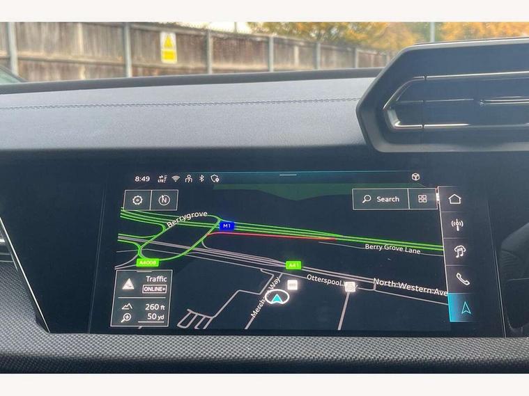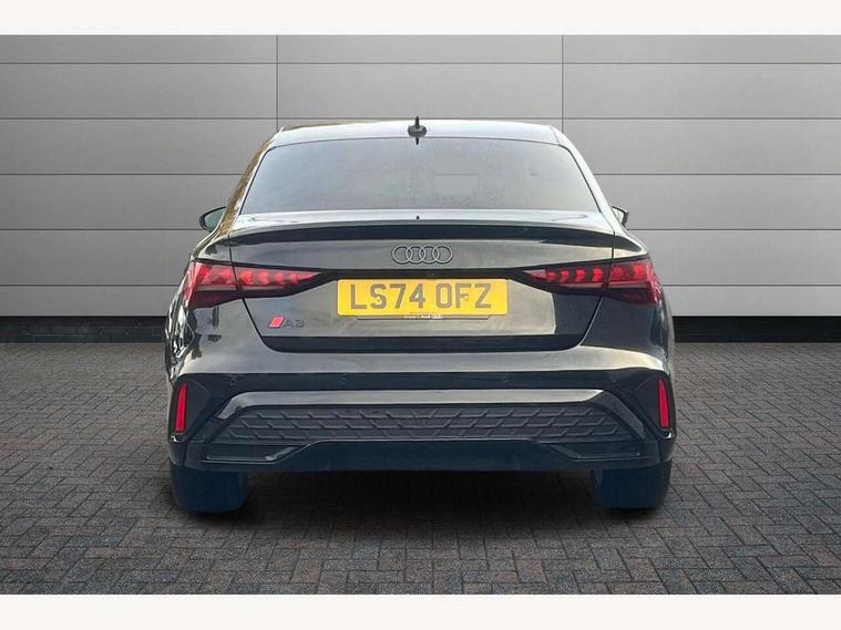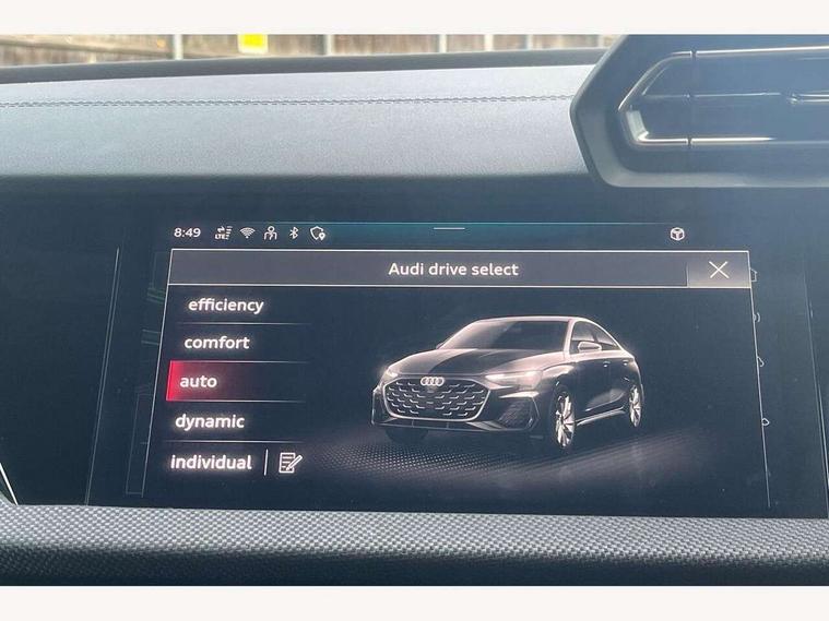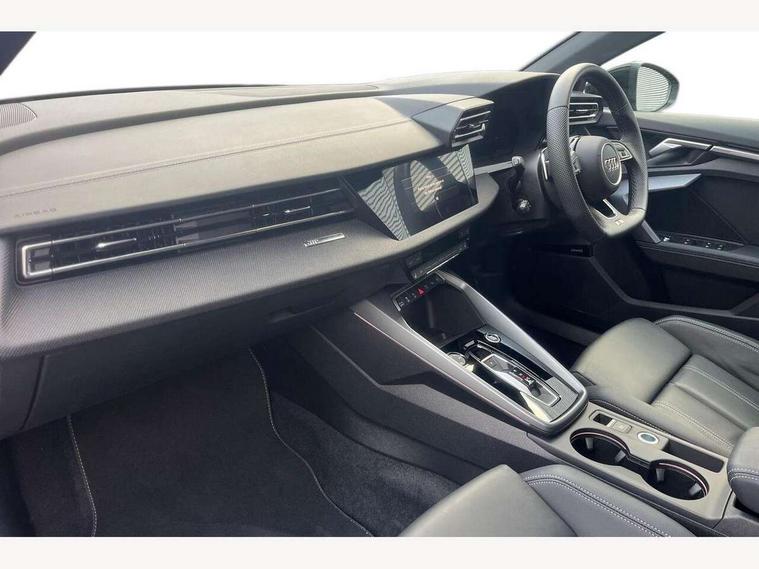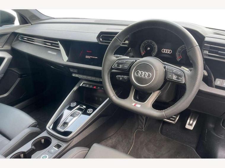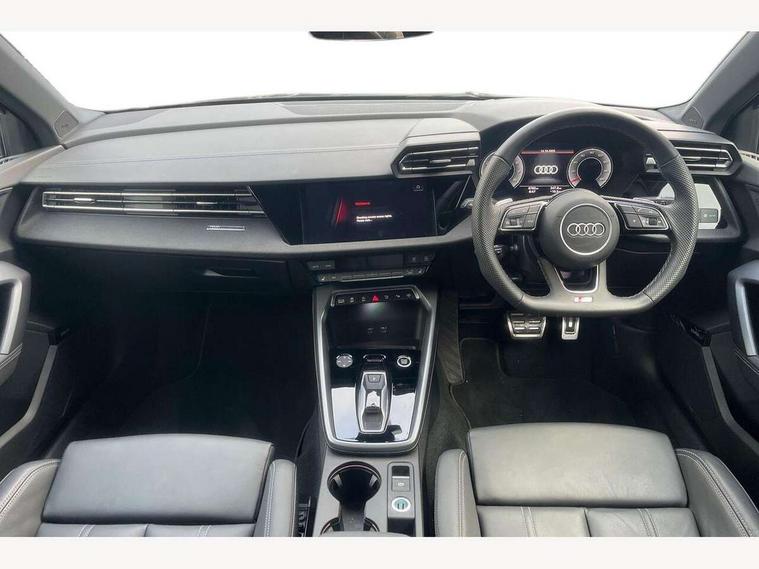 Adjustable speed limiter, Audi drive select, Audi smartphone interface with app store includes wireless Apple carplay, Android auto and Amazon alexa integration, Audi virtual cockpit plus - 12.3" full HD resolution dynamic digital instrument cluster, Automatic start/stop system with recuperation, Bluetooth interface, Camera based traffic sign recognition, Collision avoidance assistant, Cruise control, Distraction and Fatigue warning, e-Call (emergency call), Electromechanical power speed sensitive steering, Lane departure warning system, MMI Navigation Plus with high resolution 10.1" colour touch screen display, Park Assist with parking system Plus, Service indicator, Trip computer, Voice control system with natural language interaction, Sports suspension, Audi Phonebox light with wireless charging, Audi sound system - 10 loudspeakers including centre loudspeaker and subwoofer, DAB Digital radio, USB ports with charging function in the rear, Acoustic glass windscreen, Anthracite grey Audi rings (front and rear), Audi beam uses LEDs to project the Audi logo onto the ground as you exit your A3, Auto dimming frameless rear view mirror, Black accents front and rear bumpers, Black accents in the area of the Audi single frame grille, Black accents window trims strips, Electrically adjustable/heated/folding/auto dimming door mirrors with integrated LED indications + kerb view function for passenger side, Exterior model badging, Front electric windows, Heat insulating glass windscreen, Illuminated door sills with aluminium inserts at the front with S logo, LED 3rd brake light, LED daytime running lights, LED headlights with LED rear lights and dynamic rear indicators, Light and rain sensors, Privacy glass - dark tinted rear window, rear door and side windows, Rear boot, Rear electric windows, Rear side wing doors, 12V socket and storage compartment in front centre console, 3 seat bench in 2nd row, 3 spoke flat bottomed leather multifunction sport steering wheel with gear shift paddles, 3-zone deluxe automatic air conditioning, 4 way electrically adjustable lumbar support for driver and front passenger, 40/20/40 split folding rear seat bench, Black cloth headlining, Front and rear centre armrest in artificial leather, Front and rear centre armrest in artificial leather with contrasting stitching on armrests and instrument panel, Front and rear headrests, Front/rear floor mats, Heated front seats, Height and reach adjustable steering wheel, Manual boot compartment lid, Manually adjustable front seats, Rear cup holders, S badging on the steering wheel, Seat side bolsters, Single front passenger seat, Stainless steel pedals and front footrest in black, Twin leather upholstery with front sports seats S embossed logo, Aluminium interior elements pack - A3, Multi-coloured LED interior lighting package - A3 Black Edition, 3x3 point rear seat belts, Driver and front passenger airbag with passenger airbag deactivation, Electronic Stabilisation Control (ESC) including ABS, ASR and EDL, First aid kit with warning triangle and 2 safety vests, Front side airbags with head airbags and interaction airbag, Hill hold assist, Pre-sense front with pedestrian and cyclist detection, Seatbelt monitoring, Tyre pressure loss indicator, Anti theft alarm, Anti-theft wheel bolts, Electronically operated child locks, Immobiliser, Remote central locking with safelock, Inlays in black Impressum woven textile,