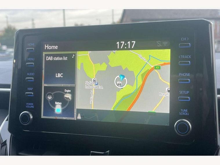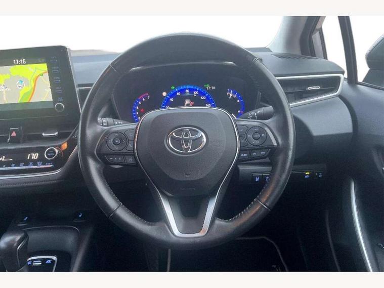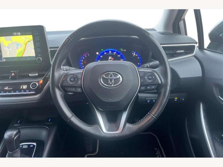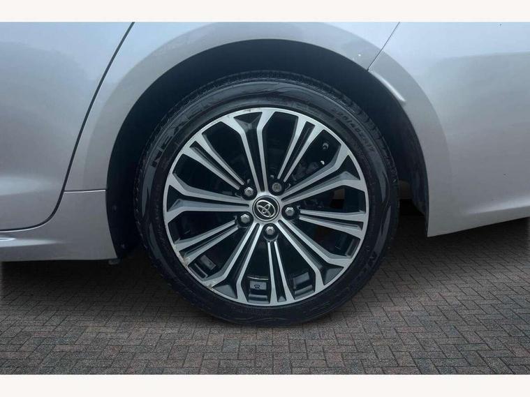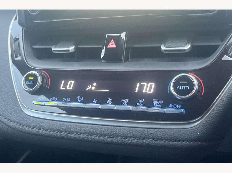 7" colour TFT display, 7" Multi information display screen, Adaptive cruise control, Bluetooth telephone connectivity, E-call, Electrically assisted power steering, Lane trace assist with sway warning function, Push button start, Reversing camera, Road sign assist - RSA, Voice recognition, Vehicle Stability Control (VSC), 2 ring combimeters with 7" colour TFT screen, 6 speakers, AM/FM radio, DAB Digital radio, Toyota touch 2 with go navigation system, USB and Aux in connectors + 12V front outlet, Auto dimming inside rear view mirror, Auto folding mirrors, Auto up and down function on all power windows, Body coloured bumpers, Body coloured outside door handles, Halogen auto high beam headlights, Heated and coloured side mirrors, LED daytime running lights, LED fog lights, LED rear combination lights (tail/stop) + Bulb (turn), Light remind warning with auto cut off, Manual headlight levelling, Power adjustable heated door mirrors, Power front windows, Power rear windows, Rain sensing wipers, Rear privacy glass, Rear window wiper, Shark fin antenna, Turn indicators in side mirrors, 12V connector, 2 cup holders in front, 3 rear headrests, 60/40 split folding rear seat, Chrome inside door handles, Driver and front passenger Whiplash Injury Lessening seats, Driver and passenger assist grip, Driver and passenger seatback pockets, Driver and passenger sun visor with mirror and light, Driver's seat lumbar support, Dual zone automatic air conditioning, Fabric upholstery, Front and rear door pockets, Front and rear heated seats, Front head restraints, Glovebox with internal light, Height adjustable driver seat, Illuminated entry system in room lamp, ISOFIX seat fixing (2 fixings on rear outer seats), Leather shift lever, Leather steering wheel, Sunglasses holder, Tilt/telescopic steering column, Parking pack - Corolla, Toyota safety sense 2 - Corolla, 3x3 point rear seatbelts, Anti lock braking system + Electronic brake force distribution, Brake assist function, Child safety door lock, Electronic parking brake, Front passenger airbag on/off switch, Front seatbelt reminder, HAC - Hill start assist control, Manual airbag on/off switch, Pre collision system, Rear seat belt reminder, Seatbelt pretensioners and force limiters, Supplemental restraint system (SRS) airbags - 7 airbags including driver, front passenger, curtain, side and knee airbags, Traction control, Tyre pressure warning system, Power door locks, Power passenger window lock, Space saver spare wheel,