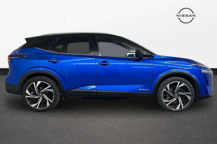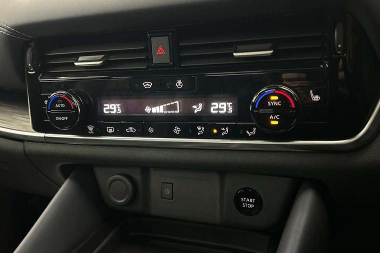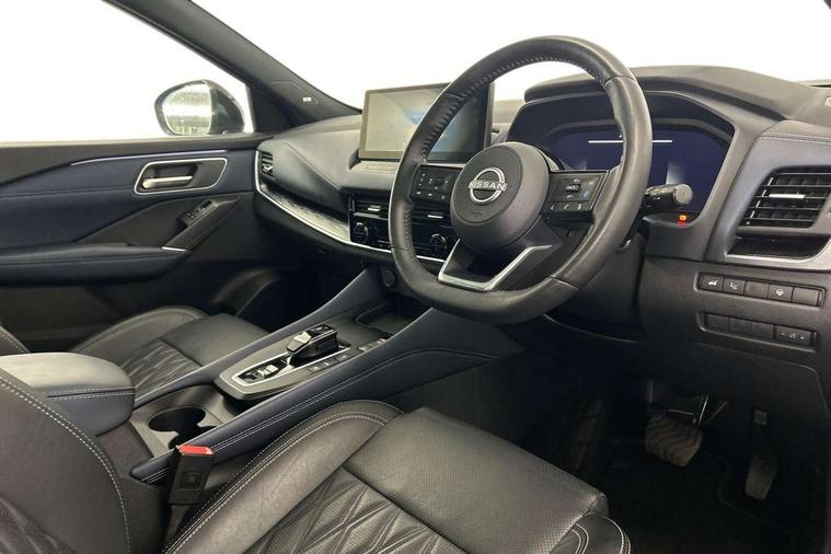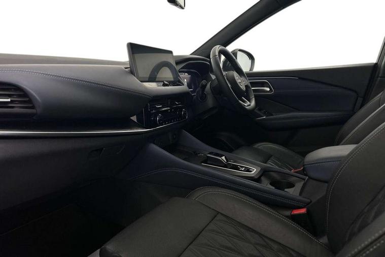Advanced windscreen head up display, Android auto/Apple CarPlay (Wired), Blind spot warning, Drive modes (sport, normal, eco), Electric speed sensitive power steering, Emergency and breakdown call, Front and rear parking sensors, Full Digital 12.3" TFT Digital Combimeter, Google maps services - search, weather, 3D maps and Google street view, Hands free power tailgate, Idle stop/start system, Intelligent around view monitor, Intelligent Cruise control (ICC), Intelligent driver alert system, Intelligent forward collision warning, Intelligent lane intervention, Lane departure prevention, Lane departure warning system, Lane keep assist, Moving object detection, Nissan connect 12.3 inch touchscreen infotainment system, Nissan connect navigation, Pro pilot park assist, ProPILOT with Navi-Link, Push button starter, Rear cross traffic alert, Rear view camera, Remote control services - door locks, lights, horn and car locator, Telematics - notifications and connectivity services, TomTom live traffic services, Traffic sign recognition with legal speed adjustment, Trip computer, Virtual personal assistant and firmware over the air capability, Wireless apple carplay, Wireless charging pad, 10 Bose speakers - 2 tweeters, 6 high and medium frequency door speakers and 2 in subwoofer, AM/FM audio system with DAB, Bluetooth audio streaming, Bose acoustimass bass box, Digital amplifier, Front USB connections (Type-A and Type-C), Rear USB charging only ports (Type-A and Type-C), Auto dimming rear view mirror, Auto rear wiper when reversing, Automatic hazard signal with emergency stop signal, Body colour mirror caps, Body coloured door handles, Bodyside mouldings, Chrome side window finisher, Door handle with button, Door mirror memory, e-POWER badging, Electric auto folding door mirrors, Electrically adjustable and heated door mirrors with LED turn indicator, Follow me home headlights, Front and rear LED turning signals, Headlights auto levelling system, Intelligent auto headlights, LED daytime running lights, LED front fog lights, LED headlights with adaptive driving beam, LED rear lights, One touch front and rear electric windows with remote opening and closing, Privacy glass, Rear bumper with graphite insert, Rear reversing light (bulb lighting), Rear roof spoiler, Rear side wing doors, Rear styling plate, Reverse tilting door mirrors, Shark fin antenna, Splash free rain sensing wipers, Super UV and infrared cut glass, Thermaclear heated windscreen, Three blink turn signal, 12v power socket in dashboard and luggage, 2x Rear coat hooks, 3 bench rear seats in 2nd row, 3 rear headrests, 4 folding assist grip, 6 Luggage hooks - 4 on floor, 2 on side, 60/40 split folding rear seat bench, Ambient lighting around centre console, Ambient lighting in front doors, Centre console storage tray, Chrome interior door handles, Dark black/blueish PVC wrapping, Dark headlining, Driver and front passenger sunvisors with illuminated vanity mirrors, Driver seat back pocket, Dual zone automatic climate control with pollen filter, e-POWER shifter, Electric 4-way lumbar support for drivers seat, Electric adjustable 4 way lumbar support for passenger seat, Electrically adjustable driver seat with massage and memory functions, Front and rear door storage, Front centre console and armrest, Front cupholders x 2, Front door with bottle holders, Glovebox with light, Hard trunk cover, Heated front seats, Heated steering wheel, Height adjustable driver's seat, Height adjustable front headrests, Height adjustable passenger seat, Leather steering wheel, Luggage board system, Luggage space lighting, Manually adjustable passenger (slide recline + lifter), Multifunction steering wheel, Passenger seat back pocket, Quilted premium leather upholstery, Rear armrest with 2 cupholders, Rear door bottle holders, Single front passenger seat, Soft PVC kneepad, Steering wheel switches, Tilt/telescopic adjustable steering wheel, Two rear isofix child seat anchorage points with top tether, Welcome light and doors with console tray ambient lighting, Glass roof pack with roof rails - Qashqai, 3x3 point rear seatbelt pretensioners + load limiters, ABS with EBD and brake assist, Active brake limited slip, Auto hold function, Child locks on rear doors, Curtain and front side, far side airbags, Driver and passenger airbags, Driver, passenger and 2nd row rear seat belt reminder, Electronic parking brake, Front seatbelt pretensioners + load limiters, Height adjustable front seatbelts, Hill start assist, Intelligent blind spot intervention, Intelligent front emergency braking with pedestrian, cyclist recognition and junction assist, Intelligent rear automatic braking, Tyre pressure monitoring system, Vehicle dynamic control, Advance intelligent key with driver memory storage (seats, mirrors, audio), Capless fuel filler, Engine immobiliser, Remote central door locking with deadlocking, Thatcham Cat.1 alarm, Interior instrumental panel C finisher, 20" Diamond cut alloy wheels, Tyre puncture repair kit,