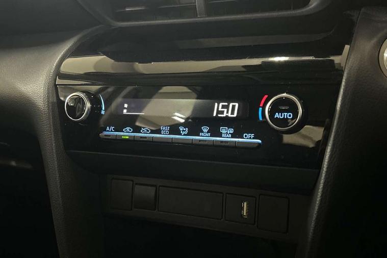 4.2" multi information display, 8" Toyota touch 2 multimedia system with Smartphone integration with Apple CarPlay and Android auto, Adjustable speed limiter, Bluetooth connectivity, Digital speedometer, Driver attention alert system, eCall emergency system, Electric power steering, Full range intelligent adaptive cruise control, Hybrid system indicator, Key reminder warning, Lane trace assist, Multimedia, audio, telephone and voice recognition switches on steering wheel, My T Connected services, Pre-collision system enhanced with emergency steering assist, Reversing camera, Road sign assist - RSA, Steering assisted vehicle stability control, 6 speakers, DAB Digital radio, USB connection, 3rd brake light, Acoustic windscreen glass, Anti-jam protection on power windows, Auto high beam [AHB] with on/off switch, Automatic headlights, Black lower front grille, Black Shark-fin antenna, Black upper front grille, Black wheel arch mouldings, Body colour door handles, Body colour front bumper, Body colour rear bumper, Electric adjustable heated door mirrors, Follow me home headlights, Front and rear electric windows with auto up/down function, Front intermittent wipers, Halogen projector headlights, Headlight cut off reminder, Indicators integrated on door mirrors, Intermittent rear wiper, LED daytime running lights, LED Indicators, Manual headlight levelling, Manually retractable door mirrors, Noise reduction layer on windscreen, Rain sensor, Rear side wing doors, Rear spoiler, Rear window defogger, 12v power outlet - front, 2x Rear coat hooks, 3 seat bench in 2nd row, 3 spoke leather steering wheel, 60/40 split folding rear seat, Adjustable speed limiter switch on steering wheel, Auto air conditioning, Boot light, Central armrest, Driver and front passenger personal lights, Fabric door trim, Fabric upholstery, Front console box, Front cup holders, Front head restraints, Glovebox, Grey roof lining, Height adjustable driver's seat, Height adjustable front passenger seat, ISOFIX child restraint system, Lane departure alert switch on steering control, Leather gearshift, Manual telescopic and tilting steering wheel, Mirror on driver and passenger sun visor, Pollen air filter, Rear head restraints, Single front passenger seat, Soft tonneau cover, 3x3 point rear seat belts, ABS+EBD+Brake assist, Driver and passenger central airbags, Driver and passenger front airbags, Driver and passenger side airbags, Electronic parking brake, Emergency brake light system (EBS), Front seat belt reminder, Hill start assist control (HAC), Passenger airbag on/off switch, Pre-collision system with pedestrian and cyclist detection, Rear door child safety locks, Rear passenger side airbags, Rear seat belt reminder, Traction control, Tyre pressure warning system, Immobiliser, Intrusion alarm, Keyless smart entry with push button start, Power door locks, Power passenger window lock, Remote door lock, 16" 10 spoke alloy wheels, Tyre repair kit,