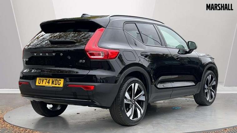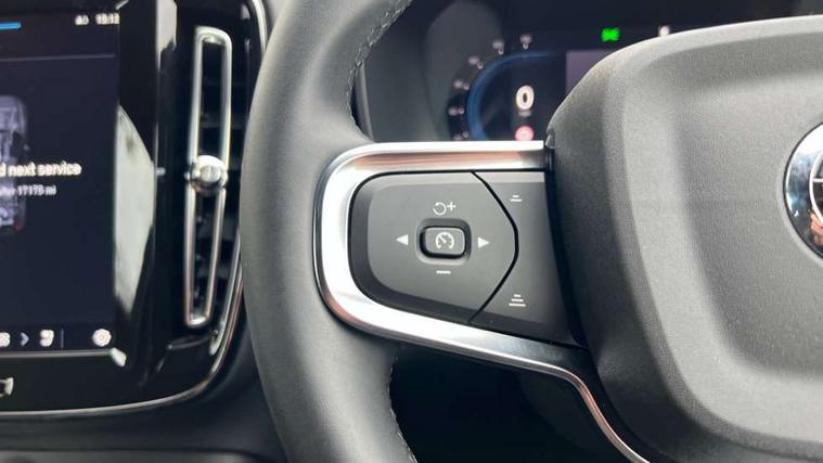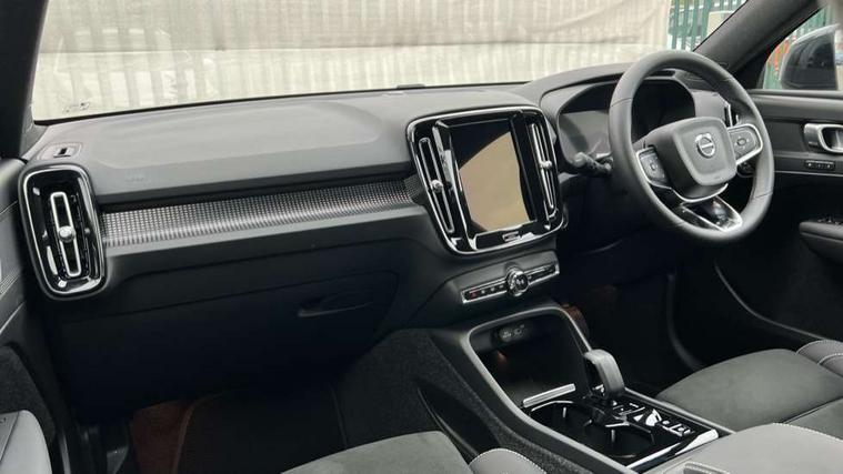 12.3" Progressive Driver Display, 9" centre console portrait touch screen, Adjustable steering wheel force, Apple carplay (wired), Bluetooth handsfree system, Cruise control, Driver alert control, Driver awareness - Blind spot information system with steer assist, cross traffic alert with autobrake and rear collision warning and mitigation, E-call, Front park assist, Google automotive services - Enabled entertainment apps, navigation with google maps, voice recognition with google assistant, Hands free power tailgate, Intelligent speed assistance, Lane keeping aid, Oncoming Lane Mitigation, Rear park assist, Rear park assist camera, Speed sensitive steering, Volvo cars services with app - Driving journal, emergency and breakdown call, engine remote start, remote door locking/unlocking and vehicle dashboard, Wireless/Inductive Mobile Phone Charging, Automatic transmission with start/stop and manual change functions, Dynamic chassis, DAB Digital radio, High performance sound, 8 speakers/250W, 2 front type C and 2 rear type C USB, Steering wheel mounted remote controls, Adaptive brake lights with high level LED brake lights, Auto dimming feature for exterior door mirrors, Auto dimming interior mirror, Automatic headlamp levelling, Automatic LED Headlights + Active high beam incorporating daytime running lights, Front aluminium tread plates, Front and rear electric windows, High gloss black front and rear skid plate, High gloss black front bumper deco, High gloss black mesh front grille with high gloss black surround, High gloss black window trim, Home safe and approach lighting, Integrated roof rails in high gloss black, LED front fog lights, Puddle lights, Rain sensor with automatic windscreen wiper activation, Rear side wing doors, Rear wiper, Roof antenna, Roof spoiler, Visible VIN plate, 12V socket in front tunnel console and luggage compartment, 2-Zone electronic climate control with CleanZone air quality system and pollen filter, 3 seat bench in 2nd row, 3 Spoke tailored steering wheel with chrome trim, 60/40 versatile split folding rear seat, A-pillar parking ticket holder, Centre console cupholders and storage, Charcoal headlining, Connect textile/microtech upholstery, Flexible load floor and grocery bag holder, Floor mats, Front cabin courtesy lights, Front door pocket, front cupholder, ambient front door, rear reading, rear courtesy, instrument panel and tailgate lighting, Front footwell illumination, Front headrests, Front reading lights, Front seat cushion extensions, Front side step illumination (under door), Glovebox bag hook, Heated front seats, Height adjustable passenger seat, Height/reach adjustable steering column, High gloss centre tunnel deco, Illuminated glovebox, Illuminated luggage compartment, Illuminated vanity mirrors + ticket holder, Integrated waste bin, Isofix attachments on outer rear seats, Load cover, Load protection net, Multi directional lumbar support for driver and passenger seat, Power driver seat with memory + exterior mirrors memory, Rear armrest with cupholders, Rear headrests, Single front passenger seat, Underfloor cargo storage, Climate pack without heated front seats - XC40, 3x3 point rear seatbelts, City safety with steering support with Pedestrian + cyclist + front collision warning with full auto brake and rear auto brake, Driver and passenger airbags, Drivers knee airbag, Electronic parking brake with auto hold, First aid kit, Front and outer rear seatbelt reminder and pretensioners, Front seats SIPS airbags, Hill descent control, Hill start assist, Inflatable curtain, Passenger airbag cut-off device, Power child locks on rear doors, Road sign information display, Run off Road Protection, SIPS (Side Impact Protection System), Slippery road and hazard light alert, Stability and Traction Control with Spin control, Engine Drag Control and Corner Traction Control, Tyre pressure monitoring system, Vehicle deceleration control with Anti-lock Brake System, Electronic Brake Distribution and Emergency Brake Assist, Warning triangle, WHIPS whiplash protection system - front, 2 x Key integrated remote control central locking including with deadlocking system and auto open/close windows, Anti-theft alarm including immobiliser/volume sensor + level sensor, Keyless drive includes keyless entry and keyless start, Locking wheel nuts,