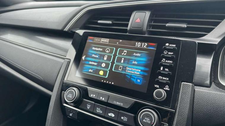 7" touch screen, Adaptive cruise control, Adaptive motion for electric power steering, Apple car play/Android Auto, BLIS (Blind Spot Information System) with dual power heated blind spot mirrors, Blue dashboard illumination, Bluetooth hands free telephone connection, Easy fuel capless refuelling system, Economy mode, Electric power steering wheel with variable gear ratio steering, Emergency stop signalling system, Forward collision warning, Front and rear parking sensors, Honda CONNECT with GARMN Navigation + 7" touchscreen, AM/FM, internet radio, aha app integration and internet browsing, Idle stop, Intelligent speed limiter, Lane departure warning system, Lane keep assist, Low speed following, Multi-information display, Rear parking camera, Road departure mitigation, Smartphone wireless charging plate, Traffic sign recognition, Adaptive damping system, Vehicle stability assist, 'Shark fin' mobile antenna, 11 speakers, 2x USB and HDMI, 465w Power audio system, Auxiliary socket for external MP3 player, Digital Audio Broadcast (DAB) Tuner, Premium audio system, Steering wheel mounted audio controls, Auto dimming rear view mirror, Automatic coming/leaving home lighting function, Automatic headlights with dusk sensor, Automatic rain sensing wipers, Black grille, Body colour door handles, Body colour door mirrors, Body coloured bumpers, Chrome window surround, Electric adjustable heated door mirrors, Electric front/rear windows/one touch operation, Electrically folding door mirrors, Fuel filler cap, Headlight washers, High beam assist, LED daytime running lights, LED front fog lights, LED Headlights, LED rear lights, Panorama glass roof, Power foldback door mirrors, Privacy glass, Rear spoiler, Rear wiper, Single exhaust tailpipe, 4 Cargo net hook, 60/40 split folding rear seat, Alloy pedals, Ambient light in roof, Blue meter illumination, Centre console storage and sliding armrest, Driver and front passenger seat electric lumbar adjustment, Driver's seat height adjustment, Driver/passenger front seatback pockets, Dual climate control air conditioning system, Front accessory power socket, Front map lights, Front/rear courtesy lights, Gear shift indicator, Glovebox light, Heated front seats, Heated rear seats, Isofix points, Isofix system on outer rear seats, Leather gear knob, Leather steering wheel, Leather upholstery, Luggage floor box, Paddle shift controls, Rear accessory power socket, Rear air vents, Rear armrest with cupholder, Shift indicator lighting (SIL), Sunvisors with illuminated vanity mirrors, Three height adjustable rear head restraints, Tilt/telescopic adjustable steering wheel, Tonneau cover, Trunk light, 5 three point seatbelts, ABS+EBD+Brake assist, Airbags - driver and front passenger, Anti-whiplash front headrests, Collision mitigation braking system, Deflation detection system, Driver SRS airbag (single stage inflation), Electronic parking brake with auto hold, Front and rear curtain airbags, Front and rear seat belts with emergency locking retractor (ELR), Front seatbelt pretensioners, Front side airbags, Hill start assist, Low speed safety system, Passenger airbag deactivate switch, Tyre pressure warning, Immobiliser, Mirrors and windows key fob, Security alarm, Selectable door unlock, Smart entry + Smart start, Superlocking, Ultrasonic security sensor, Black instrument panel, 17" Grey alloy wheels, Tyre repair kit,