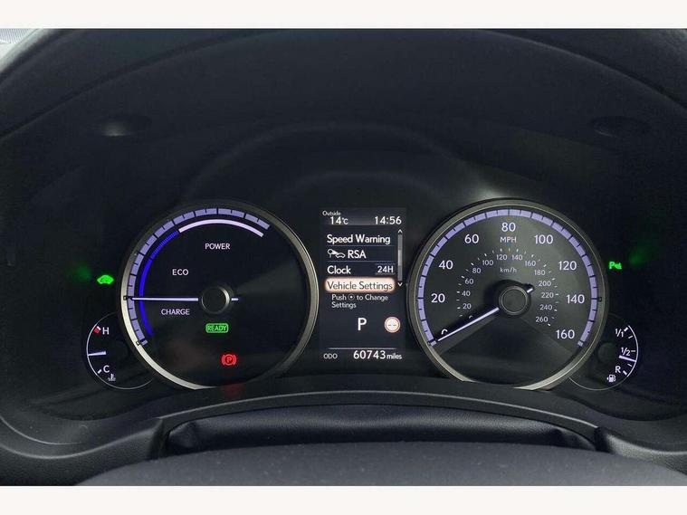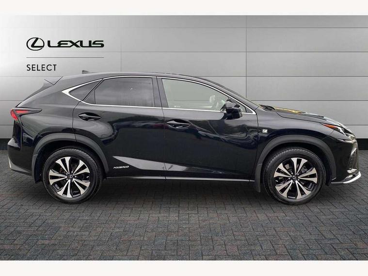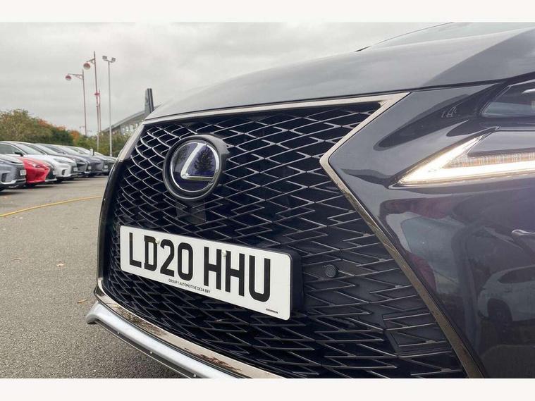 10.3" Colour screen, 10.3" Lexus navigation, 4 driving modes EV/Eco/Normal/Sport, Adaptive cruise control + pre-crash system, Analogue clock, Bluetooth telephone connectivity, Electric speed sensitive power steering, Front and rear parking sensors, Full European map, Lane change flasher function, Lane tracking assist - LTA, Parking assist sensor, Powered tailgate, Push button starter, Remote touch interface, Reversing camera, Wireless Smartphone charger, Performance dampers, Sports suspension, VDIM, Vehicle Stability Control (VSC), 10 speakers, 2 USB ports, AUX socket with VTR compatibility, DAB Digital radio, DVD System, 3 beam LED headlights with AHS, Adaptive high beam assist, Auto dimming interior rear view mirror, F SPORT exterior styling, Headlight cleaners, Heated, auto-folding, auto-dimming outside mirrors with memory function, reverse tilt function, turn indicators and puddle light, Hidden exhaust pipe, Illuminated door handles, LED brake lights and rear lights with emergency brake signal, LED daytime running lights, LED fog and cornering lights, LED front and rear sequential indicators, One touch electric front/rear windows with pinch protection, Power back door system, Privacy glass, rear doors and tailgate, Rain sensor windscreen wipers, Roof rails, 12V socket in centre console and luggage area, 2 cupholders in front centre console, 2 map pockets in the rear, 2 way electrical lumbar adjustment for driver, 2 x fixed shopping bag hooks in boot, 2 x sun visors with vanity mirror and lamp, 6 tie down hooks in boot, 8 way driver/passenger electrically adjustable front seats, Active sound control, Adjustable height seatbelt anchor, Adjustable rear seat backrest, Card holder installed in driver and passengers sun visors, Centre armrest with storage box, Dual climate control air conditioning system, F Sport aluminium sports pedals, F SPORT leather gearlever, F SPORT seats - Leather upholstery, F-Sport leather steering wheel with paddle shift, Forward/rearward headrest adjustment (27 mm), Front and rear head restraints, Front and rear textile carpet mats, Heated front seats, Heated steering wheel, LED interior illumination, Lexus safety system +, Rear air vents, Rear centre armrest with 2 cupholders, Whiplash Injury Lessening (WIL) feature (active headrest) for seats, 2 x Isofix child rear seat restraints, 3 point ELR front and rear seatbelts with pretensioners, ABS, Adjustable seat belt anchor points, Driver/Front Passenger airbags, Driver/front passenger side airbags, Drivers knee airbag, EBD + Brake Assist, ECB (Electronically Controlled Brake System), Electronic parking brake, Front and rear curtain shield airbags, Front passenger seat cushion airbag, Hill start assist, Passenger airbag cut-off device, Traction control, Tyre pressure warning, 2 x remote key fobs, Anti-theft system with siren, alarm, intrusion sensor, glass breakage sensor, tilt sensor and engine immobiliser, Locking wheel nuts, Smart entry, Speed sensitive auto door locking, Two motion door lock with double lock, VIN Window etching, Carbon interior trim, Space saver spare wheel,