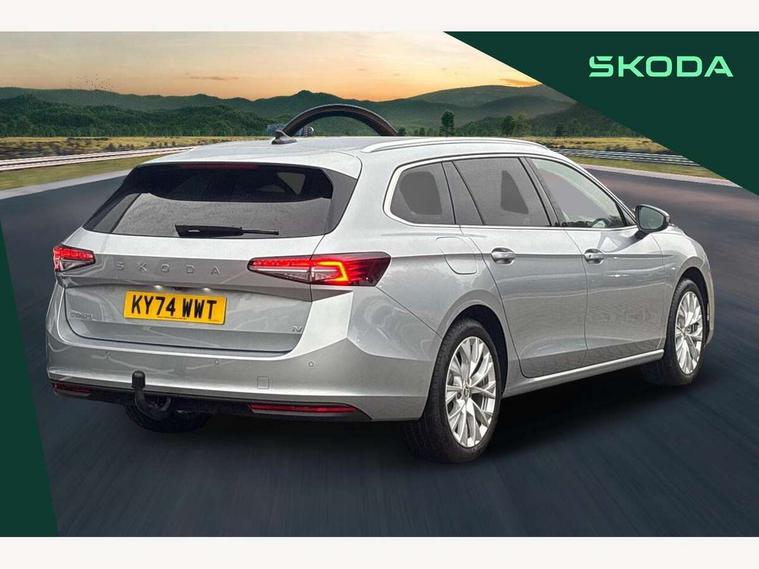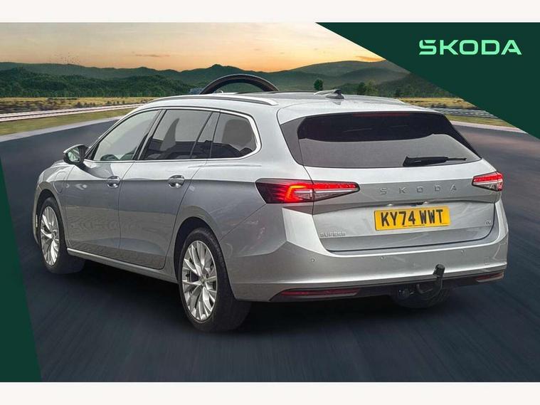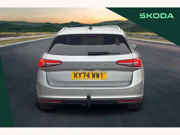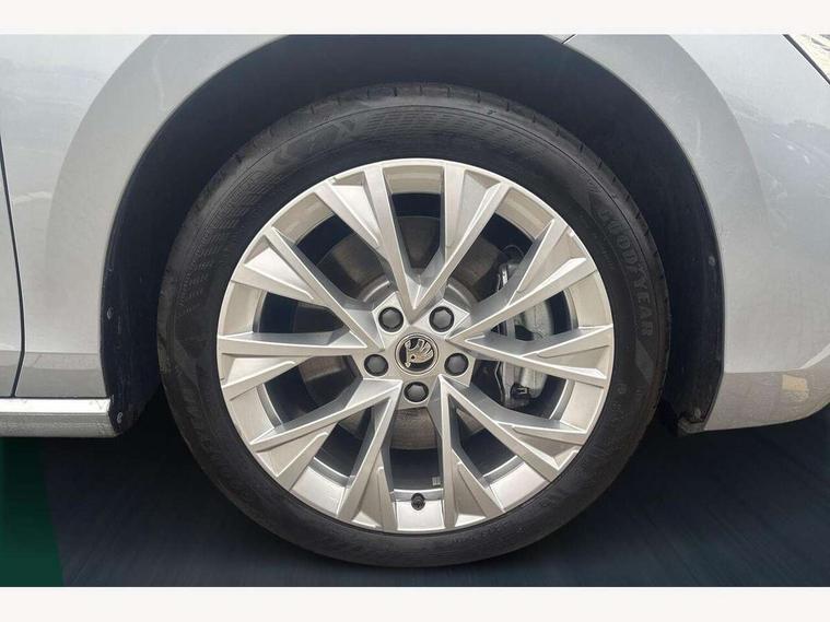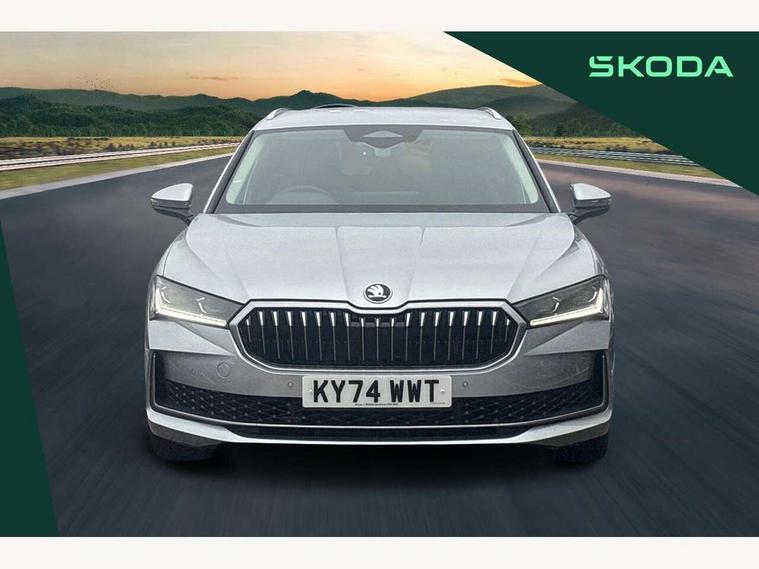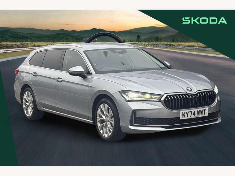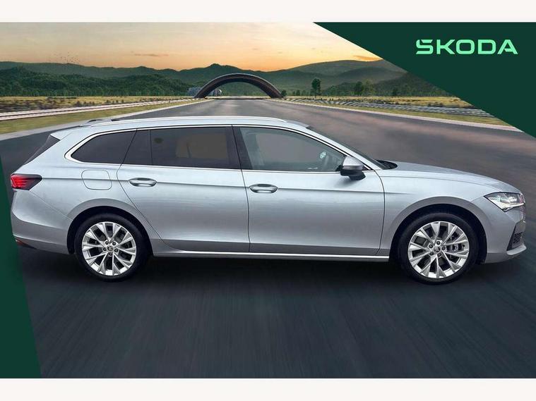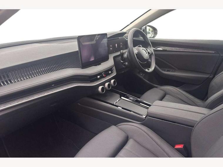 13" touchscreen display with satellite navigation, 4x USB-C ports (2x in front centre console and 2x in rear) (45W), Adaptive cruise control with speed assist, lane assist plus and traffic tram assist, Blind spot detection with door exit warning, Bluetooth system, CareConnect and Emergency Call, ChatGPT functionality, Drive mode selection, Driver fatigue sensor, Electrically operated boot with virtual pedal, Front assist with extended predictive pedestrian protection, Front cross traffic assist, PAS, Quick start all heating software functionality, Rear view camera with washer, Stop/start engine system, Traffic sign recognition, Turn assist with evasive assistance, Virtual Cockpit - 10.25" digital display, Voice control system, Wireless charging for one smartphone (15W) with cooling function, Wireless smartlink apple carplay, SmartLink+ android auto, DAB Digital radio, Display cleaner, FM radio connection, Web radio connection, Acoustic side windows and interior noise suppression, Backdrop lighting, Body colour door handles, Body coloured door mirrors, Chrome roof rails, Chrome window surround, Dynamic range control with poor weather light and integrated fog light, Electrically adjustable, heated, folding and driver side auto-dimming door mirrors with memory function, integrated indicators and logo projection, Frameless auto-dimming rear view mirror with USB-C, Front windscreen with heat-insulating glass, Ice scraper in fuel tank cap, LED 3rd brake light, Light assist with High beam control, Light assistant (coming/leaving home/tunnel light), Privacy glass, Rear fog lights (x2), Rear roof spoiler, Rear side wing doors, Rear windscreen wiper, Tow bar preparation, Unique dark chrome grille surround with dark chrome rib elements, Windscreen wipers with rain sensor, 12V socket 1x centre console 1x boot, 12V socket and 2x cargo elements in boot, 14-way electrically adjustable, memory, front seats with 4-way pneumatic lumbar support, and extendable thigh support with smart comfort entry aid, 2 spoke multifunction steering wheel with DSG paddles, 3 seat bench in 2nd row, 4x foldable bag hooks in boot, 60:40 Split folding rear seats, Advanced massage function for front seats, Bottle holders in the front doors 1.5 litre bottle and rear 1.5 litre bottle, Cup holder in front with easy open mat, Front and rear footwell illumination, Front armrest with storage box, Front sports comfort seats, Heated and ventilated front seats, Height adjustable front and rear head restraints, Height adjustable front passenger seat, Illuminated glovebox, Interior lights with control switches, Isofix child seat fittings in outer rear and front passenger seats, LED front and rear reading lights, Multi colour ambient lighting, Single front passenger seat, Storage pockets on back of front seats, Sun visors with illuminated vanity mirrors, Ticket holder on A Pillar, Tri zone climate control, Umbrella in driver's door, Light and view package - Superb, Transport package - Superb Estate, 3 rear seatbelts, 8 Airbags - Front driver and passenger, front side driver and passenger, centre, curtain front and rear, drivers knee, Crew protect assist, Driver and passenger seatbelts with warning light, Electronic parking brake, ESC including ABS, EBV, MSR, ASR, EDS, HBA, DSR, RBS, CBC, multi-collision brake (MKB) and Auto hold, Hill hold assist, Power operated child lock in rear doors, Alarm with interior monitoring tilt sensor and back up horn, Backrest remote release from trunk, Electronic engine immobiliser, Keyless start/stop, Remote central locking with SAFE system, Third key, Walk away locking, Decorative front door sills, Tyre repair kit,
