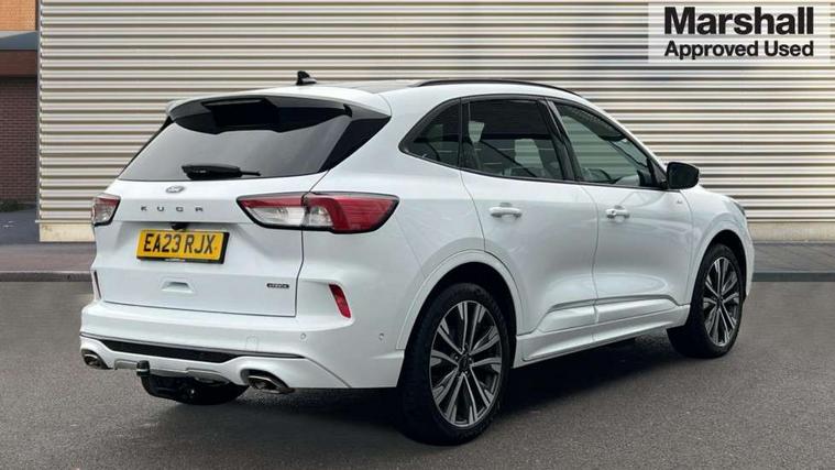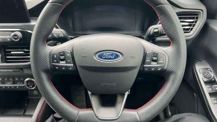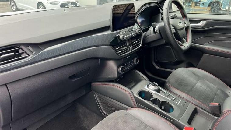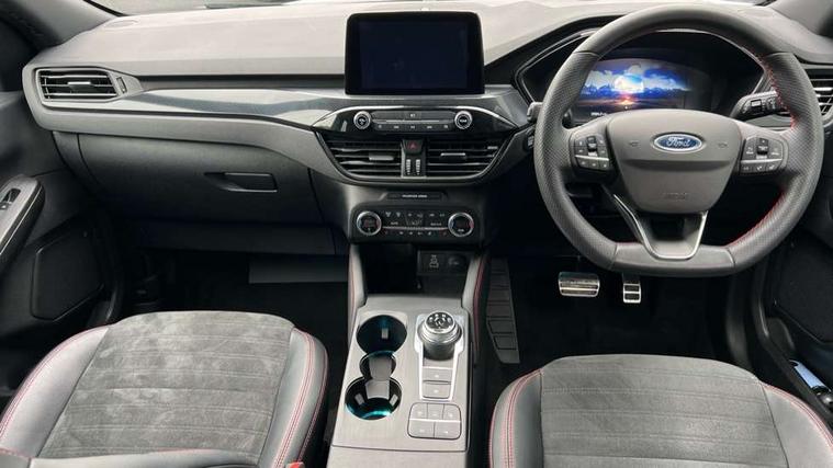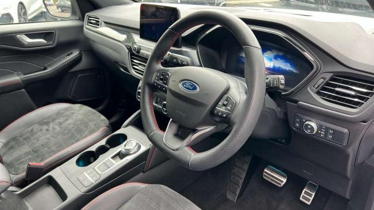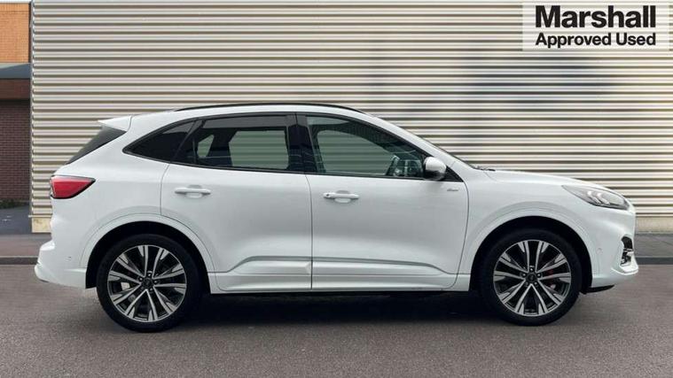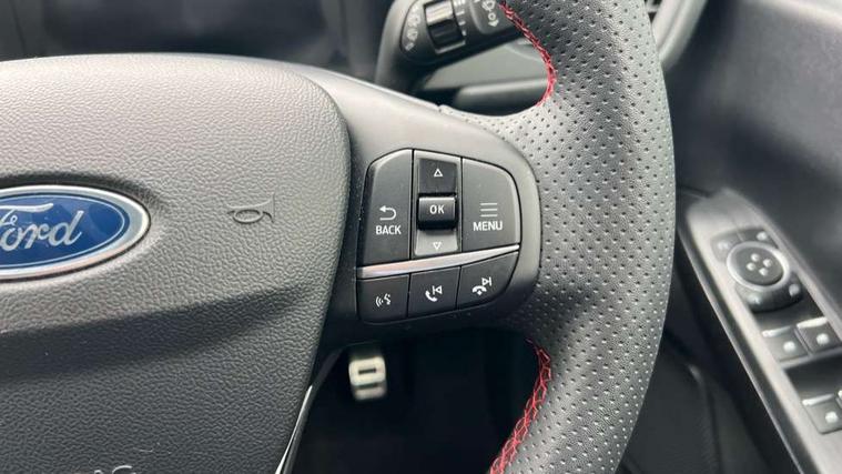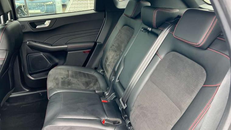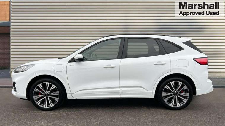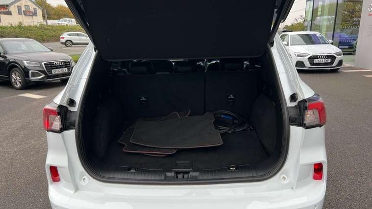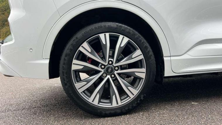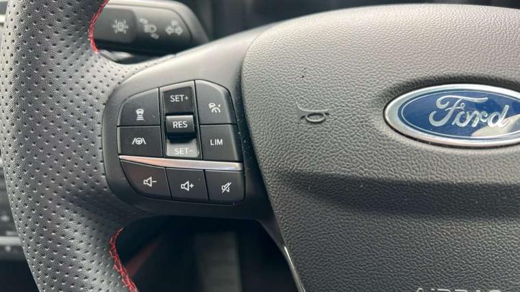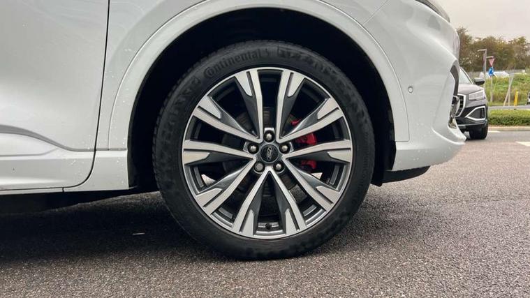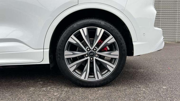 12.3" digital colour instrument cluster, Ford easy fuel, Ford SYNC 3 with 8" TFT LCD touchscreen, App Link, andriod auto/apple carPlay, emergency assistance and navigation with Ford pass connect, Front and rear parking sensors, Geo awareness, Hands free power tailgate, Lane keeping aid with lane departure warning, Power assist steering, Rear view camera, Selectable drive modes, Service interval indicator, 3-Pin 230V Domestic socket home charging cable, 3.7 kW monophase on board charger, Sports suspension, Twist beam rear suspension, B&O premium audio system with 10 speakers and subwoofer, 2 USB ports, DAB radio/CD, Auto headlamps with high and low beam, Black roof rails, Day/night rear view mirror, Front LED fog lamps, Large rear spoiler, LED daytime running lights, LED rear lights, Power folding heated door mirrors with puddle lights, Power front/rear windows with global close, Power opening panoramic roof, Privacy glass, Quickclear heated windscreen, Rear side wing doors, Rear wiper, ST Line body styling kit with unique front and rear fascia and bumper, rear painted diffuser, front painted skid plates, dark mesh upper grille, ST Line front scuff plates, Third brake light, Twin exhausts, 10 way power adjustable drivers seat, 2nd row sliding seats with 60:40 split, 8 way manual passenger seat including lumbar support and height adjust, Alloy pedals, Centre console with electronic parking brake, Dark headlining and pillars, Electronic automatic temperature control (EATC), Flat bottomed leather steering wheel in sensico with red stitching, Front and rear head restraints, Heated passenger and driver seats, Heated rear seats, Heated steering wheel, Partial premium touch sensico leather upholstery with black cloth inserts and red stitching, Rear charging point, Single front passenger seat, Sports seats, ST Line front and rear floor mats, 3x3 point rear seatbelts, Airbags - front driver/passenger, front and rear curtain, Drivers knee airbag, Electronic stability control (ESC) and ABS, Ford MyKey Gen 2 safety system, Manual child proof rear door locks, Post collision braking, Pre collision assist with autonomous emergency braking, Rear seat Occupancy alert, Red brake calipers, Tyre pressure monitoring system, Engine immobiliser, Keyless entry and Ford power start button, Locking wheel nuts, Remote powered central double locking doors, Thatcham category 1 alarm,