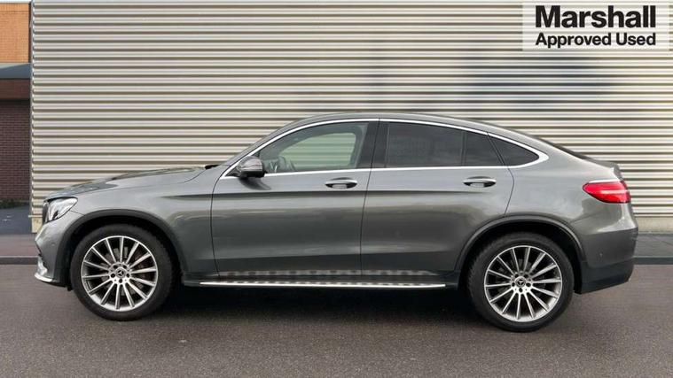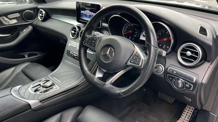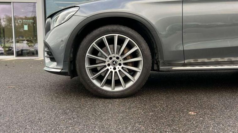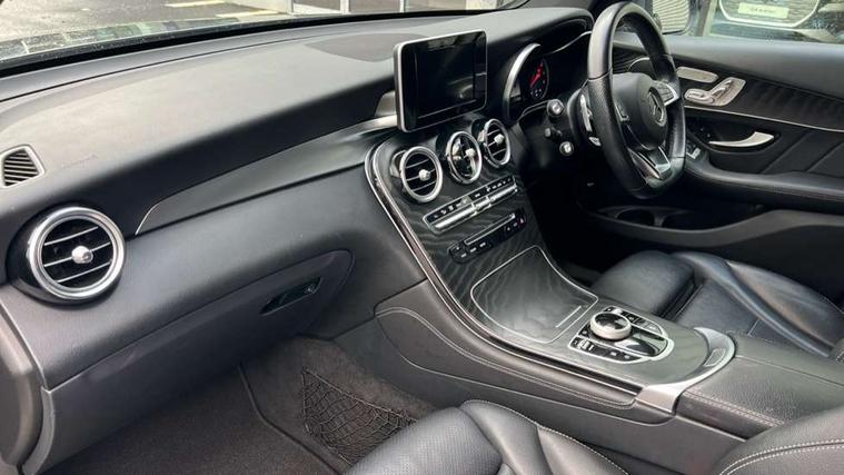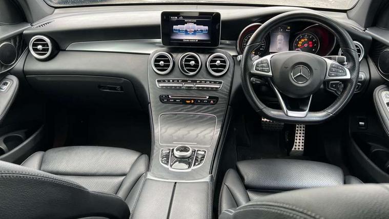 7" colour screen, Active park assist with parktronic system, Attention assist, Bluetooth interface for hands free telephone, Collision prevention assist plus, Crosswind Assist, DYNAMIC SELECT with a choice of driving modes (ECO, Comfort, Sport, Sport+ and Individual), Garmin Map Pilot navigation system with SD card, touchpad and voice control, Instrument cluster with 5.5-inch TFT multi-function display, Multi function trip computer, Outside temperature gauge, Power opening/closing tailgate, Remote boot release, Service indicator (ASSYST), Speed sensitive steering, 66 litre fuel tank, 5 speakers, DAB Digital radio, Frontbass loudspeakers, Mercedes Audio 20 radio/single CD + telephone keypad, USB connection, Adaptive brake lights, AMG bodystyling, Automatic headlights, Body coloured bumpers, Chrome exterior trim, Electric sliding glass sunroof, Electric windows one touch open/close, Electrically adjustable and heated door mirrors, Exhaust tailpipe finisher, LED daytime running lights, LED rear lamps, Privacy glass (to rear of B post), Rain sensor windscreen wipers, Range adjustable headlights, Rear wiper, Tinted glass all round, 2 cupholders in front centre console, 2 way rear head restraints, 3 spoke flat bottom AMG steering wheel in nappa leather, 4 way adjustable front head restraints, 4 way electric lumbar support for driver and front passenger, 40:20:40 split folding rear seats, Ambient lighting, AMG floor mats, AMG sports seats, Auto Mercedes-Benz child seat recognition sensor, Automatic climate control, Black roof lining, Dividing net - rear, Electric front seat height adjustment, Front armrest with storage box, Front door sills with Mercedes Benz lettering, Gearshift paddles, Heated front seats, Height/reach adjustable steering column, Lockable/illuminated glovebox, Multifunction steering wheel, Rear top tether child seat ISOFIX attachment, Sports pedals with stainless steel surfaces and rubber studs, Sunvisors with illuminated vanity mirrors, Easy-pack load compartment cover, Interior lighting pack - GLC, Memory pack - GLC, Mirror pack - GLC, Storage pack - GLC, 3 rear 3 point seatbelts, ABS with Brake Assist, Active bonnet, Adaptive brake system, Brake calipers with Mercedes-Benz lettering + perforated brake discs, Child proof door locks, Drivers knee airbag, Dual stage driver/passenger airbags, Electronic parking brake, ESP with ASR, Front and rear seatbelt reminder, Front passenger seat occupancy sensor, Front side airbags, Hill hold function, Tyre pressure monitoring system, Warning triangle and first aid kit, Window airbags, Alarm system/interior protection/immobiliser, Automatic door locking, Keyless entry and keyless start, Remote central locking, Tyre inflation kit,