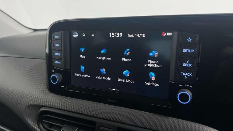 Apple car play/Android Auto, Bluelink mobile remote connectivity, Bluetooth connectivity with voice recognition, Cruise control, Driver attention alert system, eCall emergency call system, Forward Collision-Avoidance Assist (FCA) - Pedestrian/Cyclist, Front USB-C charging and USB-A data, Full-width 4.2" LCD instrument cluster, Intelligent speed limit assist, Lane departure warning system with lane keep assist - LKAS, Lane follow assist, PAS, Rear parking sensors, Rear view camera with guidelines, Roadside assistance, Start/Stop function, Tailgate, Trip computer, 2 front/2 rear speakers, Rear USB-C device charger, Steering wheel audio, phone and cruise controls, 1 speed non intermittent rear windscreen wiper, Black finish on B pillars, Body colour door handles, Body coloured bumpers, Body coloured door mirrors, Electric front windows, Electric rear windows, Electrically adjustable and heated door mirrors, Flat metal emblem, Front grille in matte black, Front intermittent wipers, Halogen daytime running lights, Halogen headlights, Headlights inner with Black Blade design, Heated rear window, High beam assist, Indicator light on door mirrors, Rear roof spoiler with integrated LED brake light, Rear side wing doors, 12v power outlet - front, 3 seat bench in 2nd row, 60/40 split folding flat to floor rear seats, Air conditioning, Auto light control, Bottle holders in front/rear doors + front centre console, Cabin and luggage compartment interior lighting, Cloth upholstery, Driver + passenger vanity mirrors, Driver's seat height adjustment, Driver/passenger sunvisors with ticket holders, Floor mats, Front door pockets, Front Head Restraints - Vertical and Horizontal Adjustment, Glove compartment, Height adjustable steering column, Isofix child seat preparation, Leather multifunction steering wheel, Rear door pockets, Single front passenger seat, Vertical adjustment rear head restraints, 3x3 point rear seatbelts, Airbags - front, front side and curtain airbags, Anti-lock brake system (ABS), Autonomous emergency braking (AEB) with forward collision warning system, Brake assist function, Childproof rear door locks, Electronic stability control, Front and rear seatbelt reminder, Front seatbelt pretensioners, Hill start assist control (HAC), Passenger airbag deactivate switch, Traction control, Tyre pressure monitoring system, Immobiliser, Perimeter alarm, Rear occupant alert, Remote central locking, Second remote key, Speed sensitive auto door locking, 15" Alloy wheels, Tyre repair kit,