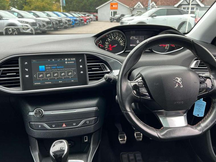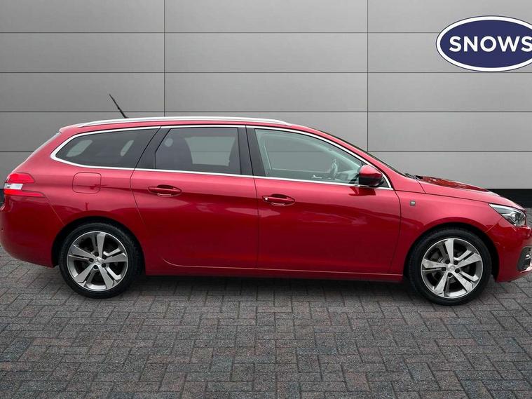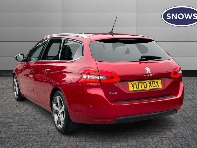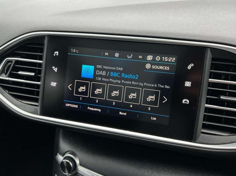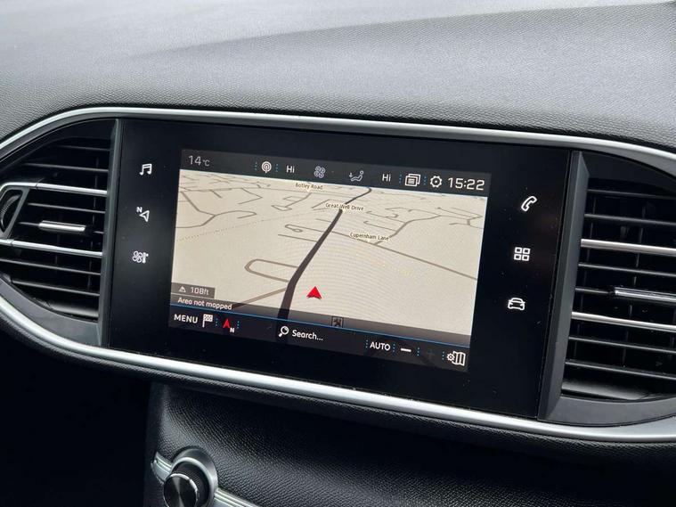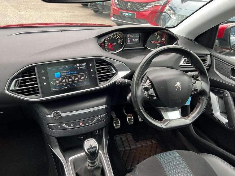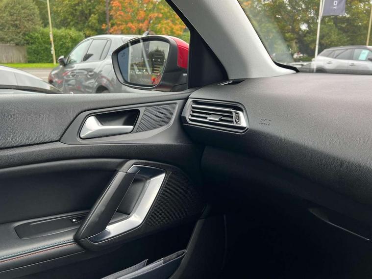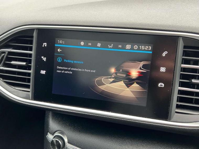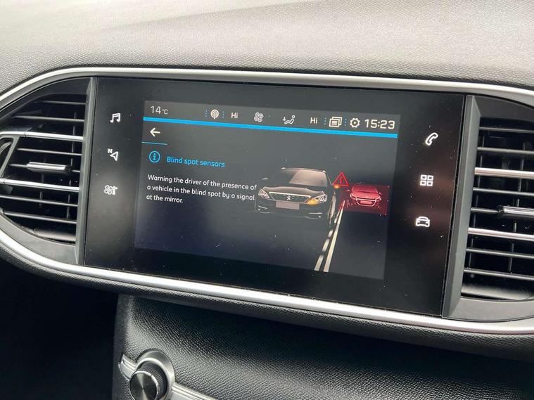 3D connected navigation, 9.7" capacitive touchscreen in centre console, Bluetooth telephone facility, City park enhanced park assist with blind spot monitoring, Exterior temperature indicator with ice warning, Front and rear parking sensors, Mirror screen with mirror link, apple carplay and android auto, Multi function trip computer, Peugeot connect SOS and assistance, Peugeot i-Cockpit with 10" head-up digital instrument panel, Peugeot i-cockpit with compact multi-function steering wheel, Service interval indicator, Visio Park 1 with 180 degree Colour reversing camera, 6 speakers radio with mp3 compatible, DAB Digital radio, Steering column mounted multifunction controls, USB socket, Voice recognition for radio, navigation and telephony features, 2 X Rear number plate lights, Aluminium longitudinal roof bars, Automatic triggered rear windscreen wiper in reverse gear, Body colour door handles, Body colour door mirrors, Body coloured bumpers, Chrome side window trim, Dark tinted Rear side and tailgate windows, Electric front/rear windows with one touch/auto up/down, Electric operated/heated door mirrors, Front windscreen wiper with multi speed setting, Headlights left on audible warning, Heated rear windscreen, LED daytime running lights built into the headlamp unit, Panoramic fixed cielo glass roof with electric interior blind, Power folding door mirrors with courtesy approach lighting, Radiator grille - chrome edge trim and with chrome central, Roof mounted antenna, Side indicator lights integrated into door mirrors, Tonneau cover - retractable with dedicated storage under boot floor, 1/3 to 2/3 folding rear seat with magic flat modularity with controls accessible from the boot, 12V socket, 2x Rear coat hooks, 4 Grab handles retractable and damped, Alcantara/leather upholstery, Aluminium style pedals and door sills, Central front armrest with height and longitudinal adjustment, Cupholders - 2 in rear centre armrest, Door armrests and facia panels trimmed in mistral fabric, Driver and front passenger seat height adjustment, Driver and front passenger seat manual adjustment in longitudinal and back rest angle, Driver seat lumbar adjustment, Dual zone automatic climate control, Fixing rings 4 in load compartment, Front centre console cup holders, Front interior light with 2 reading spotlights and rear interior light with timer, Front seat back map pockets, Gear shift indicator, Illuminated vanity mirrors, Mistral full grain leather steering wheel, Rear armrest with ski flap and two cup holders, Roof lining - light grey, Satin chrome gear lever, Satin chrome interior door handles, Seatbelt not fastened audible and visual alert for front seats, Seatbelt unfastened on the move audible and visual alert for front and rear seats, Seatbelt unfastened warning display, Sports style front seats with elongated cushion bases and increased side support, Safety plus pack with Drive Assist Pack - 308, Visibility pack - 308, 2x Isofix child seat fitting on outer rear seats, 3x Rear three-point retractable seatbelts with force limiters in the outer rear seats, ABS + EBD + EBA, Adaptive driver and front passenger airbags with passenger airbag deactivation function, Child locks on rear doors, Driver/front passenger side airbags, Electronic parking brake + Hill assist, ESP, Front and rear curtain airbags, Front optimised safety headrests and rear retractable headrests (x3), height adjustable, Front three point retractable seatbelts with force limiters, Front/rear disc brakes, Tyre pressure sensor, Automatic door locking, Automatic hazard light activation upon heavy brake application, Deadlocking system, Electronic code immobiliser, Locking wheel bolts, Remote control central locking with two plip keys, Thatcham cat 1 ultrasonic alarm, Satin chrome dash trim, 17" Rubis diamond cut alloy wheels, Steel space saver spare wheel,