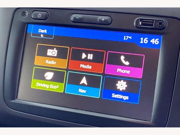 Bluetooth + USB, Cruise control, Eco mode, Front and rear parking sensors, MediaNav 7" touchscreen multimedia system, On board computer, PAS, Rear view camera, Rev counter, Service interval indicator, Stop/start system, Trip computer, DAB Digital radio, 3 speed windscreen wipers, Auto dimming interior mirror, Auto high beam, Body coloured door mirrors, Chrome exhaust tailpipe, Dark finish roof rails, Dark metal add-on on the bumper, Dark tinted windows, Daytime running lights, Electric adjustable/heated/folding door mirrors, Electric front windows, Electric rear windows, Fog lights, Full LED headlights, Heated rear window, Rain sensor, Rear wash/wipe, 3 rear height adjustable headrests, 3 seat rear bench, 60/40 split folding rear seat, Alcantara upholstery, Boot light, Driver seat lumbar adjustment, Driver's seat height adjustment, Front head restraints, Front under seat storage, Gear shift indicator, Heating/ventilation unit with 4 speed fan, Height adjustable armrests on front seats, Height adjustable passenger seat, Height adjustable steering wheel, Isofix on 2nd row outer seats, Leather steering wheel, Manual air conditioning, Rear storage compartment, ABS + EBD + EBA, Child locks on rear doors, Door open warning, Driver/Front Passenger airbags, ESC - Electronic Stability Control + traction control, Front lateral airbags, Front passenger airbag deactivation, Front seatbelt pretensioners, Front seatbelt unfastened audible+visual warnings, Front side airbags, Height adjustable front seatbelts, Rear airbags, Rear seat belt pretensioners, Three 3 point rear seatbelts, Tyre pressure monitor, Automatic door locking, Engine immobiliser, Remote central locking, 16" Cyclade aluminium Alloy wheels,