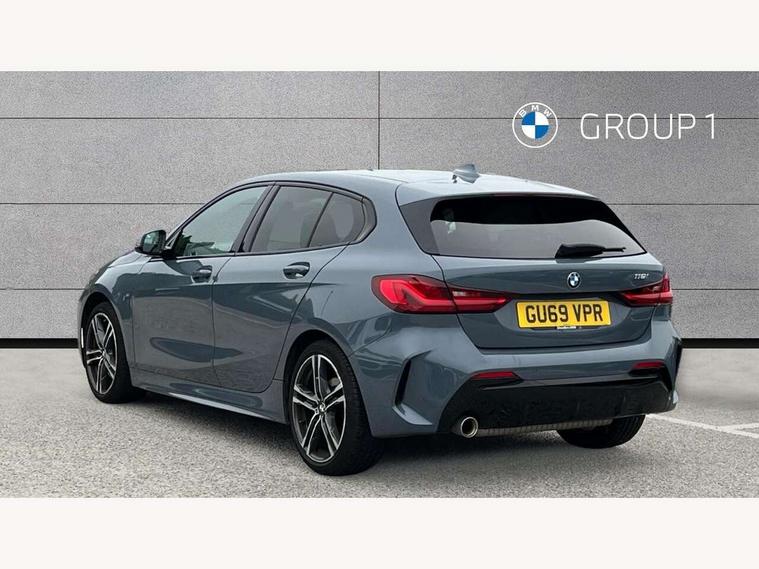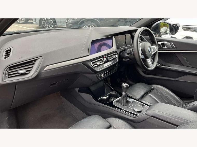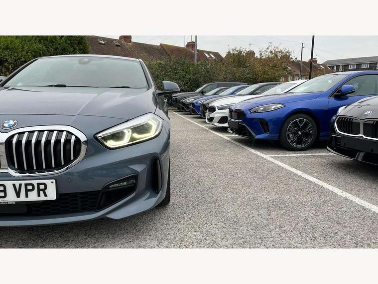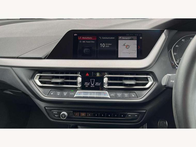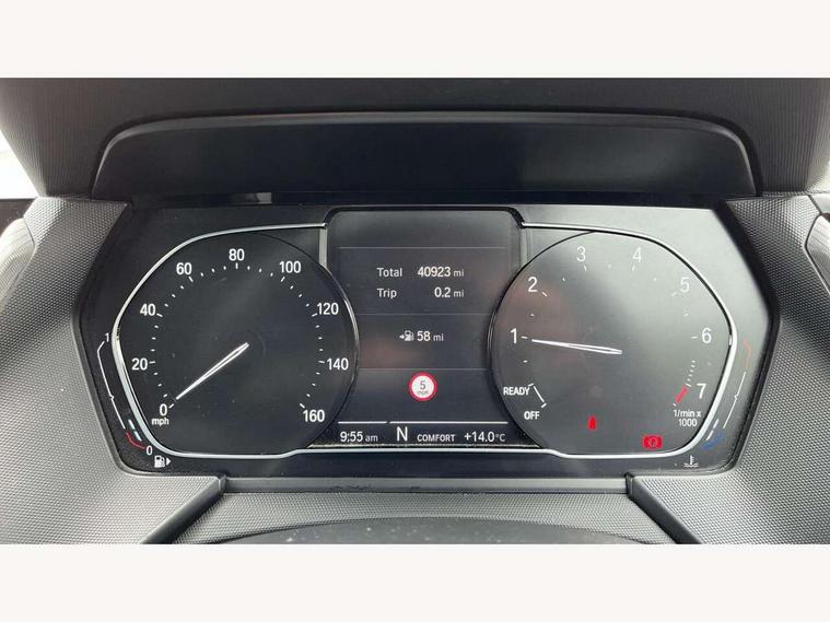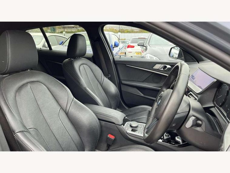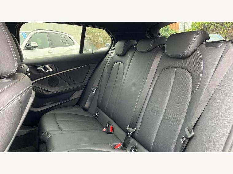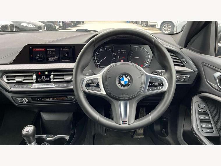 Active guard plus, Attentiveness assist, BMW Online services, BMW Teleservices, Check Control warning system for monitoring of lights and door/luggage compartment open warning, Connected eDrive Services, Cruise control with brake assist, Eco pro mode, Electric power steering, Front/rear Parking distance control, Integrated owners handbook, On board computer, Optimum shift indicator, Personal Profile, Pull away assistant, Speed limiter, Anti roll bar front and rear, Balancer shaft, Double VANOS, Drive Performance Control, Electronic differential lock, M sports suspension + self levelling, Petrol Particulate Filter, VALVETRONIC engine management, Bluetooth audio streaming, DAB Digital radio, Auto dimming rear view mirror, Body colour door handles, Body colour mirror caps, Chrome 'M' logo side designation, Chrome exhaust tailpipe in single, round (Exhaust tailpipe, stainless steel - single, round), Chrome kidney grille frame with Satin Aluminium struts, Direction indicator side lights in exterior mirrors, Electric folding and anti dazzle exterior mirrors, Fading support, Follow me home headlights, Front and rear electric windows with open and close fingertip control, anti trap facility and comfort closing, Front door sill finishers in black plastic with BMW designation, Green tinted heat protection glazing, Headlight beam throw control, High gloss shadow line exterior trim, High level third brake light, LED daytime running lights, LED front fog lights, Lightweight engineering, Matt black air guide grilles, Matt black roof moulding, B pillar finisher and wheel arch trim, Matt black window frame, Model designation on right side of tailgate, Nearside reverse light in rear light cluster, Rain sensor including auto headlights activation, Rear fog lights, Rear window wiper, Shark fin antenna, Visible VIN plate, Welcome lighting, Windscreen wipers with integrated washing jets, 12V power socket in centre console, 2 cupholders in front centre console, 3 rear seat head restraints, 3 Spoke M sports leather steering wheel, Anthracite headlining, Anthracite Velour floor mats, Bag hook in luggage compartment, Child seat ISOFIX attachment for two outer rear seats and front passenger seat with anchorage points, Conditioned based service, Dakota leather upholstery with perforation and contrast stitching, Driver and front passenger seat heating, Driver side folding compartment in instrument panel, Folding rear clothes hook, Folding rear seats, Four grab handles integrated in roof lining, Front and rear door pockets, Front and rear side armrest integrated into door trim, Front armrest foldable with integrated storage compartment, Front sports seats with electric side bolster adjustment, Gearshift lever with M designation, Glove compartment, Height adjustable front head restraints, Manual adjust steering wheel, Multi-function controls for steering wheel, Rear seat backrest with manual 60:40 split folding with 3 top tether clips integrated on rear of seat panels, Storage compartment in centre console, Sun visors with vanity mirrors and insert tab, Two extra lashing eyes in luggage compartment, Two zone automatic air conditioning, Extended Lighting pack - 1 Series, Extended storage pack - 1 Series, Interior lights pack - 1 Series, Luggage compartment pack - 1 Series, M Sport exterior styling aerodynamics pack - 1 Series, 2 tone horn, 3 point seatbelts on all seats, front pyrotechnic belt tensioners, stopper and belt force limiters, rear coded belt buckles, Airbags - Front driver and passenger, front and rear head, front side, curtain head protection, Anti lock braking system (ABS) with brake assist, BMW emergency call, Brake drying, Braking readiness, Crash sensor activating central locking release, hazard warning lights, fuel cut off, interior lighting + activation of safety battery terminal clamp, Driver and front passenger seat belt security check, Dynamic stability control + (DSC+), Dynamic Traction Control - DTC, Electrically operated hand brake, Front passenger manual airbag deactivation, Rear child proof door locks, Seatbelt warning, Side impact protection, Tyre pressure monitoring system, Warning triangle and first aid kit, Automatic drive away locking facility, Central locking switch for all doors, fuel filler cap and luggage compartment, Deadlocking function system to all doors, Locking wheel bolts, Remote control with integrated key with High-gloss Black inlay and M designation and 1 button for open/ close lock, window, open luggage compartment, Start/stop button with comfort go keyless engine start and auto start stop deactivation button, Thatcham Cat.1 alarm and immobiliser, Contrast stitching on instrument panel, Reduced rolling resistance tyres,