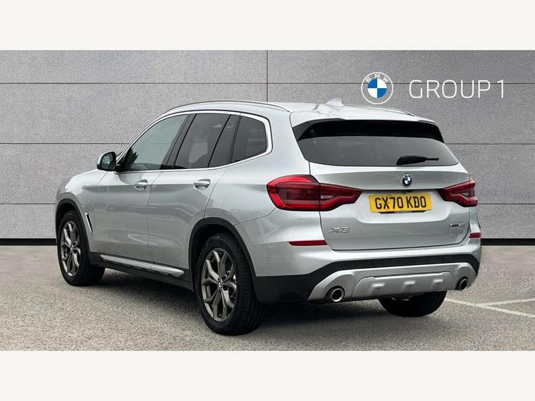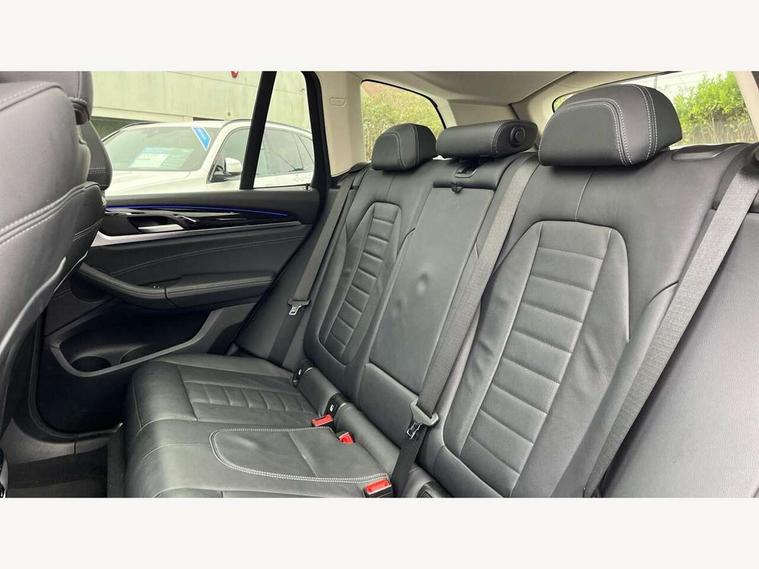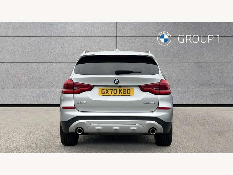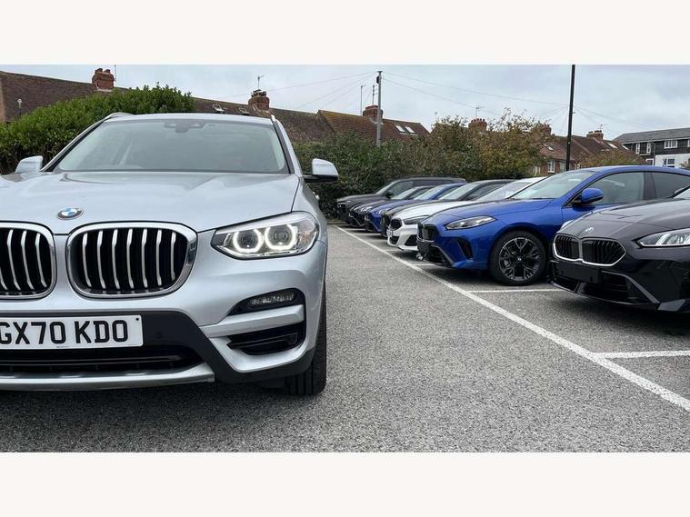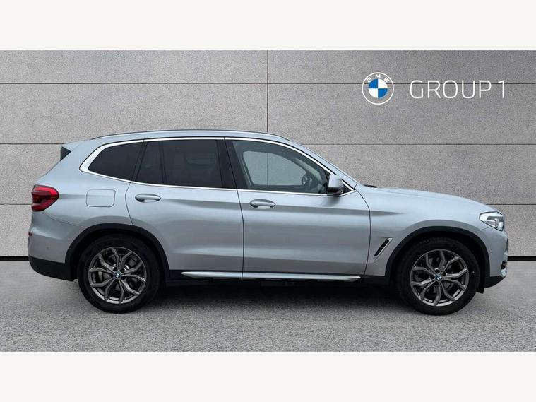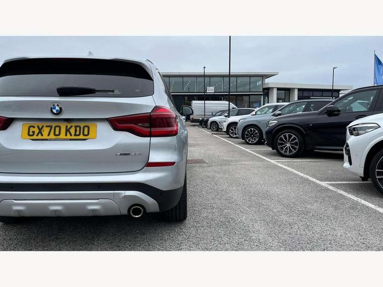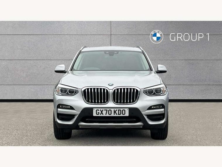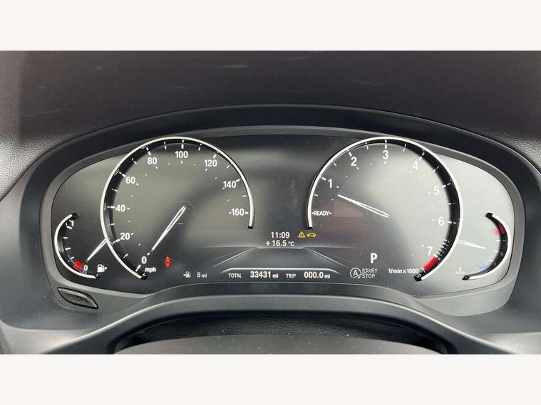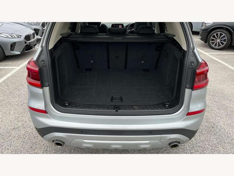 Active Guard incl speed limiting and lane departure functions with auto steering, and front collision warning with brake intervention, Attentiveness assist, Automatic tailgate operation, BMW Live Cockpit Plus with 8.8" central information display + nav function, BMW Online services, BMW Teleservices, Brake pad wear indicator in front and rear, Check Control warning system for monitoring of lights and door/luggage compartment open warning, Control display - 6.5" colour display screen, Electric Power Steering (EPS) with Servotronic, iDrive Controller with 8 favourite buttons, Instrument cluster with speedometer with mph readout, tachometer, fuel gauge and oil temperature gauge, Lights on warning by audio warning signal when ignition is switched off, Oil sensor for level and grade, warning by check control system, On board computer - average speed+fuel consumption, service interval, clock/date, odometer/trip meter, outside temperature display and ice warning, Optimum shift indicator, Personal Profile - automatic lock when driving away selectable, Stop/start system, Automatic transmission with gearshift paddles, Drive performance control with ECO PRO comfort + sport mode, Incorrect fuelling protection, Multi-link rear suspension, 6 speakers, Auxiliary socket for external MP3 player, BMW professional radio/CD/MP3, DAB Digital radio, Acoustic glazing, Black finish on B pillars, Body colour door handles, Body colour electric adjust heated aspherical door mirrors, Body colour roof mouldings, Body coloured bumpers, Chrome kidney grille with matt aluminium vertical slats, Direction indicator, side repeaters, integrated in exterior mirrors, Dual chrome exhaust, Dynamic brake lights, Exterior mirrors - electrically folding with anti-dazzle, Fingertip control / anti-trap function on electric window, Follow me home headlights, Front and rear bumper system with replaceable deformation elements, Front and rear electric windows, Glacier silver metallic matt in side sills, Green tinted heat insulating glass, Heated windscreen washer jets, Height adjustable headlamps, High level 3rd brake light incorporating LED Technology, Interior rear view electrochromatic mirror with automatic anti dazzle function, LED front fog lights, LED tail lights, Lightweight engineering, Matt aluminium roof rails, Model designation, Rain sensor including auto headlights activation, Rear wiper, Shark fin antenna, Visible VIN plate, Welcome lighting, Windscreen wipers with adjustable interval, xLine exterior styling with underbody protection, 12V socket in centre console and luggage area, 3 rear headrests, 3 spoke sports leather multi-function steering wheel, 3 zone automatic air conditioning, 4 lashing points to secure luggage, Ambient lighting, Anthracite Velour floor mats, Driver/passenger sunvisors with ticket holders + illuminated vanity mirrors, Foldable boot floor with storage compartment, Four grab handles integrated in roof lining, Front and rear bottle holders integrated into door trim storage compartments, Front and rear side armrests integrated into door trim, Front centre armrest with storage compartment, Front door sill finishers with BMW X-line designation, Front footwell lights, Front sports seats, Front/rear courtesy lights with soft on/off dimming, Front/rear reading lights, Height adjustable front/rear head restraints, Isofix rear child seat preparation, Leather gear knob, Luggage area underfloor compartment, Luggage compartment lighting, Parcel shelf removeable and storable under boot floor, Reach and rake adjustable steering column, Rear centre armrest with 2 cupholders, Removable / retractable luggage cover, Slope adjustable rear seats, Stainless steel load sill protection, Storage compartment in rear centre console and front/rear door trims, Through loading system with 40/20/40 split folding rear seat, Toolkit located in luggage compartment, Two front cupholders with removable oddments tray/lid, Vernasca leather upholstery, Connected pack plus - X3, Media pack - Business - X3, ABS/EBD, ADB - Automatic Differential Brake, Automatic Stability Control (ASC), Battery safety cut-off, BMW emergency call, Brake assist, Brake drying, Brake energy regeneration, Braking pre-tensioning, CBC - (Cornering brake control), Child locks on rear doors, Crash Sensor - activation of central locking release, hazard warning light and interior lighting, Deactivation of fuel pump in the event of a crash, Driver and front passenger front and side airbags with passenger deactivation and ITS front and rear head airbags, DSC+, Dynamic brake control, Dynamic Traction Control - DTC, Electromechanical parking brake, Front seat belts warning, Hill descent control, Hill start assist, Seatbelt security check for front seats, Side impact protection, Three point seatbelts to all seats with front and outer rear pyrotechnic belt tensioners and seat belt force limiters, Two tone horn, Tyre pressure monitoring system, Ventilated front and rear disc brakes, Warning triangle and first aid kit, Central locking switch for all doors, fuel filler cap and luggage compartment, Electronic engine immobiliser, Locking wheel nuts, Remote control including two integrated key - one button for open/close all lockable content, windows and separate button for open luggage compartment, Remote control Thatcham category 1 alarm, Start/stop button with Comfort Go keyless engine start and auto Start/stop deactivation button, Low rolling resistance tyres,