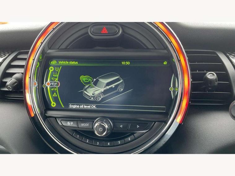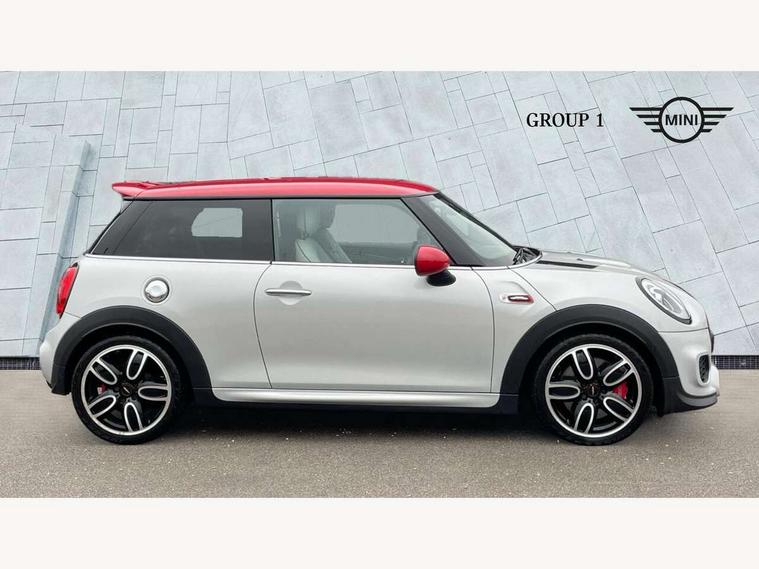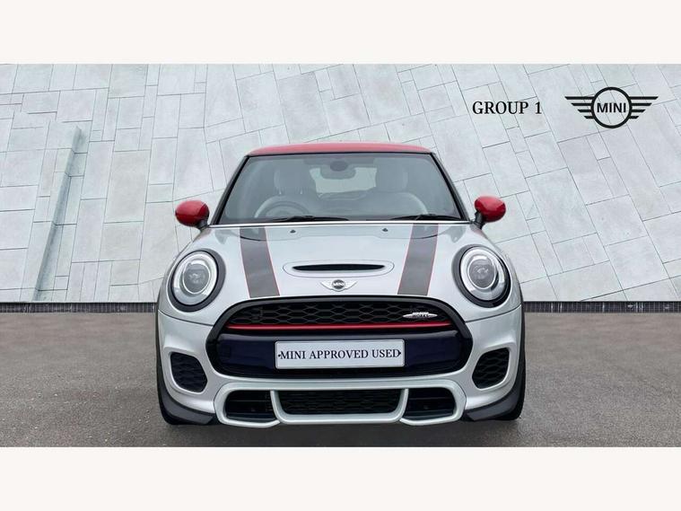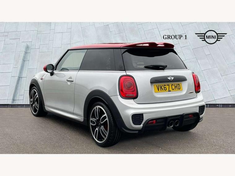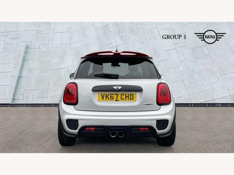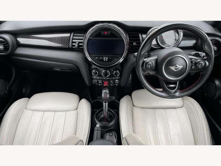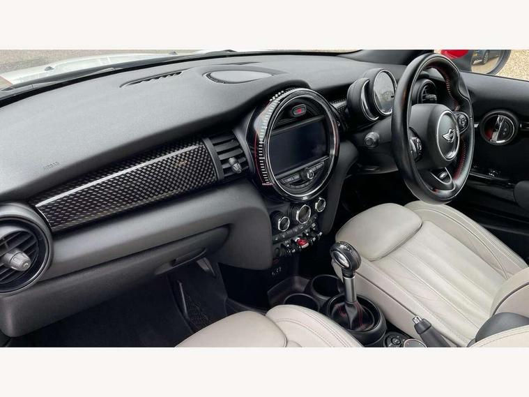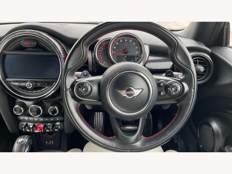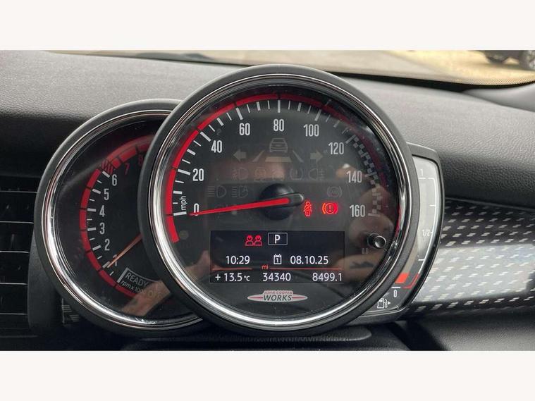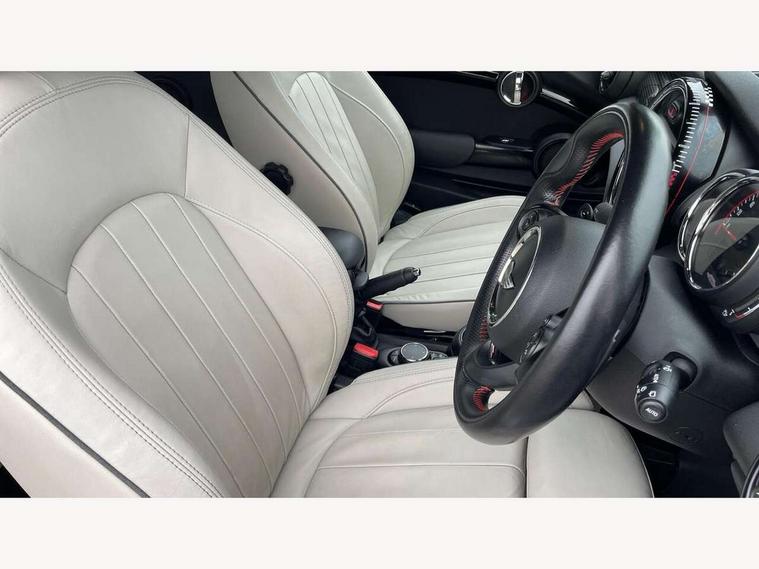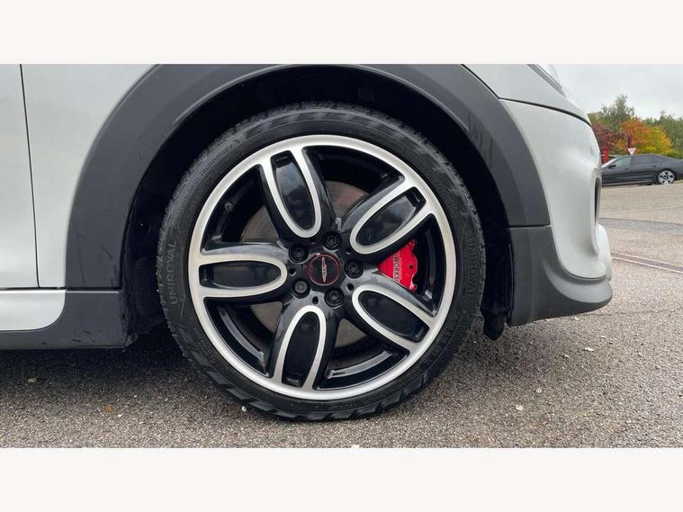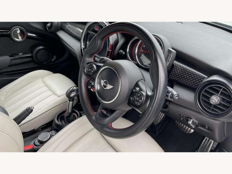 Acoustic seat-belt warning, Brake fluid level warning light, Brake pad wear indicator warning light, DTC - Dynamic traction control, Exterior temperature gauge, Intelligent emergency call, MINI Driving Modes - centre toggle switch to control driving setting (sport, mid and green), MINI TeleServices, Oil level indicator, On board computer, Push button starter, Service interval indicator, Servotronic PAS, Electronic differential lock, Performance Control, Auxiliary input socket, DAB digital radio module, 2 speed wipers+intermittent wipe, Anti dazzle mirror, Anti trapping/one touch open close front windows, Body colour scoop integrated into engine- compartment lid, Body coloured bumpers, Chili red grille bar, Chrome bezels around rear lights and headlights, Chrome door handles, Chrome plated fuel cap, Chrome plated trim on bottom edge of window, Chrome strip on lower grille, Electric front windows, Electrically adjustable door mirrors, Extended wheel arches, Follow me home headlights, Green tinted heat insulating glass, Heated door mirrors/heated windscreen washers, Heated rear window with auto timer, High gloss black tailgate, Honeycomb radiator grille, John Cooper Works roof spoiler, Metal look door sill finishers, Rear wiper, Side scuttles, Twin chromed exhaust pipes, White indicator lights, 2 rear head restraints, 4 boot load lashing points, 6 way manually adjustable passenger seat, 6-way manually adjustable driver's seat, Active carbon filter, Air recirculation system, Anthracite headlining, Auxiliary socket in centre console storage compartment, Centre console storage, Driver's seat height adjuster, Driver/passenger sunvisors, Easy entry seats, Front and rear cupholders, Front head restraints, Front interior light, Front passenger grab handle, Front seat backrest storage nets, Front sports seats, Gear/selector and handbrake in artificial leather, Internal chrome door handles, Isofix child seat preparation, Luggage compartment lighting, Multifunction steering wheel, Passenger seat height adjuster, Reach + rake adjustable steering column, Rear grab handles, Rear storage trays, Split folding rear seats, Storage compartments in doors, Toolkit in luggage compartment, Vanity mirrors, 3 point seatbelts, ABS/EBD, ASC+T, Brake calipers in red, Cornering brake control (CBC), Crash Sensor - activates hazard/interior lighting + unlocks doors, Driver and passenger airbags, Driver/front passenger side airbags, DSC - Dynamic Stability Control, Fuel cut off safety device, Head airbags, Hill start assist, Passenger airbag deactivation system, Seatbelt pretensioners, Tyre pressure warning, Ventilated front disc brakes, Drive away door locking, Locking wheel bolts, Remote central locking/doors+fuel cap+tailgate, Second remote key, Thatcham category 1 alarm + immobiliser,