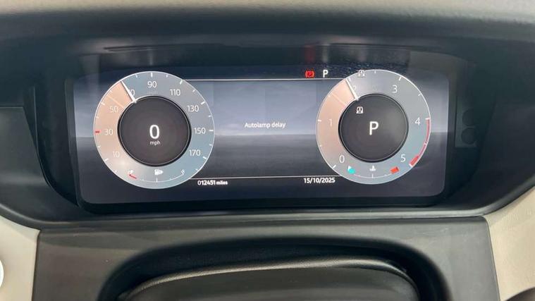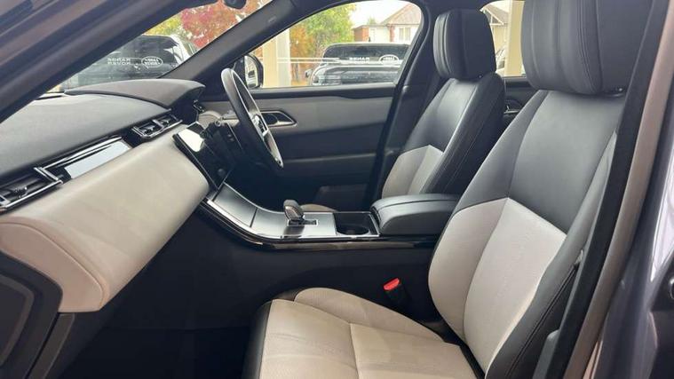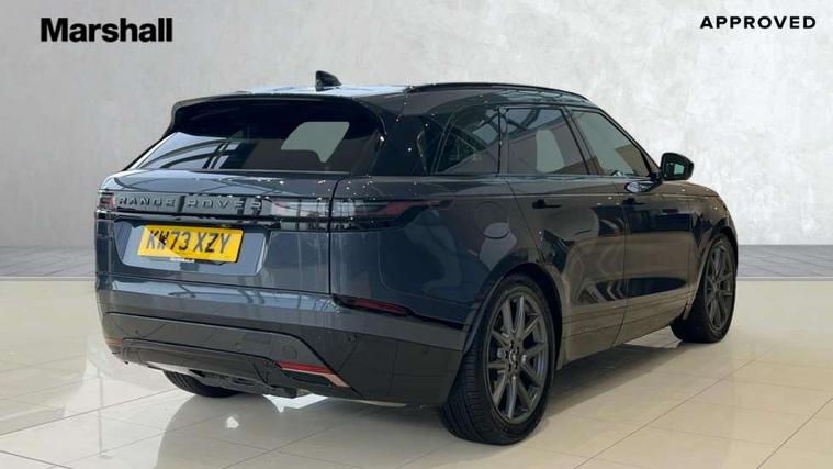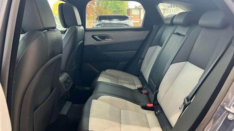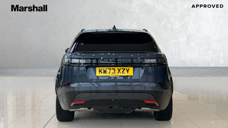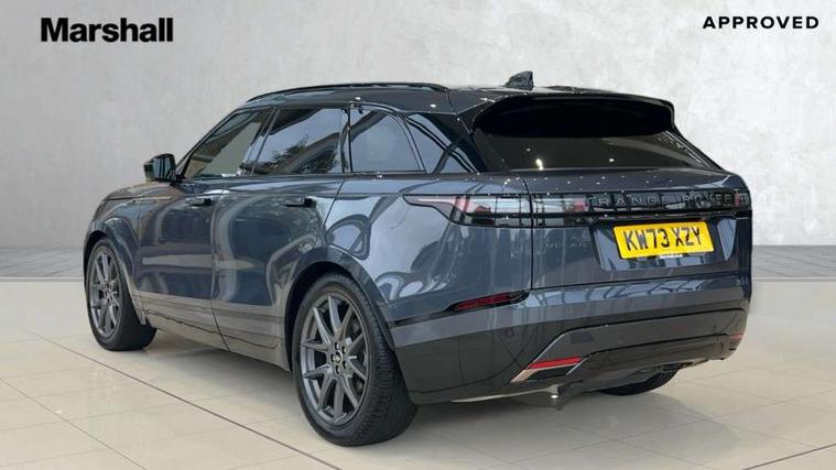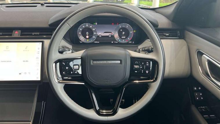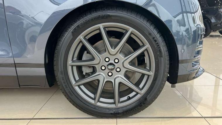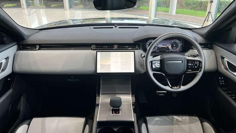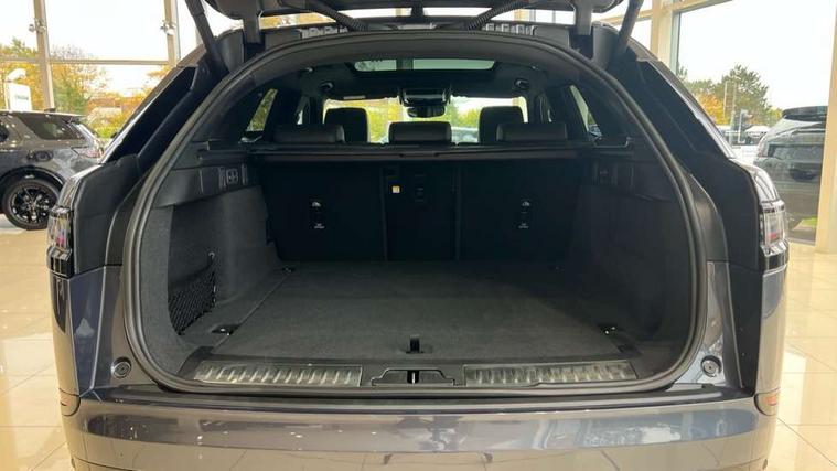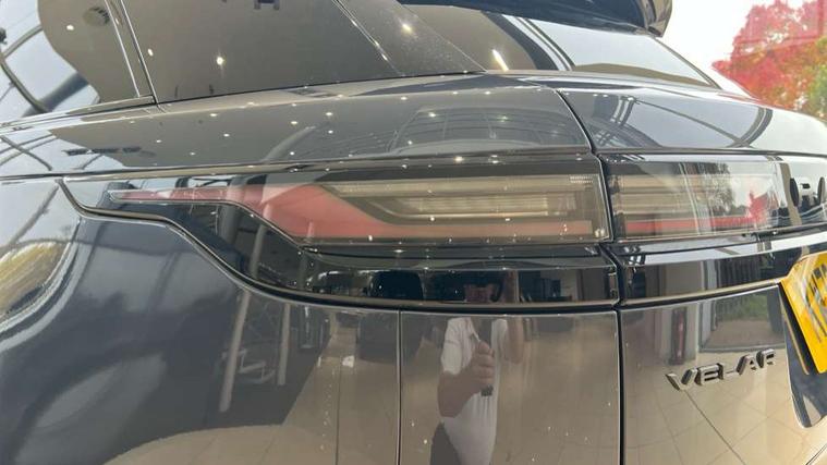 Adaptive cruise control with steering assist, Android Auto, Apple CarPlay, Blind spot assist, Bluetooth connectivity, Brake pad wear indicator warning light, Driver condition monitor, eCall emergency call system, Front and rear parking aid, InControl remote, Land Rover InControl apps, Lane keep assist, Pivi pro with connected navigation, Rear collision monitor, Rear traffic monitor, Service indicator, Speed proportional electronic power assisted steering (EPAS), Traffic sign recognition with adaptive speed limiter, Trip computer, Voice control system, Wireless device charging, 8 speed automatic transmission, Adaptive dynamics, All terrain progress control, Electronic air suspension, Open differential with torque vectoring by braking, Single speed transfer box, DAB radio, Steering wheel mounted controls, 3rd brake light, Acoustic laminated windscreen, Auto dimming interior rear view mirror, Automatic headlamp levelling, Automatic headlights, Body coloured bumpers, Boot protection plate, Electric windows with one touch open/close and anti trap, Flush deployable exterior door handles, Follow me home headlights, Heated rear window with timer, Heated washer jets, Metal front tread plates, Metal load space scuff plates, Pixel LED headlights with signature DRL, Power fold, auto-dimming, heated door mirrors with memory and approach lights, Rain sensor windscreen wipers, Rear animated directional indicators, Rear fog lights, Rear side wing doors, Rear wash/wipe, Tailgate/boot lid spoiler, Trailer stability assist, Velar badge, 3 seat bench in 2nd row, Ambient lighting, Bright metal pedals, Carpet mats, Driver/passenger sunvisors with illuminated vanity mirrors, Ebony morzine headlining, Electrically adjustable steering column, Extended leather upgrade, Heated steering wheel, Isofix system on outer rear seats, Loadspace cover, Overhead lighting console, Overhead stowage for sunglasses, Passive front headrests, Rear air vents, Rear centre headrest, Single front passenger seat, Twin front cupholders, Twin sliding front centre armrest, Online pack with data plan - Velar, Power socket pack 2 - Velar, 380mm front brakes and 325mm rear brakes, 3x3 point rear seatbelts, Anti-lock braking system (ABS), Cornering brake control, Curtain airbags, Customer configurable autolock, Door side intrusion beams, Driver airbag, DSC - Dynamic Stability Control, Electronic brake force distribution, Electronic parking brake, Electronic traction control, Emergency braking, Front and rear seatbelt reminder, Hill descent control, Hill launch assist, Low traction launch, Passenger airbag, Power operated child locks, Rear airbags, Roll stability control, Side airbags, Tyre pressure monitoring system (TPMS), Global lock and unlock switch on driver door, Immobiliser, Intrusion sensor, Keyless entry, Lock only switch on front passenger door, Locking wheel nuts, Perimetric alarm, Remote central locking, All season tyres,