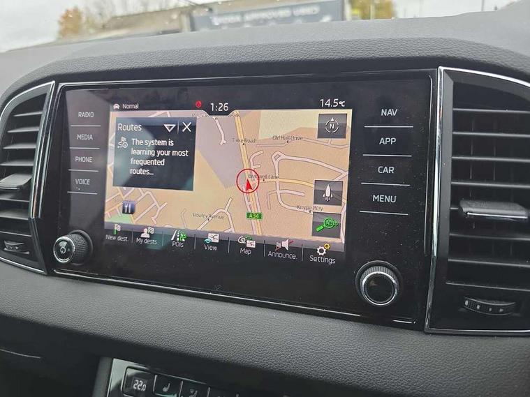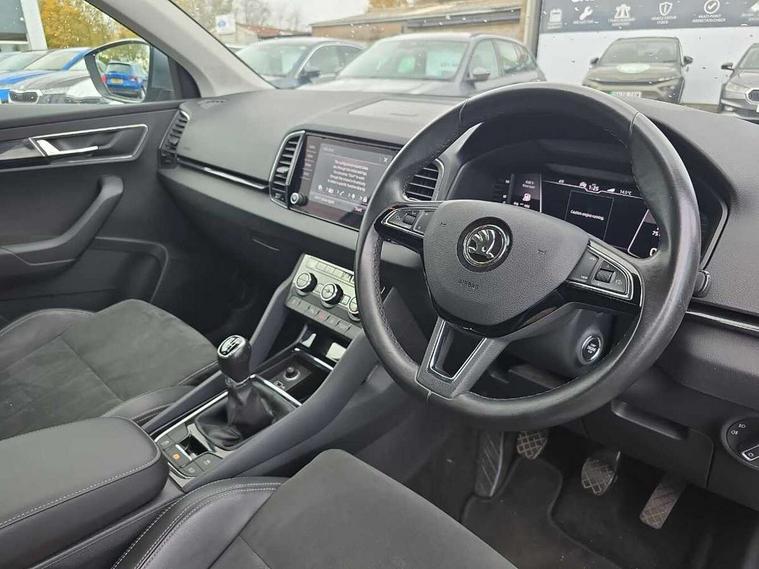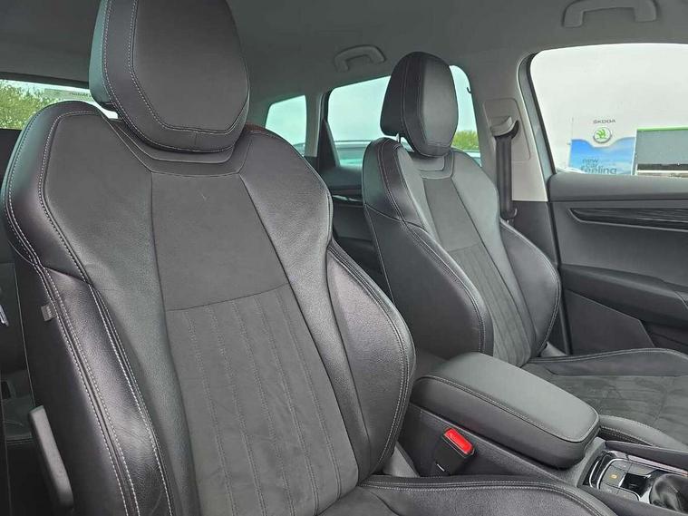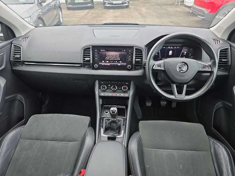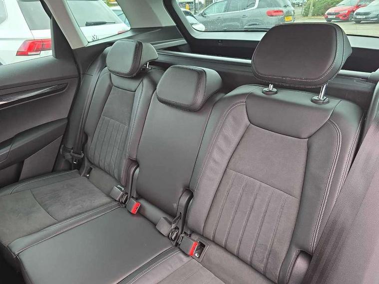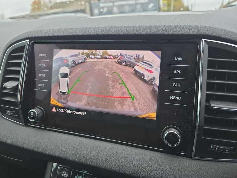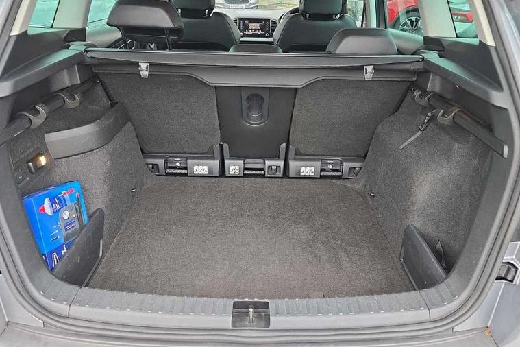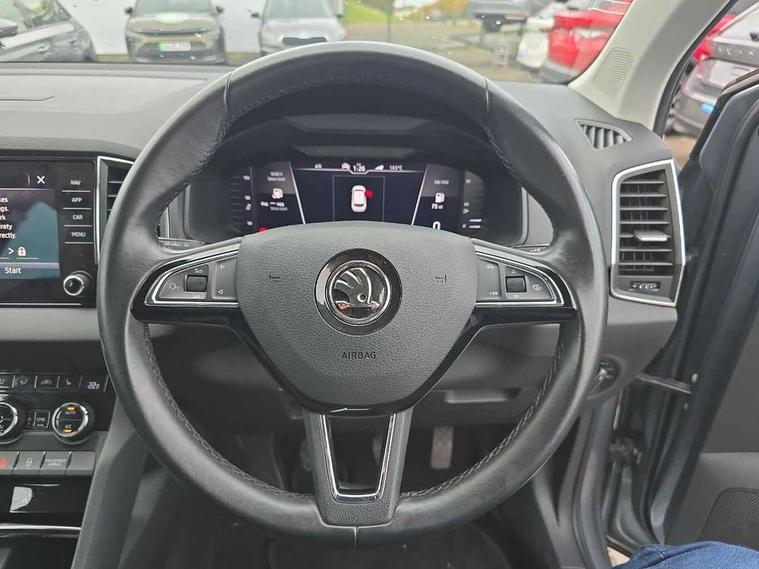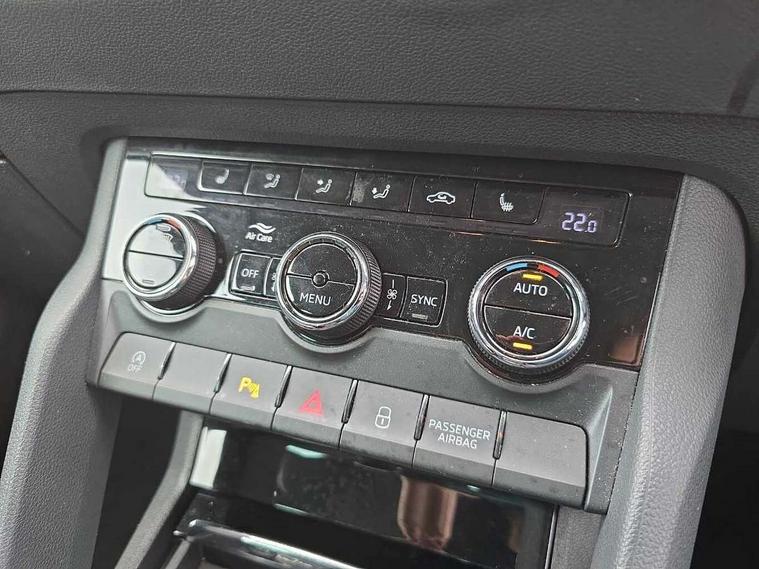 Drive mode selector, Driver alert system, Driver fatigue sensor, Driver profile selection, Multifunction colour trip computer, Outside temperature gauge, Rear view camera, Service interval indicator, Start/stop system with regenerative braking, DAB radio with Bluetooth, SD card slot, USB connection, Acoustic glass, Aero front windscreen wipers with intermittent function, Automatic headlight control system, Black electric window control buttons, Body colour door mirrors and handles, Body coloured bumpers, Electric front and rear windows with child proof lock, Full LED headlights + adaptive front light system + LED daytime running lights and front cornering fog lights, Headlight washers, Heated rear windscreen, LED rear lights with high functionality, Light assistant (coming/leaving home/tunnel light), Privacy glass, Safety reflectors on front doors, Third brake light, 1.5 litre bottle holders in driver and front passenger door panels, 12V socket in boot, 12v socket in front centre armrest with storage compartment and rear air vents, 2 Folding hooks and nets in boot, 2 Front readings lights for driver and passenger, 3 rear height adjustable headrests, 4 foldable roof handles with rear coat hooks, 4 lashing points on luggage floor, Backrest release, Cargo elements in boot, Chrome inner door handles, Dual zone climate control, Folding tables on the front seat backrests, Front seat and rear pockets, Height adjustable front three point seats belts with tensioners, Height adjustable passenger seat, Height/reach adjust steering wheel, Ice scraper, Illuminated and cooled glovebox, Illuminated luggage compartment, Isofix child seat preparation outer rear, Net programme in boot, Pen holder, Pollen filter, Rear boot cover, Rear reading lights, Rear seats fixed folding and divided 60:40, Removable LED torch in the boot, Retractable parcel shelf attachable to tailgate, Safety vest holder, Storage box in upper central dashboard closed, Storage compartment below the passenger seat, Sunvisors with illuminated vanity mirrors, Textile floor mats, Umbrella under passenger seat, VarioFlex seats with retractable parcel shelf, Chrome roof rails + chrome pack - Kodiaq, Airbags - Front side, head, knee and curtain, Automatic door unlocking in case of crash, Automatic fuel cut off in case of crash, Driver airbag, Electronic parking brake with auto hold function, Emergency rear braking signal, ESC including ABS, MSR, ASR, EDS, HBA, DSR, RBS, MKB and traction control, Front assist radar scanning of the space in front of the car with automatic braking, Hill hold control, Passenger airbag with switch-off function, Pedestrian monitor, Seatbelt reminder signalisation and pretensioner for all seats, Three point seatbelts rear, Two tone horn, Tyre pressure display, Tyre pressure monitor, Alarm with interior monitoring, back up horn and tilt sensor with safe function, Electronic engine immobiliser, Keyless entry and keyless start with safe system, Remote central locking with 2 remote folding keys, Chrome framed air vents, Storage on wheel cover,
