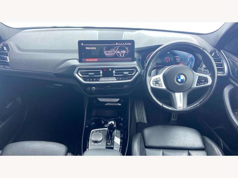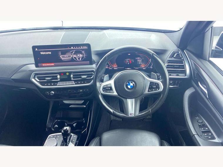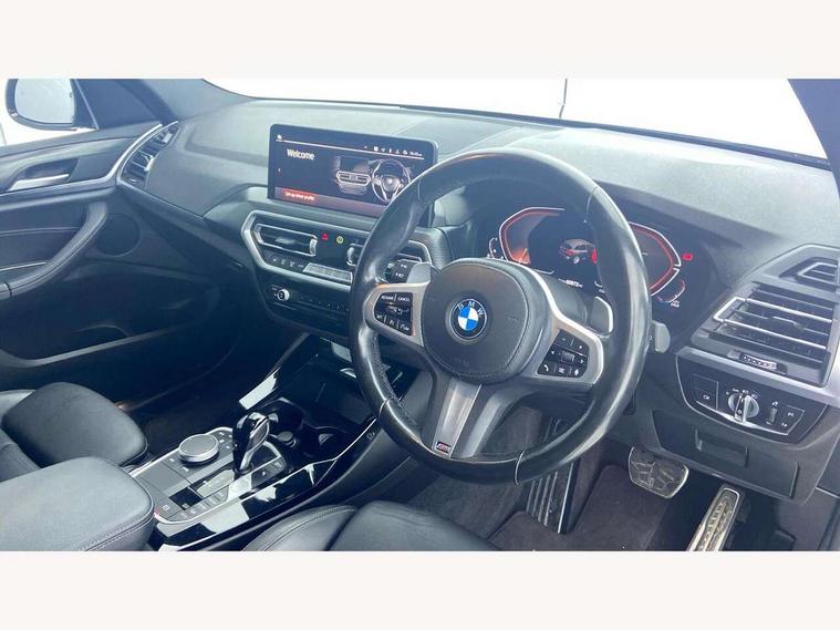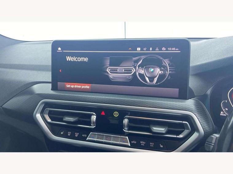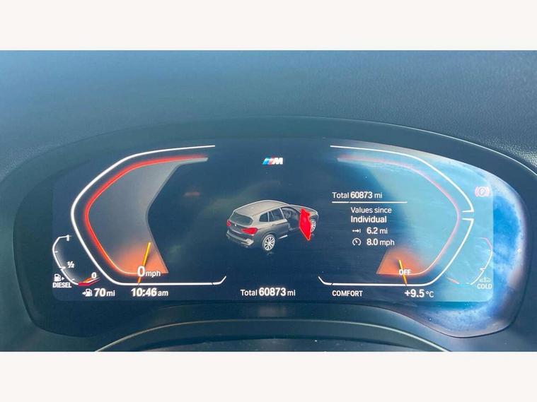 Active Guard, Attentiveness assist, BMW Live Cockpit Professional nav system including 12.3" instrument display + 12.3 high resolution control display, BMW Online services, BMW Teleservices, Brake pad wear indicator in front and rear, Check Control warning system for monitoring of lights and door/luggage compartment open warning, Condition based service - BMW service history, electronic service booklet, integrated owner's handbook, Connected drive services, Cruise control with brake function + speed limiter, Electric boot lid, Front/rear Parking distance control, iDrive Controller with 8 favourite buttons, Instrument cluster with speedometer with mph readout, tachometer, fuel gauge and oil temperature gauge, Lights on warning by audio warning signal when ignition is switched off, Oil sensor for level and grade, warning by check control system, On board computer - average speed+fuel consumption, service interval, clock/date, odometer/trip meter, outside temperature display and ice warning, Optimum shift indicator, Personal Profile - automatic lock when driving away selectable, Stop/start system, Variable sports power steering, Automatic transmission with gearshift paddles, Diesel particulate filter, Drive performance control with ECO PRO comfort + sport mode, Incorrect fuelling protection, Larger capacity fuel tank, M sport suspension, Multi-link rear suspension, Performance Control, BMW professional radio/CD/MP3, DAB tuner, Acoustic glazing, Automatic windscreen wipers and automatic headlight, Black finish on B pillars, Body colour door handles, Body colour electric adjust heated aspherical door mirrors, Body colour roof mouldings, Body coloured bumpers, Direction indicator, side repeaters, integrated in exterior mirrors, Dynamic brake lights, Exhaust tailpipes - dual, round, split left and right with chrome finisher, Fingertip control / anti-trap function on electric window, Folding wing mirrors with auto dimming, Follow me home headlights, Front and rear bumper system with replaceable deformation elements, Front and rear electric windows, Gloss chrome tailpipes finishers, Green tinted heat insulating glass, Heated windscreen washer jets, High beam assistant, High gloss black shadow line roof rails, High gloss shadowline exterior trim in decorative moulding side frame/recess cover/guide rail/B, C pillars/mirror frame and triangle with mirror base, High level 3rd brake light incorporating LED Technology, Interior rear view electrochromatic mirror with automatic anti dazzle function, LED tail lights, Lightweight engineering, M aerodynamic bodystyling, Model designation, Rear side wing doors, Rear wing door, Rear wiper, Shark fin antenna, Side exterior M designation badges, Visible VIN plate, Welcome lighting, Windscreen wipers with adjustable interval, 12V power socket in front centre console, 3 rear headrests, 3 zone automatic air conditioning, 4 lashing points to secure luggage, 40:20:40 split folding rear seat with loading system, 5 seats, Ambient lighting, Anthracite headlining, Automatic interior light when door is opened/ignition switched off or via remote key, Foldable storage floor with compartment, Four grab handles integrated in roof lining, Front and rear bottle holders integrated into door trim storage compartments, Front and rear side armrests integrated into door trim, Front centre armrest with storage compartment, Front footwell lights, Front head restraints, Front sports seats, Front/rear courtesy lights with soft on/off dimming, Front/rear reading lights, Heated front seats, Isofix rear child seat preparation, Leather gear knob, Luggage area underfloor compartment, Luggage compartment lighting, M sport leather steering wheel, Multifunction steering wheel, Parcel shelf removeable and storable under boot floor, Reach and rake adjustable steering column, Rear centre armrest with 2 cupholders, Removable / retractable luggage cover, Seat backrest width adjustment, Slope adjustable rear seats, Storage compartment in rear centre console and front/rear door trims, Sun visors with vanity mirrors and ticket pocket, Toolkit located in luggage compartment, Two front cupholders with removable oddments tray/lid, Vernasca leather upholstery, Connected pro pack - X3, Driving assistant pack - X3, ADB - Automatic Differential Brake, Anti-lock braking system (ABS) with brake assist, Automatic Stability Control (ASC), Battery safety cut-off, BMW emergency call, Brake drying, Brake energy regeneration, Braking pre-tensioning, Child locks on rear doors, Cornering brake control (CBC), Crash Sensor - activation of central locking release, hazard warning light and interior lighting, Deactivation of fuel pump in the event of a crash, Driver and front passenger front and side airbags with passenger deactivation and ITS front and rear head airbags, DSC+, Dynamic brake control, Dynamic Traction Control - DTC, Electromechanical parking brake, Hill descent control, Hill start assist, Seatbelt security check for front seats, Side impact protection, Three point seatbelts to all seats with front and outer rear pyrotechnic belt tensioners and seat belt force limiters, Two tone horn, Tyre pressure sensor, Ventilated front and rear disc brakes, Warning triangle and first aid kit, Central locking switch for all doors, fuel filler cap and luggage compartment, Electronic engine immobiliser, Locking wheel nuts, Remote control including two integrated key - one button for open/close all lockable content, windows and separate button for open luggage compartment, Remote control Thatcham category 1 alarm, Start/stop button with Comfort Go keyless engine start and auto Start/stop deactivation button, Low rolling resistance tyres,