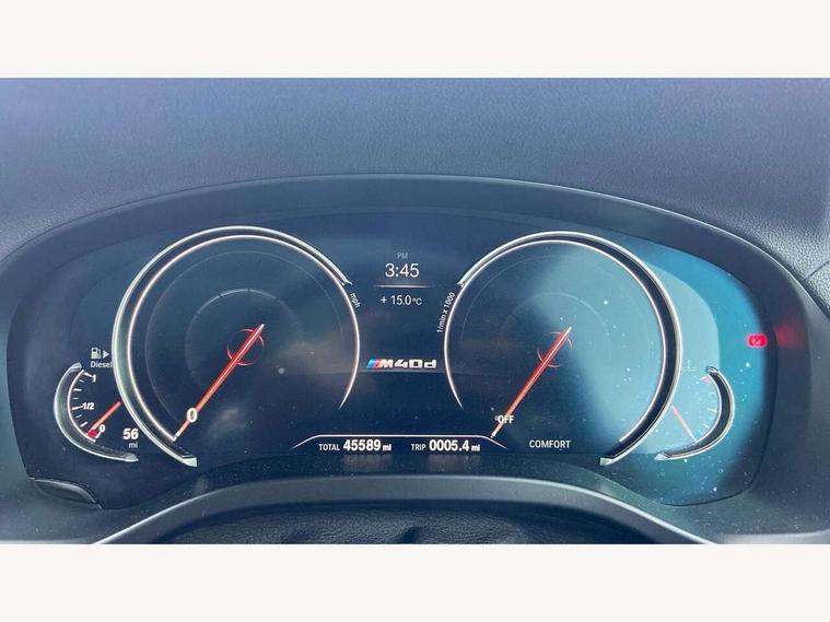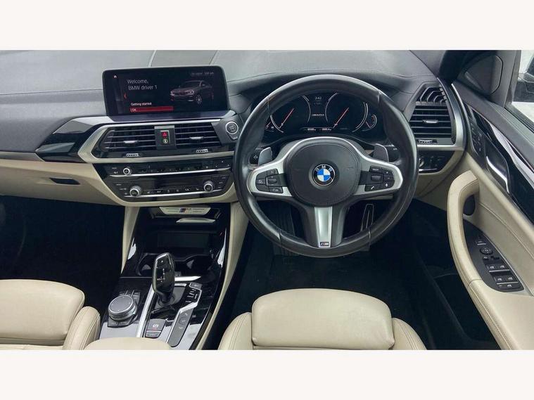 Automatic tailgate operation, BMW Online services, BMW remote services, BMW Teleservices, Check control system, Exterior temperature gauge, iDrive controller and display with 10.2" colour display monitor, Keyless ignition with push button start, Lights on warning, Navigation system - BMW Professional multimedia, On board computer, Real time traffic information, Service interval indicator, Speed limiter, Trip computer, Variable sports power steering, Diesel particulate filter, Larger capacity fuel tank, Limited slip differential, Performance Control, Sport automatic transmission, Auxiliary socket for external MP3 player, Bluetooth audio streaming, BMW professional radio/CD/MP3, DAB Digital radio, Auto dimming rear view mirror, Body colour door handles, Body colour roof mouldings, Body coloured bumpers, Cerium grey air breather, Cerium grey air inlets, Cerium grey exterior mirror caps, Cerium grey frame and kidney grille with high gloss black vertical slats, Dynamic brake lights, Electric adjustable heated door mirrors, Fingertip control / anti-trap function on electric window, Follow me home headlights, Front and rear electric windows, Green tinted heat insulating glass, Heated windscreen washer jets, Height adjustable headlamps, High gloss black door sill finishers, High gloss shadow line, LED daytime running lights, LED fog lights, LED Headlights, LED tail lights, M aerodynamic bodystyling, Rain sensor including auto headlights activation, Twin Trapezoidal tailpipes, Windscreen wipers with adjustable interval, 12V socket in centre console and luggage area, 3 zone climate control, Ambient lighting, Anthracite headlining, Centre console storage tray, Cupholders in centre console, Driver/passenger sunvisors with ticket holders + illuminated vanity mirrors, Front and rear door armrests, Front centre armrest with storage compartment, Front cupholders x 2, Front footwell lights, Front sports seats, Front/rear courtesy lights with soft on/off dimming, Front/rear reading lights, Gearshift paddles on steering wheel, Height adjustable front/rear head restraints, Isofix rear child seat preparation, Leather gear knob, Luggage area underfloor compartment, Luggage compartment lighting, M Sport multifunction leather steering wheel, Reach + rake adjustable steering column, Rear centre armrest with 2 cupholders, Removable rear parcel shelf, Storage pockets - front doors, Through loading system with 40/20/40 split folding rear seat, Toolkit located in luggage compartment, Visibility pack - X4, 3 rear 3 point seatbelts, ABS/EBD, ADB - Automatic Differential Brake, BMW emergency call, Child locks on rear doors, Cornering brake control (CBC), Crash Sensor - activates hazard/interior lighting + unlocks doors, Driver/front passenger airbag, DSC - Dynamic Stability Control, Dynamic brake control, Dynamic Traction Control - DTC, Electromechanical parking brake, Front and rear head airbags, Front and rear pre-tensioning and force limiting seatbelts, Front passenger airbag deactivation, Front seat belts warning, Hill descent control, Hill start assist, M Sport braking system, Tyre pressure monitoring system, Warning triangle and first aid kit, Engine immobiliser, Locking wheel nuts, Remote central locking, Remote control Thatcham category 1 alarm, Low rolling resistance tyres,