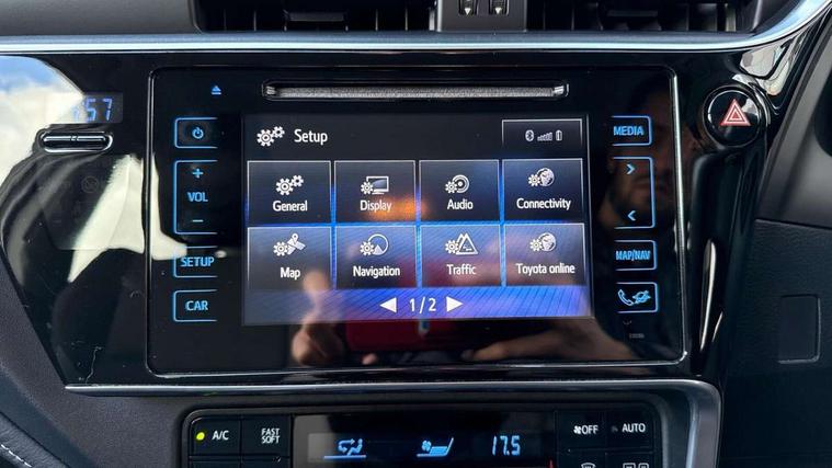 7" touch screen, Cruise control, Forward collision warning, Lane departure warning system, PAS, Push button starter, Rear view camera, Touch 2 Go navigation system, 6 speakers, Bluetooth connectivity including audio streaming, DAB Digital radio, Radio/CD + MP3, USB/aux input socket, Auto high beam, Body colour bumpers, Body colour door mirrors, Chrome bars on lower front grille, Chrome fog lamp bezel, Dusk sensor, Electric front windows, Electric rear windows, Front fog lights, LED daytime running lights, LED rear lights, Lower grille finisher - Piano black, Rear wiper, Auto air conditioning, Drivers/passenger heated seats, Electric lumbar support, Front and rear headrests, Isofix child seat preparation, Leather gear knob, Leather steering wheel, Ventura cloth upholstery, 3x3 point rear seatbelts, ABS/EBD, Collision mitigation braking system, Driver/Front Passenger airbags, Drivers knee airbag, Emergency brake assist, Front and rear curtain airbags, Front lateral airbags, Hill start assist, Passenger airbag deactivate switch, Road sign information display, Seatbelt pretensioners and force limiters, Seatbelt warning, Vehicle stability control + traction control + brake assist, Black instrument panel, Space saver spare wheel,