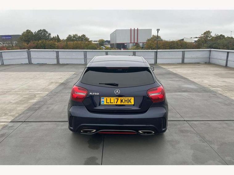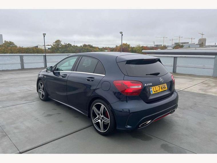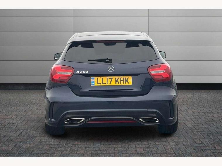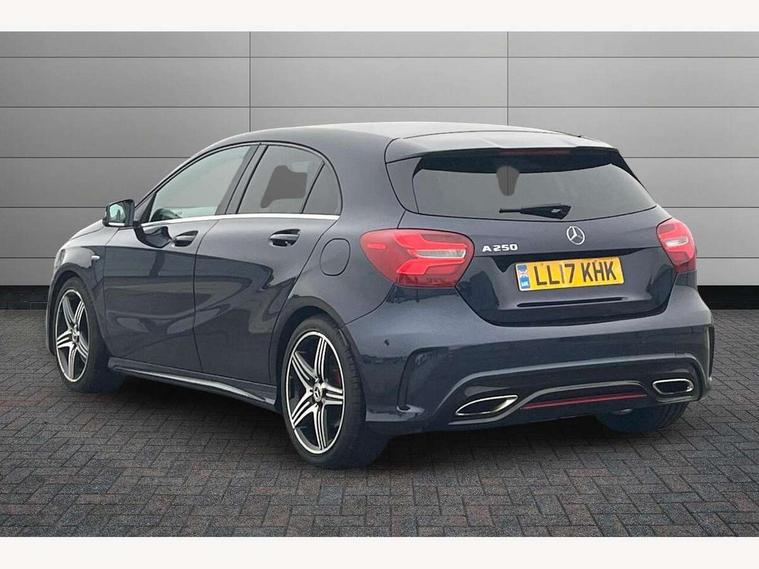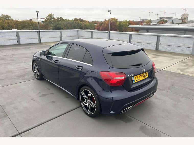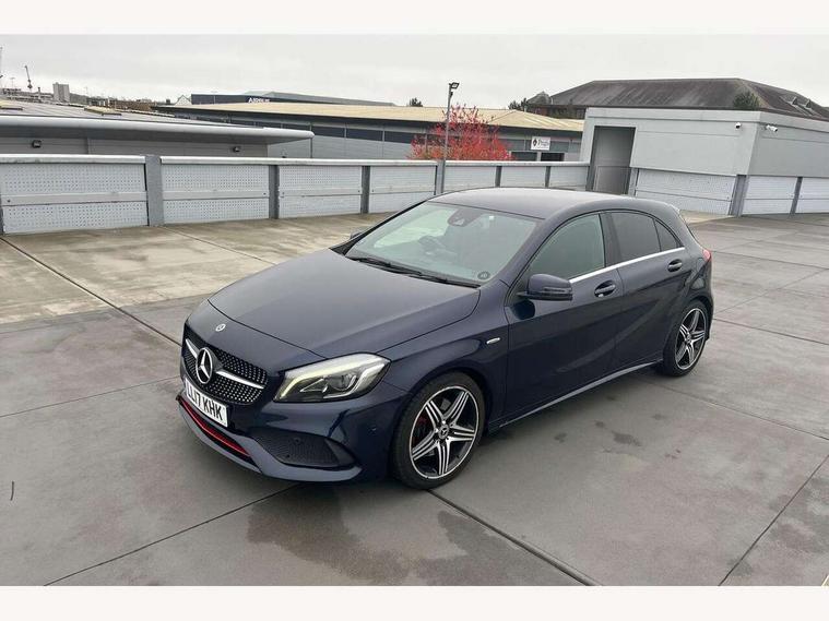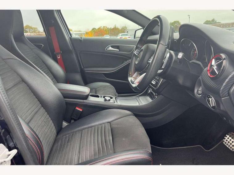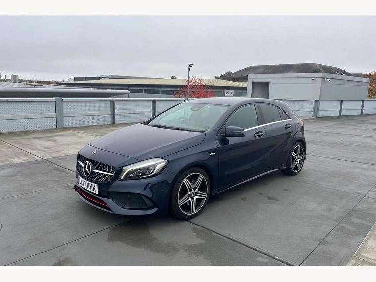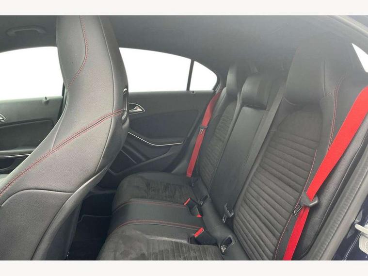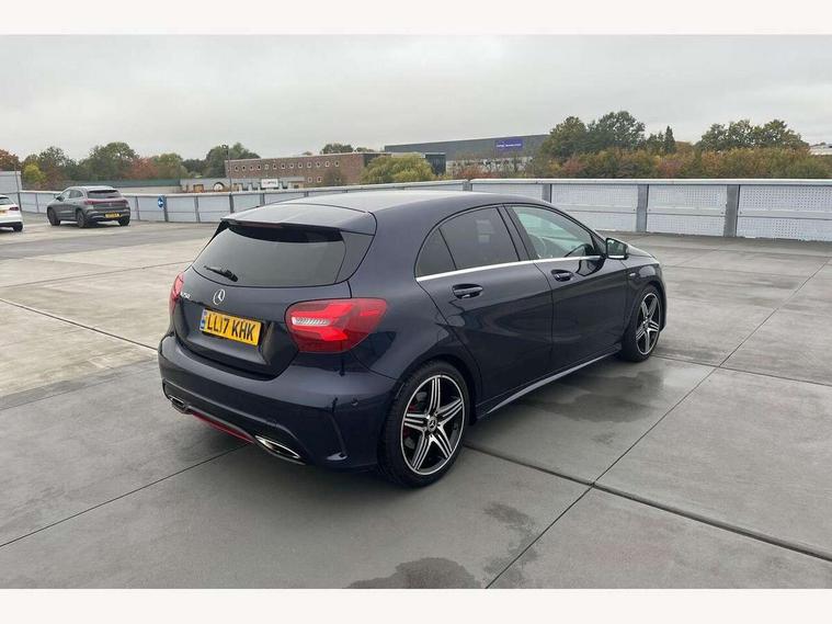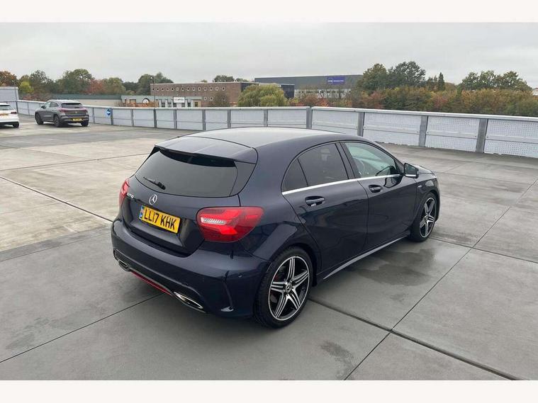 8" colour display screen, AMG speed sensitive sports steering, Attention assist, Bluetooth interface for hands free telephone, Bulb failure indicator, Collision prevention assist plus, DYNAMIC SELECT with a choice of driving modes (ECO, Comfort, Sport, Sport+ and Individual), External temperature gauge, Low fluid warning light, Park assist pilot with front and rear park assist, Reversing camera, Service indicator (ASSYST PLUS), Trip computer, Sports suspension, 6 speakers, USB port, Adaptive brake lights, AMG body styling, Auto dimming driver's door mirror, Auto dimming rear view mirror, Body colour bumpers/red strips, Body colour door handles, Body colour side skirt, Body coloured door mirrors, Chrome beltline trim, Diamond radiator grille with chrome pins and gloss black louvre + chrome insert, Electric adjustable heated door mirrors, Electric folding door mirrors, Electric front windows, Electric rear windows, Headlamp assist, Heated rear window with timer, Heated windscreen wash system, High beam assist, LED daytime running lights, LED Headlights, LED rear lights, LED tail lights, Rain sensor windscreen wipers, Rear wiper, Twin Trapezoidal tailpipes, 1/3 to 2/3 split folding rear seats, 12 colour Ambient lighting, 12V socket, 3 Spoke sports multifunction flat bottomed leather steering wheel, AMG performance seats, Artico man-made leather/Dinamica upholstery, Auto Mercedes-Benz child seat recognition sensor, Black headlining, Brushed stainless steel sports pedals, Dual zone automatic climate control, Floor mats with red stitching, Footwell lights, Front and rear reading lights, Front centre armrest with storage compartment, Front head restraints, Front sport seats, Gearshift paddles on steering wheel, Heated front seats, Height adjustable front seats, Height/reach adjustable steering column, Illuminated door sills, Illuminated glovebox, Illuminated storage compartment, Isofix rear child seat preparation, Load securing rings in luggage compartment, Luggage compartment cover, Rear head restraints, Storage compartment under load area floor, Sunvisors with illuminated vanity mirrors, Twin front cupholders, Seat comfort pack - A Class, 3 rear 3 point seatbelts, ABS with Brake Assist, Active bonnet, Adaptive brake system, Brake calipers with Mercedes-Benz lettering + perforated brake discs, Child proof door locks, Crash responsive emergency lighting, Drivers knee airbag, Dual stage driver/passenger airbags, Electronic parking brake, ESP with ASR, Front and rear seatbelt reminder, Front head airbags, Front passenger seat occupancy sensor, Front side airbags, Hill start assist, Red painted brake calipers, Tyre pressure monitoring system, Warning triangle and first aid kit, Window airbags, Alarm system/interior protection/immobiliser, Keyless ignition, Remote central locking, Black air vent surrounds with red insert, Carbon effect trim, Tirefit sealant with electric air pump,