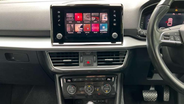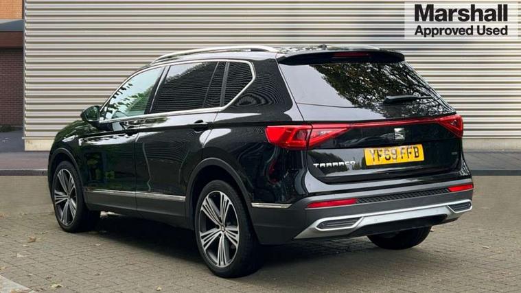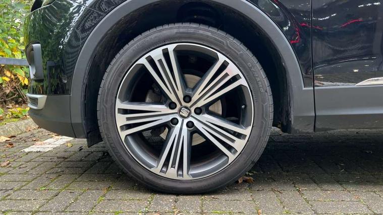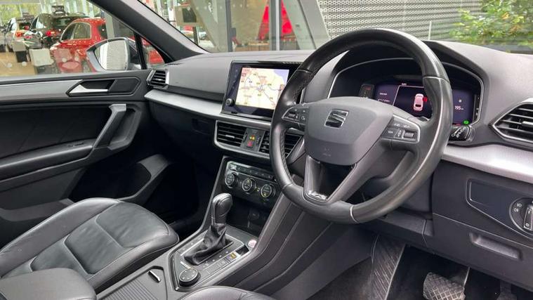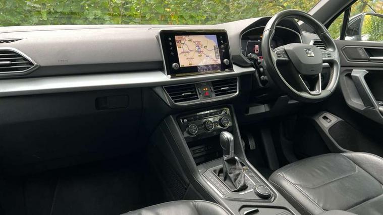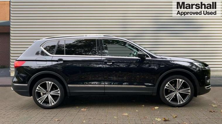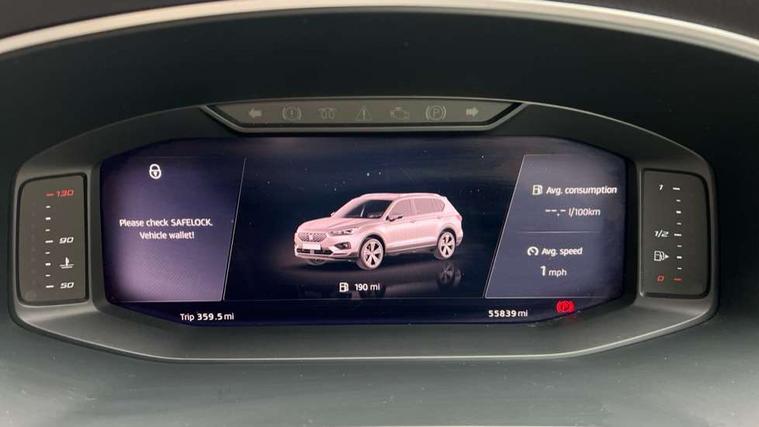 'Lights On' Reminder warning buzzer, 10.25" digital cockpit, Adaptive cruise control with speed limiter, Bluetooth audio streaming with handsfree system, Digital clock, Digital cockpit, e-Call (emergency call), Front assist city emergency braking and pedestrian protection, Full Link Smartphone Integration with Mirror Link, Apple Car Play, Google Android Auto, Lane assist, Low fuel warning light, Outside temperature gauge, Park assist system, Rear view camera, RPM counter, SEAT Drive profile - 4 different modes, progressive steering, 4Drive versions with off-road/snow, steering response, throttle response, gear shifts, Top view camera, Trip computer, Wash water level indicator, Comfort suspension, XDS electronic differential lock, Navigation system with 8" colour touchscreen with proximity sensor, 3D Map display, DAB, AM/FM Radio, 3 USB, Aux-in, 8 speakers, SD card, Steering wheel mounted audio/telephone controls, Auto dimming rear view mirror, Auto headlights with automatic coming and leaving home function, Automatic headlight adjustment, Body colour door mirrors and handles, Body coloured bumpers, Chrome front grille frame, Chrome roof rails, Chrome window trim, Dark tinted rear windows, Electric front/rear windows, Electrically adjustable and folding door mirrors, Front halogen fog lights with cornering function, Fuel door linked to central locking, Full LED headlights with LED rear lights, Hidden exhaust pipe, Illuminated aluminium front door sill with XCELLENCE logo, LED daytime running lights, LED licence plate lighting, Rain sensing wipers, Rear fog lights, Rear wash/wipe, 3 zone climate control, Ambient spot lighting and front footwell illumination, Black interior roof, Centre armrest in front with air outlet in rear, Driver and passenger sunvisor with covered and illuminated mirror, Driver/passenger lumbar adjustment, Easy fold rear seat system - second and third row, Electric driver's seat with memory, Folding table on front seat backrests, Forward and backward adjustable seats 2nd row, Four cargo rings in the boot, Front cupholders, Front seat back storage pockets, Gear shift indicator, Height adjustable driver's seat, Height adjustable front headrests, Height adjustable passenger seat, Illuminated boot, Instrument lighting with brightness control, ISOFIX points in outer 2nd row seats and front passenger seat with top tether anchorage points, Leather gear knob, Leather steering wheel, Leather upholstery with sports seats, Leather wrapped multifunction steering wheel, Luggage compartment floor with split function, Rear armrest and easy back seat release mechanism from boot, Sliding boot cover, Storage draw under front passenger seat, Three 12V sockets, Tool kit, White ambient lighting in front and rear door panels + LED lights in interior door handles, Winter pack - Tarraco, ABS, Active front head restraints, Driver/front passenger airbag, Drivers knee airbag, Electronic parking brake with auto hold, Electronic stability control, Front passenger airbag deactivation, Front side airbags, Hill hold control, Seatbelt reminders for all seats, Tiredness recognition system, Traction control, Two curtain airbags, Tyre pressure monitoring system, Alarm, Central locking, Keyless enter and go with electric tailgate with virtual pedal, Locking wheel bolts, Power locking and remote control with two foldable keys and opening boot selector, Chrome interior detailing - door and dashboard decorative inserts, 20" Supreme machined alloy wheels 37/1,