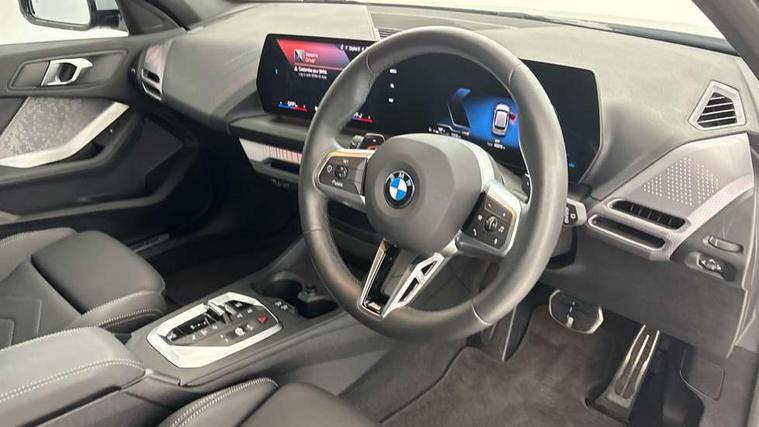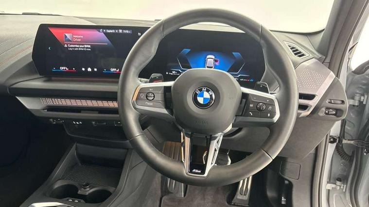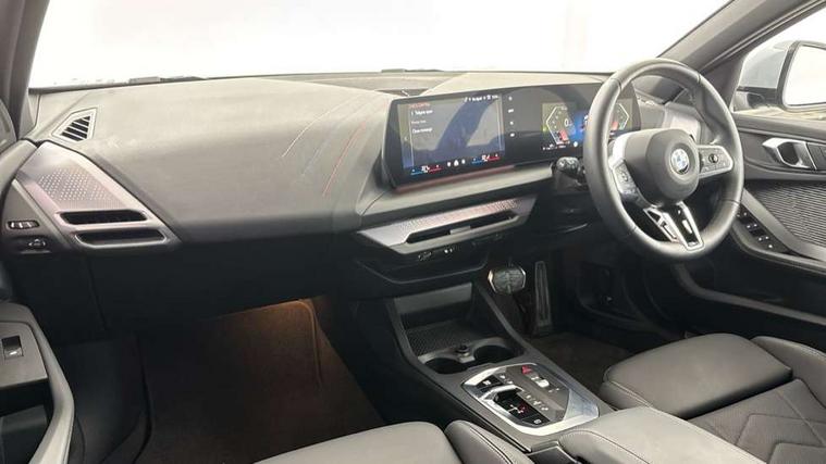 Active guard plus, Attentiveness assist, Bluetooth / WiFi interface for wireless connection of mobile terminal devices and audio streaming, BMW ConnectedDrive online services, BMW Live cockpit plus, BMW Teleservices, Check Control warning system for monitoring of lights and door/luggage compartment open warning, Eco pro mode, Electric power steering with Servotronic steering optimised at all speed ranges, Evasion assistant, Flat airvents in instrument panel with adjustable slats, Front and rear parking sensors, Front axle single joint with specific axle kinematics to minimise drive influences on steering + provide increased rigidity agile driving behaviour, Gearshift time display in manual mode, Integrated owners handbook, Left turn warning with brake function, My modes (Personal / Efficient / Sport), Oil sensor for level and grade, On board computer, Optimum shift indicator, Park assist including reversing assistant, lateral parking aid and reversing assist camera, Personal e-SIM, Personal Profile, Pull away assistant, Rigidly mounted rear subframe - Multi link construction with separate spring / damper configuration and excellent driving characteristics, Speed limit Info including no-overtaking indicator, Speed limiter, 49 litre fuel tank, Aluminium lightweight construction, Anti roll bar front and rear, Balancer shaft, Double VANOS twin scroll turbocharging system, Drive Performance Control, Electronic differential lock, Electronic selector lever, High precision injection, M Adaptive suspension, Petrol Particulate Filter, Steptronic transmission with double clutch, Twin tube gas filled shock absorbers with degressive characteristic curve, VALVETRONIC engine management, DAB Digital radio, Auto dimming rear view mirror, Automatic windscreen wipers and automatic headlight, Body colour door handles, Body colour mirror caps, Body colour roof trims, Chrome 'M' logo side designation, Chrome exhaust twin tailpipes round 90mm in left, Chrome kidney grille frame with Satin Aluminium struts, Direction indicator side lights in exterior mirrors, Electrically adjustable exterior mirror with mirror adjustment switch on drivers armrest and aspheric on driver side, convex on passenger side, Exterior M sport design elements, Fading support, Folding side mirrors with auto dimming/folding wing mirrors with auto dimming, Follow me home headlights, Front and rear bumper system with replaceable deformation elements, Front and rear electric windows with open and close fingertip control, anti trap facility and comfort closing, Front bumper panel with M specific design in vehicle colour with inserts in black high gloss, Front door sill finishers in black plastic with M designation in metallic look, Green tinted heat protection glazing, Heated rear window, High gloss black exterior mirrors, High gloss shadowline window frame, Recess cover mirror frames and B/C pillar embelisher trim, High level third brake light, Integrated front windscreen with washer jets, LED daytime running lights, LED eyebrow turn indicators, LED front fog lights, LED Headlights, Lightweight engineering, M identification on the sides, Matt black air guide grilles, Matt black wheel arch trim, Model badge on tailgate right, Nearside reverse light in rear light cluster, Preparation for high beam assistant, Rain sensor, Rear bumper panel with M-specific design in vehicle colour with inserts in black high gloss, Rear fog lights, Rear side wing doors, Rear window wiper, Shark fin antenna, Side sill covers with M specific design in body colour, Trailer stabilisation logic, Visible VIN plate, Welcome lighting, 12V power socket in front centre console with blanking plug, 3 rear seat head restraints, 3 seat bench in 2nd row, 3 spoke sports leather steering wheel with black leather and stitching, pearl chrome decorative finish, specific M Badge, Anthracite front and rear floor mats, Anthracite headlining, Black boot net with lashing eyes, Cargo function on 2nd seat row, Child seat ISOFIX attachment for two outer rear seats and front passenger seat with anchorage points, Conditioned based service, Driver and front passenger backrest net on rear, Driver and front passenger seat heating, Driver side folding compartment in instrument panel, Folding rear clothes hook, Footrest and pedals in black plastic, Four grab handles integrated in roof lining, Front and rear door pockets with bottle holders, Front and rear side armrest integrated into door trim, Front armrest with storage compartment, Gearshift paddles on steering wheel, Glove compartment, Height adjustable front head restraints, Luggage compartment for bag hooks on left and right, foldable luggage compartment liner and four lashing eyelets, Manual adjust steering wheel, Multi-function controls for steering wheel, Rear seat backrest with manual 60:40 split folding with 3 top tether clips integrated on rear of seat panels, Single front passenger seat, Storage compartment in centre console, Storage compartment in luggage compartment, Stowage of the parcel shelf in luggage compartment trim, Sun visors with vanity mirrors and insert tab, Two front centre console cupholders, Type C two USB ports in rear centre console, Upper retaining strap integrated into backrest rear panels, Connected pack professional - 1 Series, Interior lights pack - 1 Series, M Sport exterior styling aerodynamics pack - 1 Series, 2 tone horn, 3 point seatbelts on all seats, front pyrotechnic belt tensioners, stopper and belt force limiters, rear coded belt buckles, Airbags - Front driver/passenger, front and rear curtain head protection, front side, manual deactivation of front passenger airbag, Anti lock braking system (ABS) with brake assist, BMW emergency call, Brake drying, Braking readiness, Child proof locking system in rear door, Comfort modes, Cornering brake control, Crash sensor activating of airbags, Unlocking doors, hazard warning lights, interior light, safety battery terminal, Driver and front passenger seat belt sec