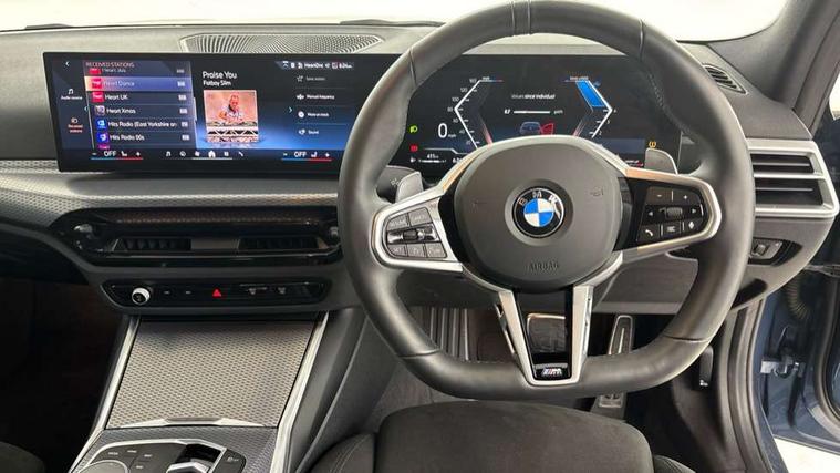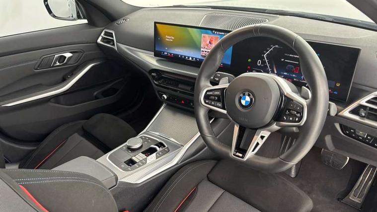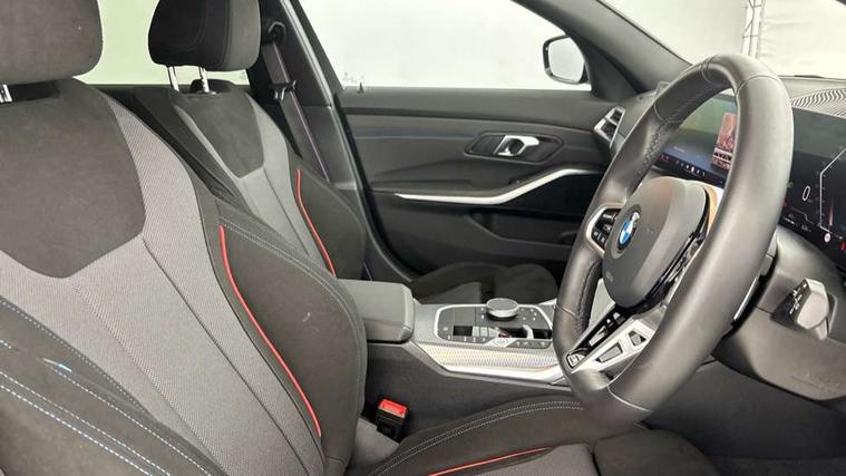 Active guard plus, Attentiveness assist, Automatic Start/stop button, Bluetooth Wi-Fi interface, BMW iDrive, BMW Teleservices, ConnectedDrive Services - last state call, Electric bootlid, Live cockpit plus with Navigation + 12.3" instrument display + 14.9" display, Intelligent voice assist, 2 USB, 4G LTE connect, Oil sensor for level and grade, Personal e-SIM, Shifting point display, Variable sport steering, Double joint spring strut front axle, Fuel tank breather system, Steptronic Sport automatic transmission with steering wheel mounted gearshift paddles launch control and xtreme drive lever control, DAB tuner, 3rd brake light, Auto dimming rear view mirror, Automatic headlight beam throw control with load dependent regulating reaction, dynamic compensation of braking dive and acceleration squat, Bi-LED Low and high beam headlights, BMW emblem, engine compartment lid and tailgate, Body colour roof fin, Door sill strips, Electric windows - front and rear, with open/close fingertip control, anti-trap facility and comfort closing, Fading support, Follow me home headlight function, Front and rear bumper system with replaceable deformation elements, Front apron plastic in body colour, Fuel filler flap - right rear in body colour, Heat protection glazing on front windows and windscreen, Heated washer jets, High gloss chrome kidney frame with high gloss black kidney struts, High gloss shadow line roof rails, LED daytime running lights, LED rear lights, LED turn indicator, Licence plate panel integrated into front bumper and tailgate, M high gloss shadow line exterior trim, Matt black B-pillar finsher, Matt black window recess cover, One piece front bumper cover including towing eye cover in body colour, Rain sensor with automatic headlight activation, Rear side wing doors, Rear wiper, Reversing lights, Side frame decorative moulding black matt, Trailer stabilisation logic, Visible exhaust tailpipe finisher, Welcome lights in interior and door handle area, 12V power socket in front storage compartment, 2 front cupholder in centre console with clamping elements and matt black inlay, 3 seat bench in 2nd row, 3 spoke M Sport multifunction flat bottom leather steering wheel, 3 zone automatic air conditioning, 40:20:40 split folding rear seat with loading system, Anthracite headlining, Armrest integrated in front and rear door trim + front centre console armrest, BMW ID, Cruise control operation in steering wheel, Driving experience mode switch, Folding rear centre armrest with 2 cupholders, Front and rear headrests, Front and rear velour floor mats, Front reading light, Heated front seats, Height adjustable mechanically and infinitely variable steering column, Illuminated armrest storage compartment, Illuminated glove compartment, Illuminated luggage compartment, Lashing eyelets in luggage compartment, Single front passenger seat, Sunvisors with illuminated vanity mirrors and ticket pocket, Toolkit located in luggage compartment, Connected pack professional - 3 Series Saloon/Touring, Interior and exterior mirror pack - 3 Series Touring/Saloon, M sport exterior styling pack - 3 Series Saloon/Touring, Parking assistant pack - 3 Series, 3x3 point rear seatbelts, BMW emergency call, Child locks on rear doors, Crash sensor activating of airbags, Unlocking doors, hazard warning lights, interior light, safety battery terminal, Drive-off assistant, Driver and front passenger with seat occupancy detection for driver's and passenger side, Driver and passenger side airbags, body protection at side and airbags deploy from seat backrests, Dry braking, Dynamic brake control, Dynamic stability control + (DSC+) - Anti-lock Braking System (ABS) with brake assist and cornering brake control + Automatic Stability Control (ASC), Dynamic Traction Control - DTC, Electric parking brake including automatic hold function and automatic release of the parking brake when driving off, Electronic differential lock control (EDLC), Front airbag deactivation, Front airbags for driver and front passenger, Head airbags in 1st and 2nd row, head protection at side, curtain airbags open from headliner above 1st and 2nd row, Plastic fuel tank, Side impact protection, Tyre pressure sensors, Ventilated front and rear disc brakes, Warning triangle and first aid kit, Alarm system, Centre lock switch, Closing system with central locking, Electronic vehicle immobiliser, Locking wheel bolts,