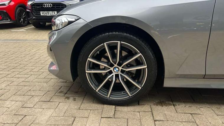 Active guard plus, Attentiveness assist, Automatic Start/stop button, Bluetooth Wi-Fi interface, BMW iDrive, BMW Teleservices, ConnectedDrive Services - last state call, Electric bootlid, Oil sensor for level and grade, PAS, Personal e-SIM, Shifting point display, Double joint spring strut front axle, Fuel tank breather system, Standard suspension, Steptronic Sport automatic transmission with steering wheel mounted gearshift paddles launch control and xtreme drive lever control, DAB tuner, 3rd brake light, Auto dimming rear view mirror, Automatic headlight beam throw control with load dependent regulating reaction, dynamic compensation of braking dive and acceleration squat, Bi-LED Low and high beam headlights, BMW emblem, engine compartment lid and tailgate, BMW radiator grille with mesh grille and end face of the nuggets in quartz silver matt, Body colour roof fin, Door sill strips, Electric windows - front and rear, with open/close fingertip control, anti-trap facility and comfort closing, Fading support, Follow me home headlight function, Front and rear bumper system with replaceable deformation elements, Front apron plastic in body colour, Fuel filler flap - right rear in body colour, Heat protection glazing on front windows and windscreen, Heated washer jets, High gloss shadow line roof rails, LED daytime running lights, LED rear lights, LED turn indicator, Licence plate panel integrated into front bumper and tailgate, M high gloss shadow line exterior trim, Matt black B-pillar finsher, Matt black window recess cover, One piece front bumper cover including towing eye cover in body colour, Radiator grille frame in chrome matt, Rain sensor with automatic headlight activation, Rear side wing doors, Rear wiper, Reversing lights, Side frame decorative moulding black matt, Trailer stabilisation logic, Visible exhaust tailpipe finisher, Welcome lights in interior and door handle area, 12V power socket in front storage compartment, 2 front cupholder in centre console with clamping elements and matt black inlay, 3 seat bench in 2nd row, 3 zone automatic air conditioning, 40:20:40 split folding rear seat with loading system, Armrest integrated in front and rear door trim + front centre console armrest, BMW ID, Cruise control operation in steering wheel, Driving experience mode switch, Folding rear centre armrest with 2 cupholders, Front and rear headrests, Front and rear velour floor mats, Front reading light, Heated front seats, Height adjustable mechanically and infinitely variable steering column, Illuminated armrest storage compartment, Illuminated glove compartment, Illuminated luggage compartment, Lashing eyelets in luggage compartment, Single front passenger seat, Sunvisors with illuminated vanity mirrors and ticket pocket, Three spoke multifunction sport leather steering wheel, Toolkit located in luggage compartment, Connected pack professional - 3 Series Saloon/Touring, Interior and exterior mirror pack - 3 Series Touring/Saloon, 3x3 point rear seatbelts, BMW emergency call, Child locks on rear doors, Crash sensor activating of airbags, Unlocking doors, hazard warning lights, interior light, safety battery terminal, Drive-off assistant, Driver and front passenger with seat occupancy detection for driver's and passenger side, Driver and passenger side airbags, body protection at side and airbags deploy from seat backrests, Dry braking, Dynamic brake control, Dynamic stability control + (DSC+) - Anti-lock Braking System (ABS) with brake assist and cornering brake control + Automatic Stability Control (ASC), Dynamic Traction Control - DTC, Electric parking brake including automatic hold function and automatic release of the parking brake when driving off, Electronic differential lock control (EDLC), Front airbag deactivation, Front airbags for driver and front passenger, Head airbags in 1st and 2nd row, head protection at side, curtain airbags open from headliner above 1st and 2nd row, Plastic fuel tank, Side impact protection, Tyre pressure sensors, Ventilated front and rear disc brakes, Warning triangle and first aid kit, Alarm system, Centre lock switch, Closing system with central locking, Electronic vehicle immobiliser, Locking wheel bolts,