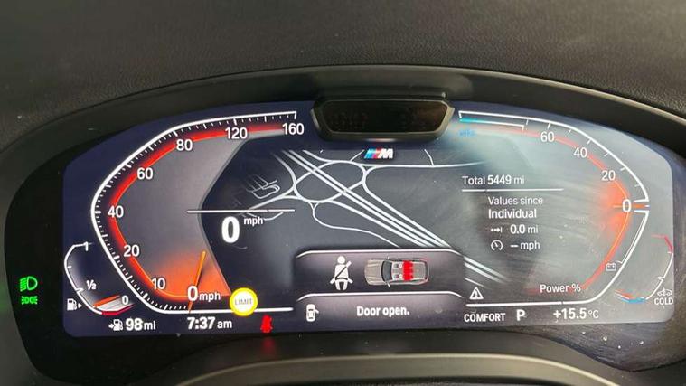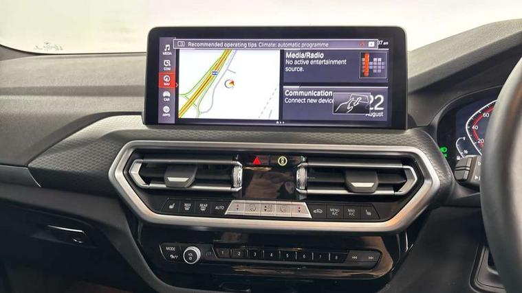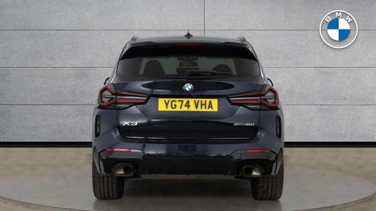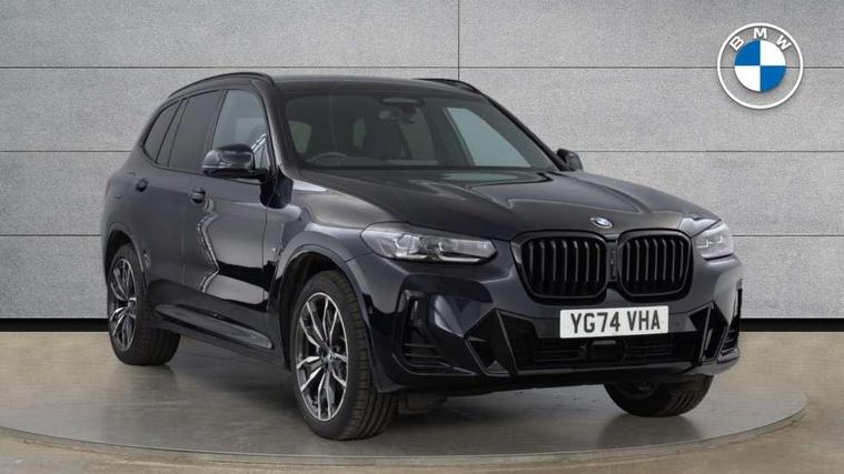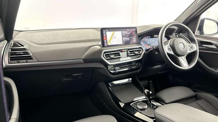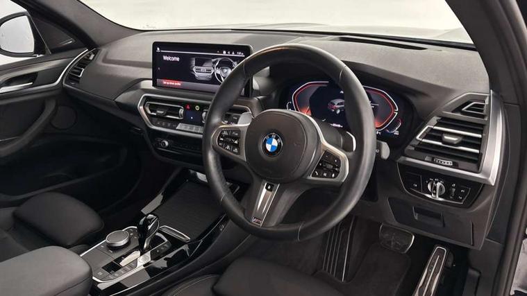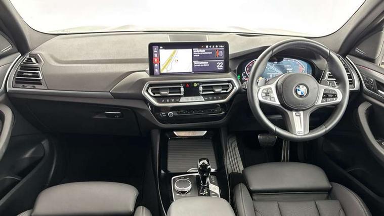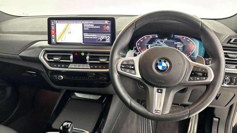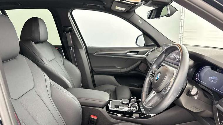 Active Guard, Attentiveness assist, BMW Live Cockpit Professional nav system including 12.3" instrument display + 12.3 high resolution control display, BMW Online services, BMW Teleservices, Brake pad wear indicator in front and rear, Check Control warning system for monitoring of lights and door/luggage compartment open warning, Condition based service - BMW service history, electronic service booklet, integrated owner's handbook, Connected drive services, Electric boot lid, Front/rear Parking distance control, iDrive touch controller with 8 favourite buttons, Instrument cluster with speedometer with mph readout, tachometer, fuel gauge and oil temperature gauge, Lights on warning by audio warning signal when ignition is switched off, Oil sensor for level and grade, warning by check control system, On board computer - average speed+fuel consumption, service interval, clock/date, odometer/trip meter, outside temperature display and ice warning, Optimum shift indicator, Personal Profile - automatic lock when driving away selectable, Run flat indicator, Stop/start system, Variable sports power steering with drive performance control Sport+ mode, Automatic transmission with gearshift paddles, Incorrect fuelling protection, M sport suspension, Multi-link rear suspension, BMW professional radio/CD/MP3, DAB tuner, Acoustic glazing, Automatic windscreen wipers and automatic headlight, Black finish on B pillars, Body colour door handles, Body colour electric adjust heated aspherical door mirrors, Body colour roof mouldings, Body coloured bumpers, Direction indicator, side repeaters, integrated in exterior mirrors, Dynamic brake lights, Exhaust tailpipes - dual, round, split left and right with chrome finisher, Fingertip control / anti-trap function on electric window, Folding wing mirrors with auto dimming, Follow me home headlights, Front and rear bumper system with replaceable deformation elements, Front and rear electric windows, Gloss chrome tailpipes finishers, Green tinted heat insulating glass, Heated windscreen washer jets, High beam assistant, High gloss black shadow line roof rails, High gloss shadowline exterior trim in decorative moulding side frame/recess cover/guide rail/B, C pillars/mirror frame and triangle with mirror base, High level 3rd brake light incorporating LED Technology, Interior rear view electrochromatic mirror with automatic anti dazzle function, LED tail lights, Lightweight engineering, M aerodynamic bodystyling, M Sport entry door sill strips, Model designation, Rain sensor, Rear side wing doors, Rear wing door, Rear wiper, Shark fin antenna, Side exterior M designation badges, Visible VIN plate, Welcome lighting, Windscreen wipers with adjustable interval, 12V power point in luggage area, 12V power socket in front centre console, 2 x USB Type C ports for charging and data transmission (front centre console) and 2 x USB Type C ports for charging (rear centre console), 3 rear headrests, 3 seat bench in 2nd row, 3 zone automatic air conditioning, 4 lashing points to secure luggage, 40:20:40 split folding rear seat with loading system, Ambient lighting, Anthracite headlining, Automatic interior light when door is opened/ignition switched off or via remote key, Floor mats in velour, Foldable storage floor with compartment, Four grab handles integrated in roof lining, Front and rear bottle holders integrated into door trim storage compartments, Front and rear side armrests integrated into door trim, Front centre armrest with storage compartment, Front footwell lights, Front head restraints, Front passenger seat, Front sports seats, Front/rear courtesy lights with soft on/off dimming, Front/rear reading lights, Heated front seats, Isofix rear child seat preparation, Leather gear knob, Lockable glove compartment, Luggage area underfloor compartment, Luggage compartment lighting, M sport leather steering wheel, Multifunction steering wheel, Parcel shelf removeable and storable under boot floor, Reach and rake adjustable steering column, Rear centre armrest with 2 cupholders, Removable / retractable luggage cover, Slope adjustable rear seats, Storage compartment in rear centre console and front/rear door trims, Sun visors with vanity mirrors and ticket pocket, Toolkit located in luggage compartment, Two front cupholders with removable oddments tray/lid, Connected pro pack - X3, ADB - Automatic Differential Brake, Anti-lock braking system (ABS) with brake assist, Automatic Stability Control (ASC), Battery safety cut-off, BMW emergency call, Brake drying, Brake energy regeneration, Braking pre-tensioning, Child locks on rear doors, Cornering brake control (CBC), Crash Sensor - activation of central locking release, hazard warning light and interior lighting, Deactivation of fuel pump in the event of a crash, Driver and front passenger front and side airbags with passenger deactivation and ITS front and rear head airbags, Driver and front passenger knee airbag, DSC+, Dynamic brake control, Dynamic Traction Control - DTC, Electromechanical parking brake, Hill descent control, Hill start assist, Seatbelt security check for front seats, Side impact protection, Three point seatbelts to all seats with front and outer rear pyrotechnic belt tensioners and seat belt force limiters, Two tone horn, Tyre pressure sensor, Ventilated front and rear disc brakes, Warning triangle and first aid kit, Central locking switch for all doors, fuel filler cap and luggage compartment, Electronic engine immobiliser, Locking wheel nuts, Remote control including two integrated key - one button for open/close all lockable content, windows and separate button for open luggage compartment, Remote control Thatcham category 1 alarm, Start/stop button with Comfort Go keyless engine start and auto Start/stop deactivation button, Low rolling resistance tyres,
