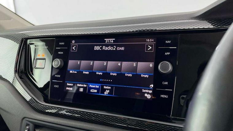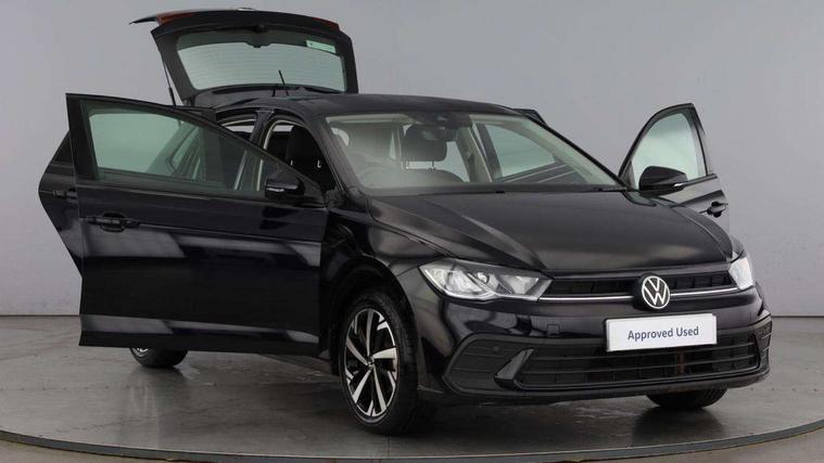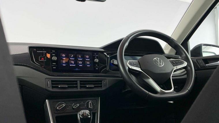 Adaptive cruise control without follow-to-stop and speed limiter, Bluetooth mobile phone interface, Driver alert system, Emergency call service, Front assist system, Power assisted speed sensitive steering, Preparation for We connect and We connect plus, Speedo and rev counter, electronic odometer, trip, service interval display and fuel gauge, Standard rear axle, Travel Assist - Lane keeping system and traffic jam assist, Travel assist including emergency assist, Trip computer, Warning signal and warning light for front and rear seatbelts not fastened, Washer fluid level indicator, Wireless app connect, Front wheel drive, Rear shock absorpion, Start-stop system with battery regeneration (recuperation - energy recovery during braking), DAB Digital radio, Diversity antenna for FM reception, Front and rear 6 speakers, Automatic dimming interior rear view mirror, Body colour bumpers, Body colour door handles, Body colour door mirrors, Electric front windows, Heat insulating darkened glass in side and rear windows, Heat insulating glass windscreen, Power folding adjustable/heated exterior mirrors and front passenger exterior mirror lowering function, Rain sensor, Rear electric windows, Rear fog light, Rear side wing doors, Rear windscreen washer and wiper with interval delay, Third brake light, 12V power socket in centre console, 2 front and 2 rear reading lights, 2 USB-C ports in the front, 2 USB-C charging sockets on the center console in the rear, 3 rear head restraints, 60/40 split folding rear seat and rear seat bench not split, Ceramique headliner, Chrome plated radiator grille inserts, air vent surrounds and light switch surrounds, Door and side trim panel, Driver and front passenger seat height adjustment, Driver/passenger sunvisors with illuminated vanity mirrors, Front centre armrest, Front seat backrest storage pockets, Front standard seats, Handbrake lever handle in leather, Hartley/Thomas cloth upholstery, Isofix child seat preparation easy-fit (for two outer rear seats, and front passenger seat) compatible with I-size, Leather trimmed gear knob, Luggage compartment cover, Luggage compartment floor, Luggage compartment lighting, Multifunction steering wheel, Single front passenger seat, Standard pedal cluster, Light and vision pack - Polo, 3 point height adj front seatbelts + pretensioners, 3x3 point rear seatbelts, ABS, Driver and front passenger airbag with front passenger airbag deactivation, Drivers and front passengers safety optimised head restraints, ESC (Electronic stability control) + EDL (Electronic Differntial lock) and ASR (Traction control), Extended and predictive pedestrian/ cyclist protection, Front curtain and side airbags with center airbag, Front disc brakes, Hill hold control, Manual child lock in rear doors, Rear drum brakes, Single tone horn, Tyre pressure loss indicator, Alarm with interior protection, Anti-theft alarm system with interior monitoring, backup horn, and towing protection, Anti-theft wheel bolts, Electronic engine immobiliser, Lava stone black gloss/matt decorative inserts in dash and front door panels, Low rolling resistance tyres,