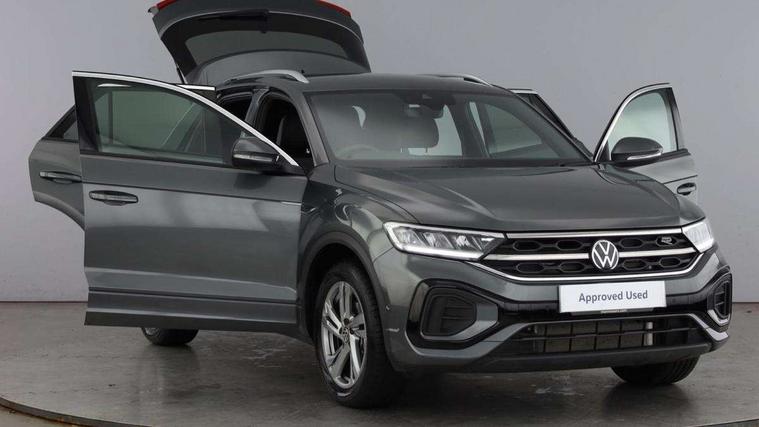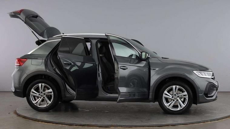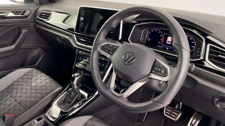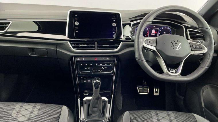 10.25" Digital cockpit pro, Advanced driver attention and drowsiness monitor, Emergency call service, Lane keeping system Lane Assist, Mobile phone interface, Modified key software - reduce switch off time for key status change to Long no motion, Online services, Park assist including front and rear parking sensors, Service interval indicator, Tailgate/trunk lid release from outside, Think blue trainer driver tips and journey analysis, Warning sound and light for front seatbelts unfastened, Wireless app connect, Battery regeneration during braking, Start/stop function with battery regeneration, DAB Digital radio, Diversity antenna for FM reception, Front and rear 6 speakers, Music playback - MP3, WMA and AAC files, Premium USB cable in choice of either Apple or Android smartphone compatibility, SD card slot, Simultaneous pairing of 2 compatible mobile devices, Title and cover art display, We Connect and We Connect Plus functionality, Auto dimming interior rear view mirror, Automatic hazard lights activation under emergency braking, Automatic headlight control with LED separate daytime running lights with coming/leaving home function, Body coloured exterior mirror housings and door handles, Electrically adjustable and heated door mirrors, Extended roof spoiler, Exterior mirrors aspherical on driver side, convex on front passenger side, External USB type C socket and charging sockets, Front windscreen wiper with intermittent wipe and 4 position delay, Heated rear window, LED 3rd brake light, LED rear combination lamps, LED rear number plate lights, Power windows with comfort operation and circuit breaker, Privacy glass for rear side windows and rear window, R-Line design body coloured bumpers, Rain sensor, Rear exhaust tailpipe, Rear fog light on one side and reversing lights on both sides, Rear side wing doors, Rear wash/wipe with intermittent wipe setting, Remote electrically foldable door mirrors, puddle lights and reverse activated passenger's door mirror, 12V power socket in centre console, 3 rear head restraints, 3 seat bench in 2nd row, 4 load lashing points in luggage compartment, Air care climatronic air conditoning system with active combination filter and 2-zone temperature control, Black roof lining, Chrome plated decorative trims, Chrome plated radiator grille inserts, air vent surrounds and light switch surrounds, Door and side trim panel with leatherette insert, Front + rear carpet mats, Front centre armrest, Front cupholders x 2, Front footwell illumination, Front reading light, Front scuff plates with R Line logo, Front seat back storage pockets, Glove compartment door with light, Instrument lighting, white adjustable panel illumination, Interior ambient lighting and surround lighting, Interior light delay, Isofix child seat preparation, Leather gearshift handle, Load-through provision with cup holder when folded down ('Unsplit rear seat bench, split folding backrest, with centre armrest), Luggage compartment lighting, Single front passenger seat, Stainless steel pedals, Storage compartment in left and right luggage area, Storage compartment in rear doors, Storage compartments in driver and front passenger doors, Sunvisors with illuminated vanity mirrors, Variable boot floor, height adjustable and removable, Driver assistance pack without proactive passenger protection - T-Roc, 3 point height adj front seatbelts + pretensioners, 3 point seatbelts in outer rear with ECE label, ABS, Child locks on rear doors, City emergency braking and pedestrian monitoring, Driver and front passenger airbag with front passenger airbag deactivation, Driver and front passenger safety-optimised head restraints, Drivers seatbelt reminder, Electronic parking brake, Electronic Stability Control (ESC) inc EDL (Electronic Differential Lock) and ASR (Traction Control), Front and rear passengers curtain airbag system including front side airbags, Hill start assist, Predictive pedestrian protection, Rear disc brakes, Two tone horn, Tyre pressure loss indicator, Volkswagen roadside assistance, Piano black decorative inserts in dashboard and front door trim panels, Trims for alloy wheels,