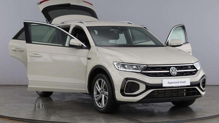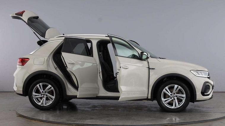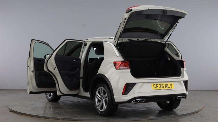 10.25" Digital cockpit pro, Advanced driver attention and drowsiness monitor, Dynamic road sign display, Emergency call service, Lane keeping system Lane Assist, Mobile phone interface, Modified key software - reduce switch off time for key status change to Long no motion, Online services, Park assist including front and rear parking sensors, Service interval indicator, Tailgate/trunk lid release from outside, Think blue trainer driver tips and journey analysis, Warning sound and light for front seatbelts unfastened, Wireless app connect, Battery regeneration during braking, Start/stop function with battery regeneration, DAB Digital radio, Diversity antenna for FM reception, Front and rear 6 speakers, Music playback - MP3, WMA and AAC files, Premium USB cable in choice of either Apple or Android smartphone compatibility, SD card slot, Simultaneous pairing of 2 compatible mobile devices, Title and cover art display, We Connect and We Connect Plus functionality, Auto dimming interior rear view mirror, Automatic hazard lights activation under emergency braking, Automatic headlight control with LED separate daytime running lights with coming/leaving home function, Body coloured exterior mirror housings and door handles, Electrically adjustable and heated door mirrors, Extended roof spoiler, Exterior mirrors aspherical on driver side, convex on front passenger side, External USB type C socket and charging sockets, Front windscreen wiper with intermittent wipe and 4 position delay, Heated rear window, LED 3rd brake light, LED rear combination lamps, LED rear number plate lights, Power windows with comfort operation and circuit breaker, Privacy glass for rear side windows and rear window, R-Line design body coloured bumpers, Rain sensor, Rear exhaust tailpipe, Rear fog light on one side and reversing lights on both sides, Rear side wing doors, Rear wash/wipe with intermittent wipe setting, Remote electrically foldable door mirrors, puddle lights and reverse activated passenger's door mirror, 12V power socket in centre console, 3 rear head restraints, 3 seat bench in 2nd row, 4 load lashing points in luggage compartment, Air care climatronic air conditoning system with active combination filter and 2-zone temperature control, Black roof lining, Chrome plated decorative trims, Chrome plated radiator grille inserts, air vent surrounds and light switch surrounds, Door and side trim panel with leatherette insert, Front + rear carpet mats, Front centre armrest, Front cupholders x 2, Front footwell illumination, Front reading light, Front scuff plates with R Line logo, Front seat back storage pockets, Glove compartment door with light, Instrument lighting, white adjustable panel illumination, Interior ambient lighting and surround lighting, Interior light delay, Isofix child seat preparation, Leather gearshift handle, Load-through provision with cup holder when folded down ('Unsplit rear seat bench, split folding backrest, with centre armrest), Luggage compartment lighting, Single front passenger seat, Stainless steel pedals, Storage compartment in left and right luggage area, Storage compartment in rear doors, Storage compartments in driver and front passenger doors, Sunvisors with illuminated vanity mirrors, Variable boot floor, height adjustable and removable, Driver assistance pack without proactive passenger protection - T-Roc, 3 point height adj front seatbelts + pretensioners, 3 point seatbelts in outer rear with ECE label, ABS, Child locks on rear doors, City emergency braking and pedestrian monitoring, Driver and front passenger airbag with front passenger airbag deactivation, Driver and front passenger safety-optimised head restraints, Drivers seatbelt reminder, Electronic parking brake, Electronic Stability Control (ESC) inc EDL (Electronic Differential Lock) and ASR (Traction Control), Front and rear passengers curtain airbag system including front side airbags, Hill start assist, Predictive pedestrian protection, Rear disc brakes, Two tone horn, Tyre pressure loss indicator, Volkswagen roadside assistance, Piano black decorative inserts in dashboard and front door trim panels, Trims for alloy wheels,