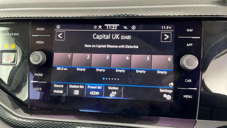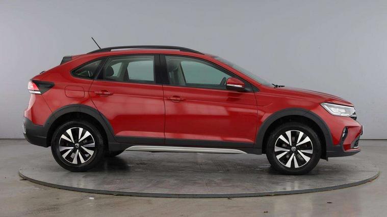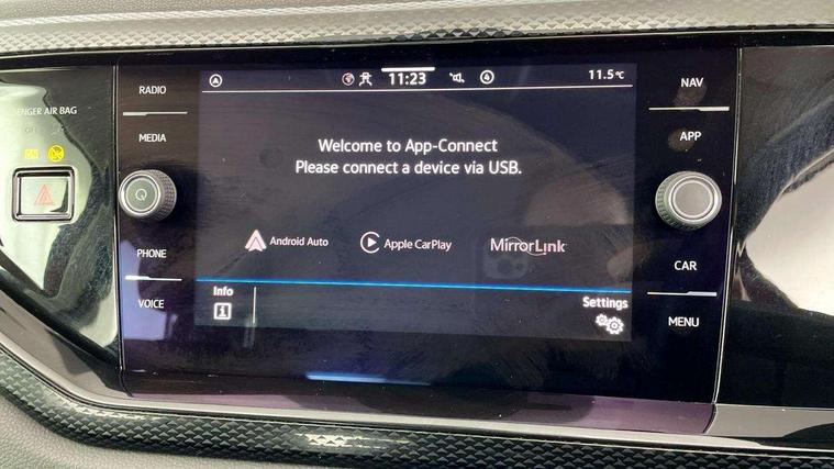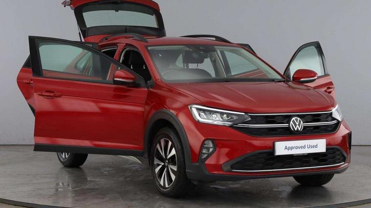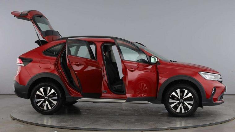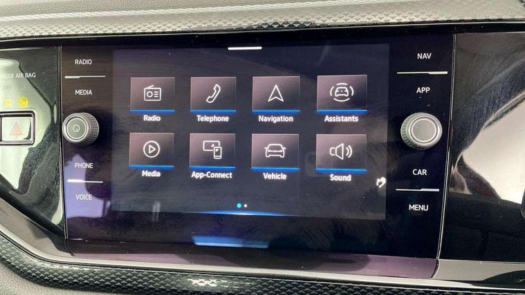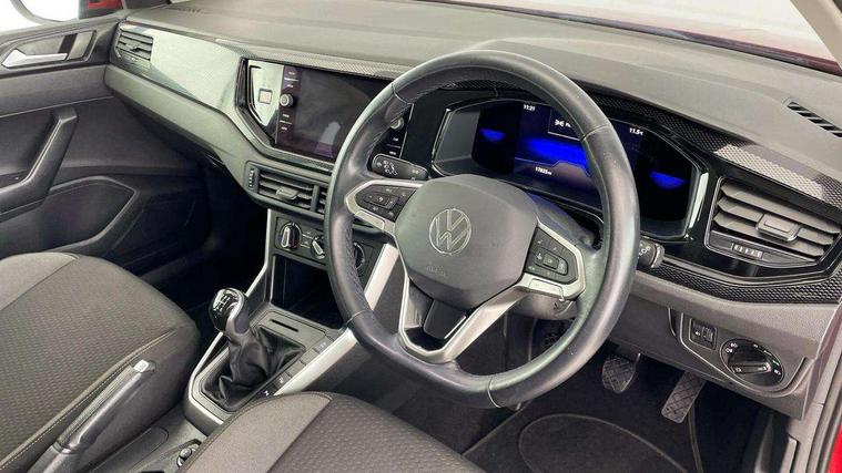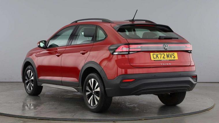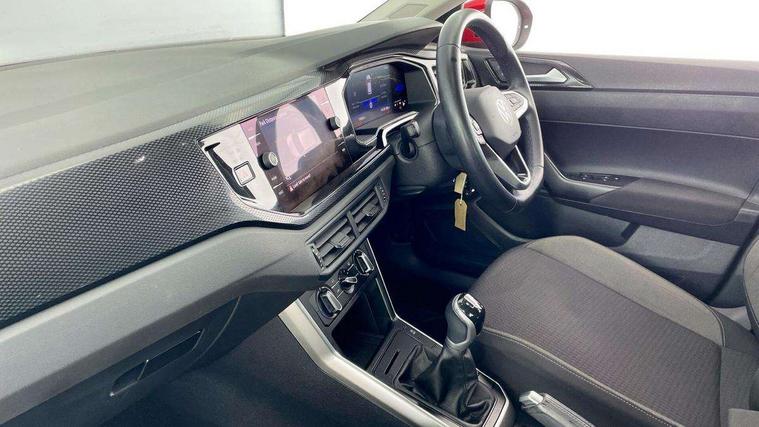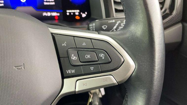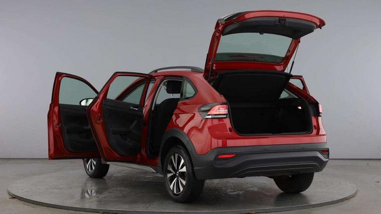 App-Connect including App-Connect Wireless, Driver alert system, e-Call (emergency call), Power Steering, Travel assist including emergency assist, Washer fluid level indicator, Wireless Charging including Bluetooth, Start-stop system with battery regeneration (recuperation - energy recovery during braking), Digital radio reception (DAB+), Diversity antenna for FM reception, WeConnect plus, Ambient lighting with logo projection, Aspherical driver's exterior mirror, Auto headlights, Body coloured bumpers, Body coloured exterior mirror housings and door handles, Electric windows, External USB type C socket and charging sockets, Front fog lamps with cornering function, Headlight range control, Heat insulating glass windscreen, LED headlamps, LED rear combination lamp, LED third brake light, Left convex exterior mirror, Power folding adjustable/heated exterior mirrors and front passenger exterior mirror lowering function, Rear fog light on one side, reversing light on both sides, Rear side wing doors, Rear wash/wipe with intermittent wipe setting, 'Slash/ Austin' Cloth upholstery, 12V socket in centre console, 2 front reading lights, 3 rear head restraints, 3 seat bench in 2nd row, Black carpets, Child seat anchor for child seat system i-Size, 2x top tether and child seat anchor in front on front passenger side, Door and side trim panels in titan black, Driver and front passenger seat height adjustment, Front centre armrest, Handbrake lever handle in leather, Height and reach adjustable steering wheel, Leather trimmed gear knob, Leather wrapped multifunction steering wheel, Luggage compartment floor, Luggage compartment light, Lumbar support for driver's and front passengers seat, Seat covers in titanium black, Single front passenger seat, Split folding backrest with centre armrest and unsplit rear seat bench, Storage compartment under front seats, Sun visors with illuminated vanity mirrors, Chrome Package - Taigo, Drivers assistance pack - Taigo, Light and Sight pack including High beam assist - Taigo, 2 x 3-point seatbelts/outer rear seats with ECE label, 3-point seat belts in front with pretensioner and height adjustment, 3-point seatbelt for centre rear seat, Driver and front passenger airbags with front passenger airbag de-activation, front side and curtain airbags, Driver and front passenger safety-optimised head restraints, Electronic stability control, Extended and predictive pedestrian/ cyclist protection, Front and rear disc brakes, Front curtain and side airbags with center airbag, Hill start assist, Manual rear child locks, Single tone horn, Tyre pressure loss indicator, Anti-theft alarm system with interior monitoring, backup horn, and towing protection, Anti-theft wheel bolts, Lava stone black gloss/matt decorative inserts in dash and front door panels, Low rolling resistance tyres,