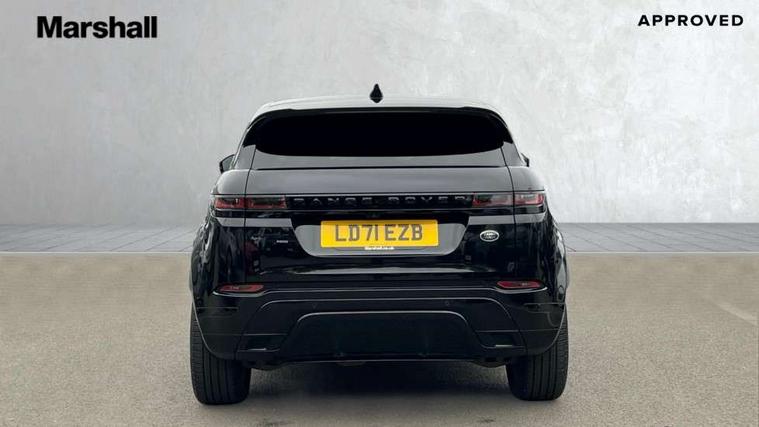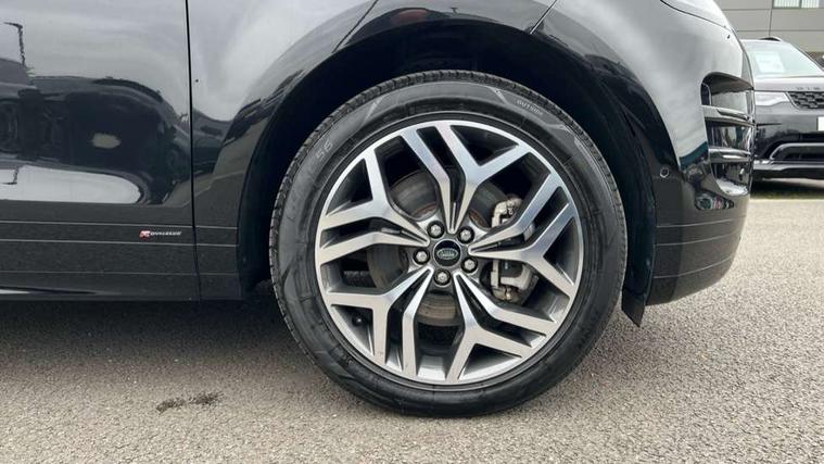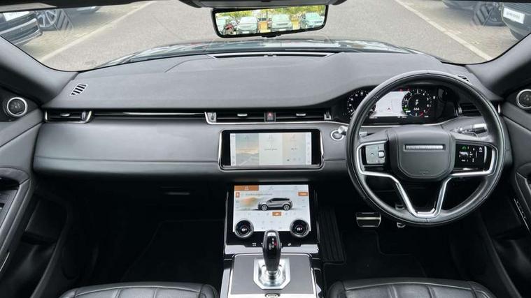 10" deployable touchscreen with lower touchscreen, Adaptive cruise control, Android Auto, Apple car play, Blind spot assist, Bluetooth connectivity, Brake pad wear indicator warning light, Clear exit monitor, Driver condition monitor, Electronic power assisted steering (EPAS), Front and rear parking aid, InControl remote, Interactive Driver display instrument cluster, Land Rover InControl apps, Lane keep assist, Pivi pro connected includes upgraded infotainment, connected navigation pro, Nuance speech licence, Push button starter, Rear collision monitor, Rear traffic monitor, Traffic sign recognition with adaptive speed limiter, Voice control system, 7 kW onboard charger, All terrain progress control, Configurable dynamics, Electric rear axle drive, Large fuel tank, Passive suspension, Public charging cable, Terrain Response 2 Auto, Digital Audio Broadcast radio-DAB, Steering wheel mounted controls, Automatic headlight levelling, Electric windows with one touch open/close and anti trap, Evoque and R-Dynamic badge, Flush deployable exterior door handles, Heated rear window with timer, Heated washer jets, Heated windscreen, Matrix LED headlights with signature DRL, intelligent high beam assist, signature Hi-Line tail lights and animated directional indicators, P300e badge, Power fold, auto-dimming, heated door mirrors with approach lights and auto dimming driver side, Rain sensing windscreen wipers, Rear fog lights, Tailgate spoiler, 40:20:40 split folding rear seats with centre headrest and armrest, Ambient interior lighting, Bright metal pedals, Heated steering wheel, Isofix system on outer rear seats, Overhead lighting console, Overhead stowage for sunglasses, Passive front head restraints, Perforated full leather steering wheel, Rear air vents, Rear centre headrest, Satin chrome gearshift paddles, Sunvisors with illuminated vanity mirrors, Twin sliding front centre armrest, 3 rear 3 point seatbelts, Anti-lock braking system (ABS), Customer configurable autolock, DSC - Dynamic Stability Control, Electronic brake force distribution, Electronic parking brake, Electronic traction control, Emergency braking, Front and rear seatbelt reminder, Hill descent control, Hill launch assist, Low traction launch, Power operated child locks, Roll stability control, Six airbags - Driver and passenger airbags/driver knee airbag/front side airbag and curtain airbags, Torque vectoring brake, Tyre pressure monitoring system, Alarm, Immobiliser, Intrusion sensor, Keyless entry, Locking wheel nuts,