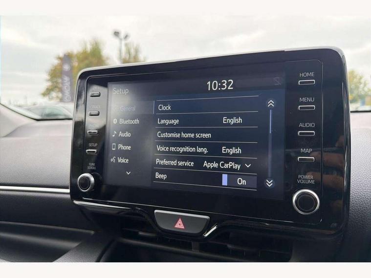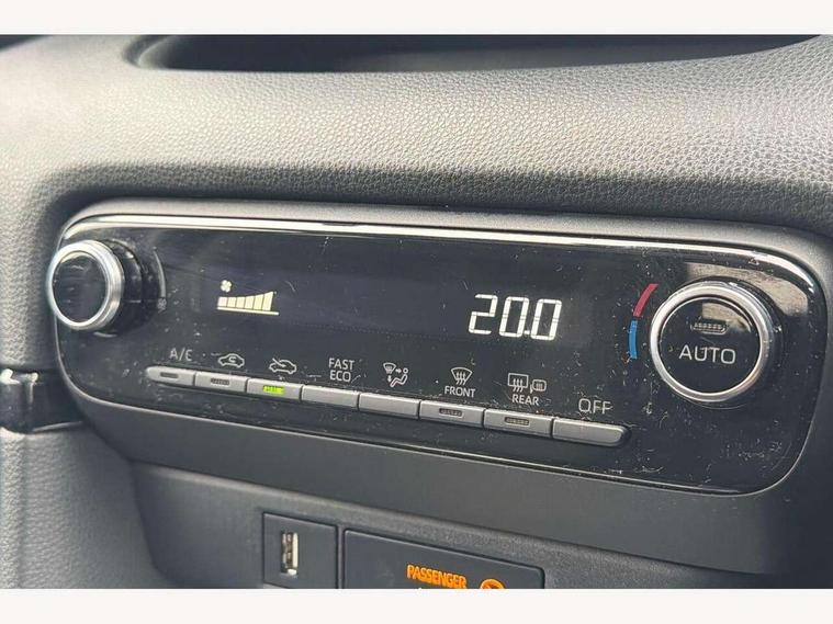 Adaptive cruise control, Adjustable speed limit with speed warning, Bluetooth connectivity, Colour binocular inspired displays with digital speedometer, E-call, Electric power steering, Hybrid energy display, Multi information display switches on steering wheel, Reversing camera, Smartphone integration with Apple CarPlay and Android auto, Tailgate, Voice recognition, Vehicle Stability Control (VSC), 4 speakers, 8" Multimedia display touch screen, USB connection, Acoustic windscreen glass, Auto windscreen wipers, Automatic headlights, Body coloured door mirrors, Electric adjustable heated door mirrors, Follow me home headlights, Front auto power windows with anti jam protection, Full LED rear lights, LED daytime running lights, LED front fog lights, LED front light guide, LED Headlights, LED High mounted stop lamp, LED Indicators, LED rear light guide, Manual headlight levelling, Painted chequered front grille, Rain sensor, Rear auto power windows with anti jam protection, Rear privacy glass, Rear side wing doors, Rear spoiler, Rear wiper, Shark fin antenna, Turning signal integrated indicators in door mirrors, Variable front intermittent wipers, 3 adjustable rear headrests, 3 spoke leather steering wheel, 60/40 split folding rear seat, Active headrests, Adjustable boot height, Auto air conditioning, Coat hooks in rear grab handles, Cup holders (2 front & door), Data Communication Module (DCM) connected services, Fabric upholstery, Front armrest, Glovebox, Grey roof lining, Height adjustable driver's seat, Isofix seat fixing, Leather gearshift, Pollen filter, Shopping bag hooks, Single front passenger seat, Tilt/telescopic steering column, 3 point seatbelts on all rear seats, ABS+EBD+Brake assist, Electronic parking brake, Emergency brake light system (EBS), Front passenger airbag on/off switch, Front seatbelt reminder, Hill start assist control (HAC), Rear child proof door locks, Rear seat belt reminder, Supplemental Restraint System (SRS) 8 airbags: Driver & passenger's airbags, dual side curtain airbags, side impact airbags, front centre airbag, Toyota Safety Sense 2, Precollison + Night time Pedestrian & Cyclist Detection, Lane Trace Assist, Auto High Beam, Intelligent ACC & Road Sign Assist, Tyre pressure warning system, 2x Master key, Alarm/immobiliser, Remote powered central double locking doors, Soft touch instrument panel, Space saver spare wheel,